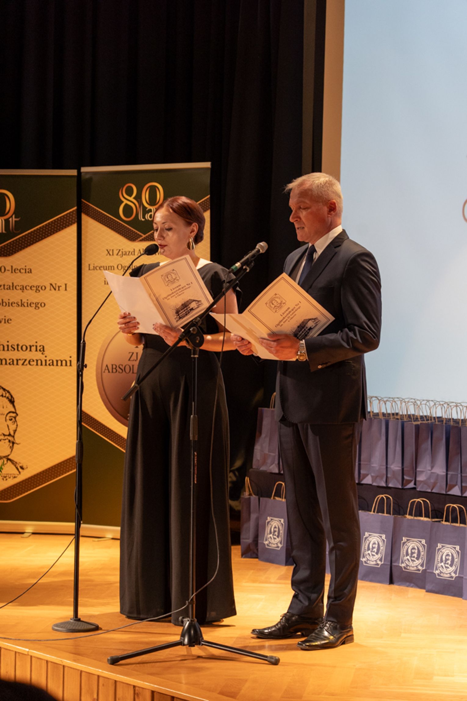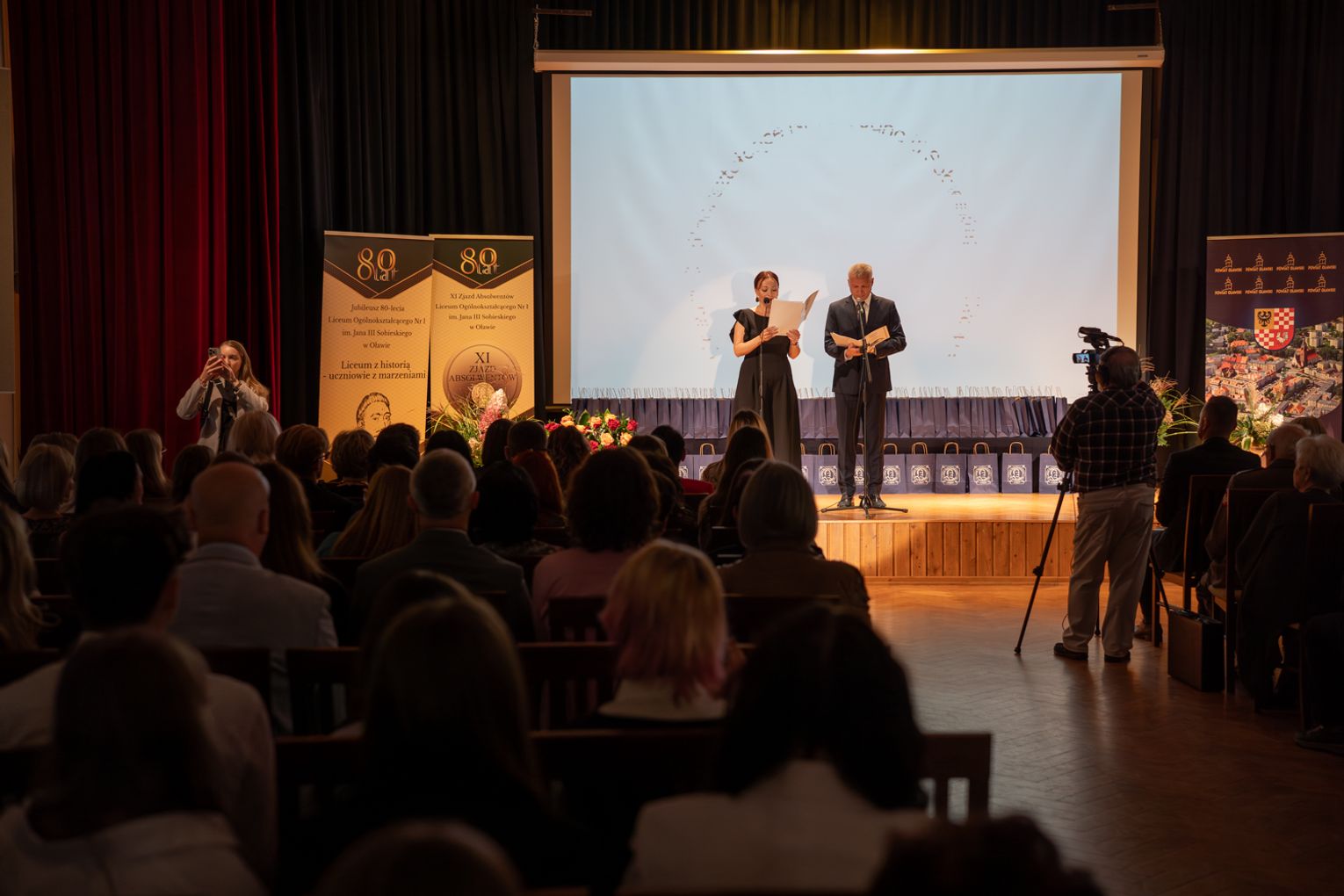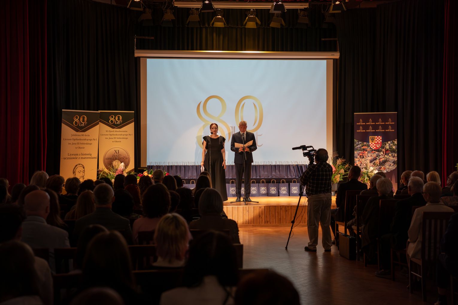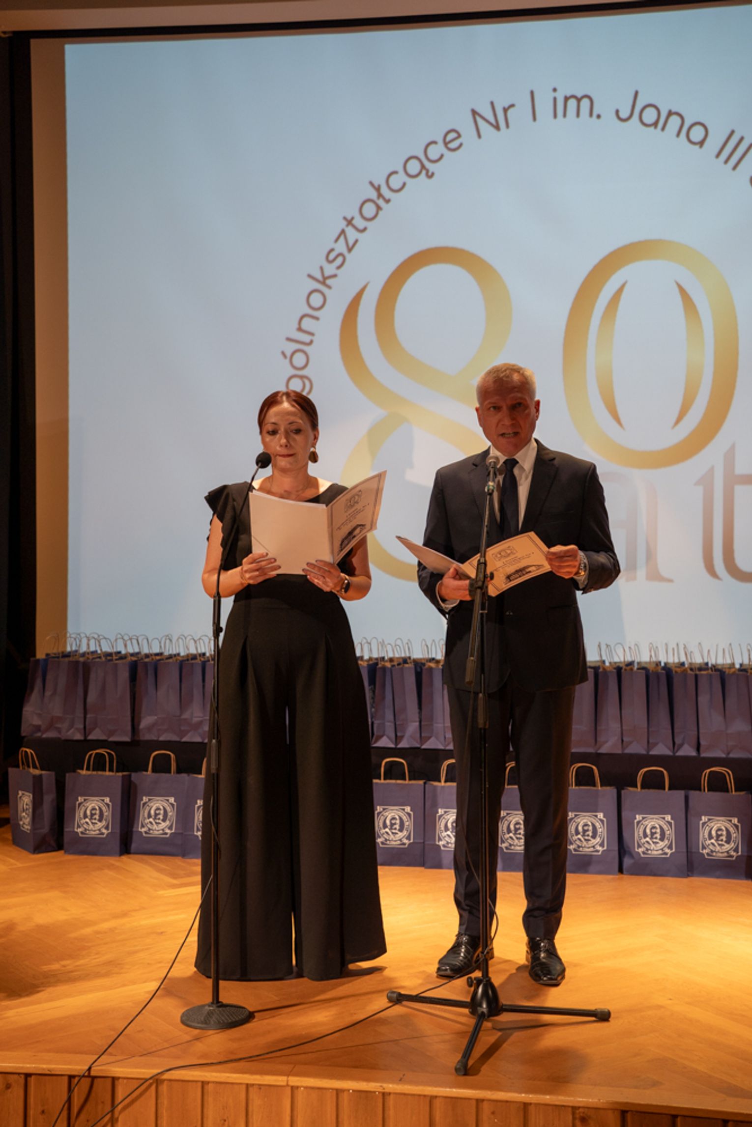 Jubileusz prowadziła dwójka nauczycieli - Aleksandra Skibińska-Brzezicka i Tomasz Gałwiaczek. Przybliżyli oni zebranym bogatą historię szkoły - od jej początków w 1945 roku, przez kolejne etapy rozwoju, aż do czasów współczesnych. Uczniowie przygotowali występy artystyczne, które uświetniły wydarzenie i nadały mu wyjątkowego charakteru.