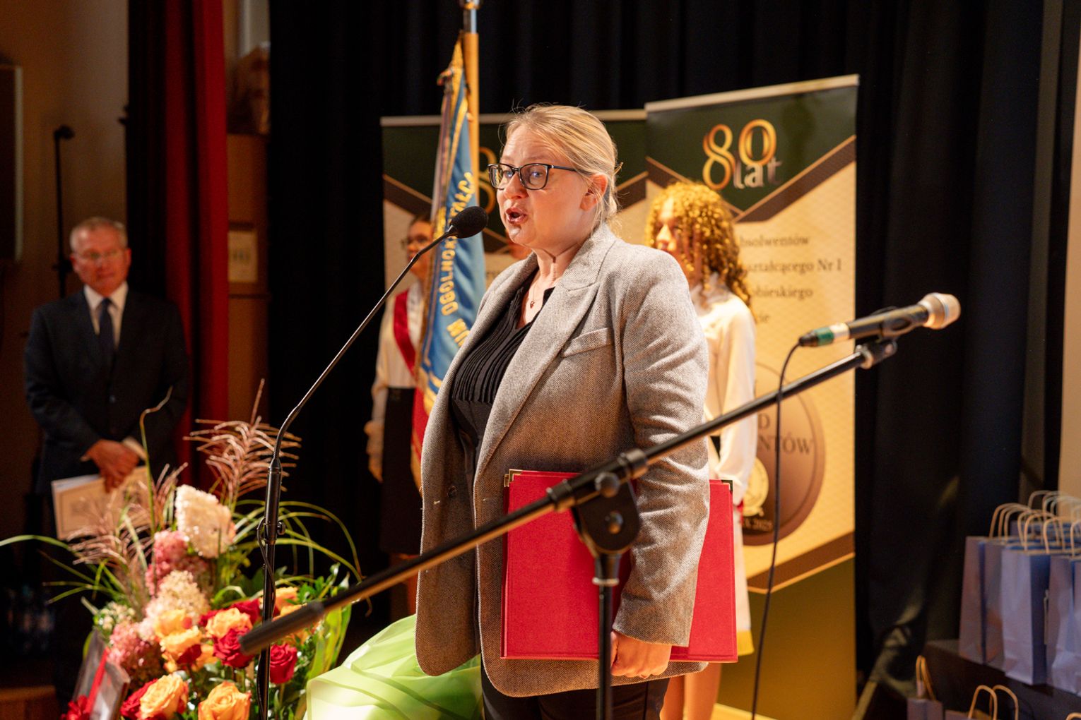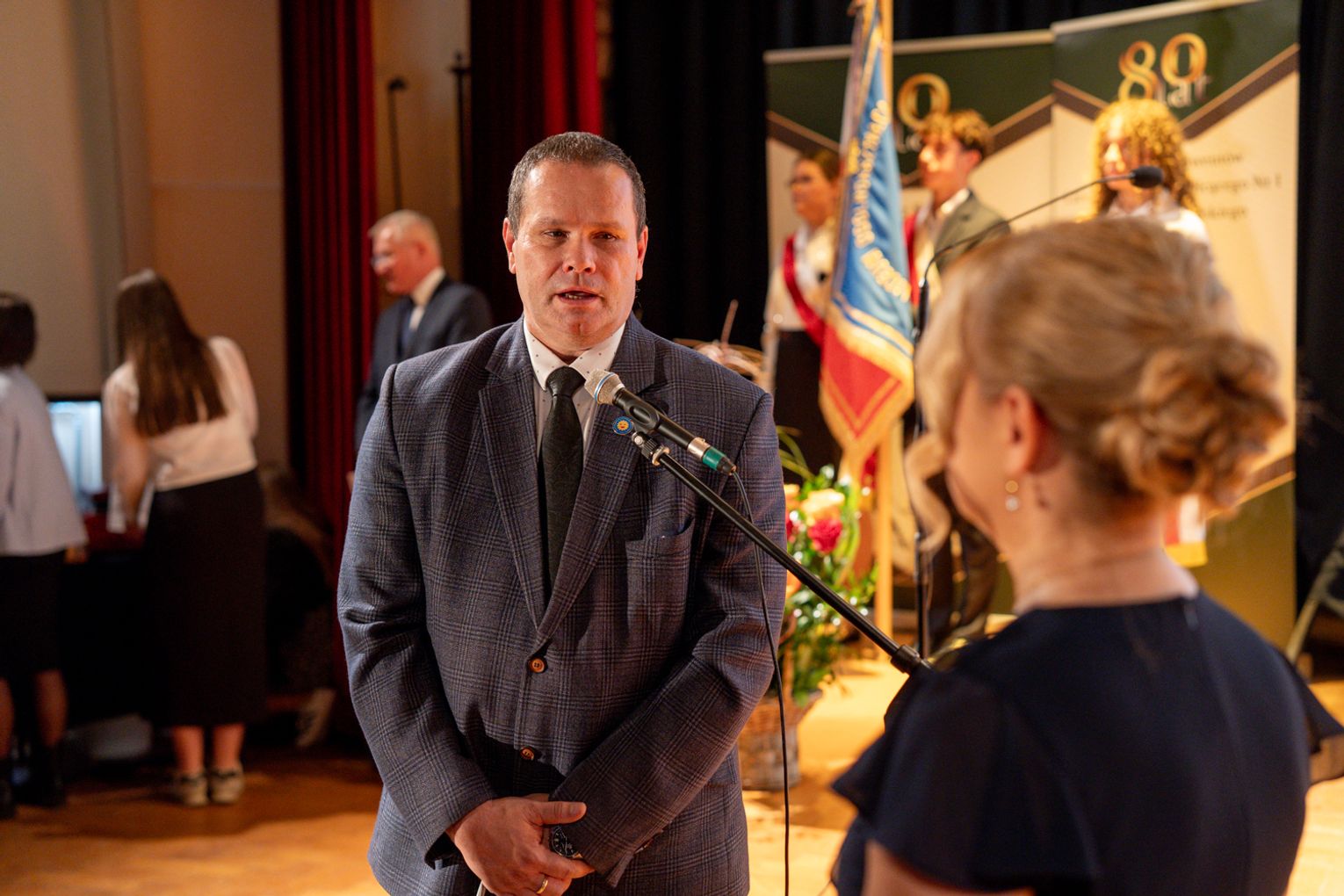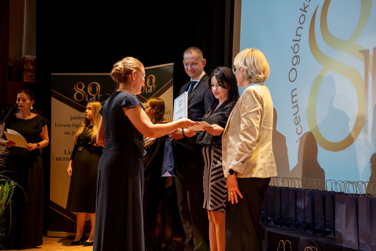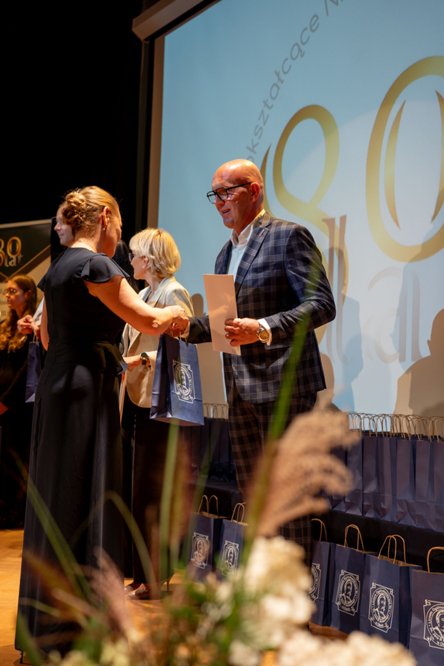 W trakcie uroczystości na ręce dyrektor Jolanty Szewczyk składano gratulacje i życzenia - zarówno od przedstawicieli władz samorządowych, jak i od dyrektorów innych placówek oświatowych. Społeczność szkolna otrzymała także okolicznościowy grawerton z życzeniami dalszych sukcesów.