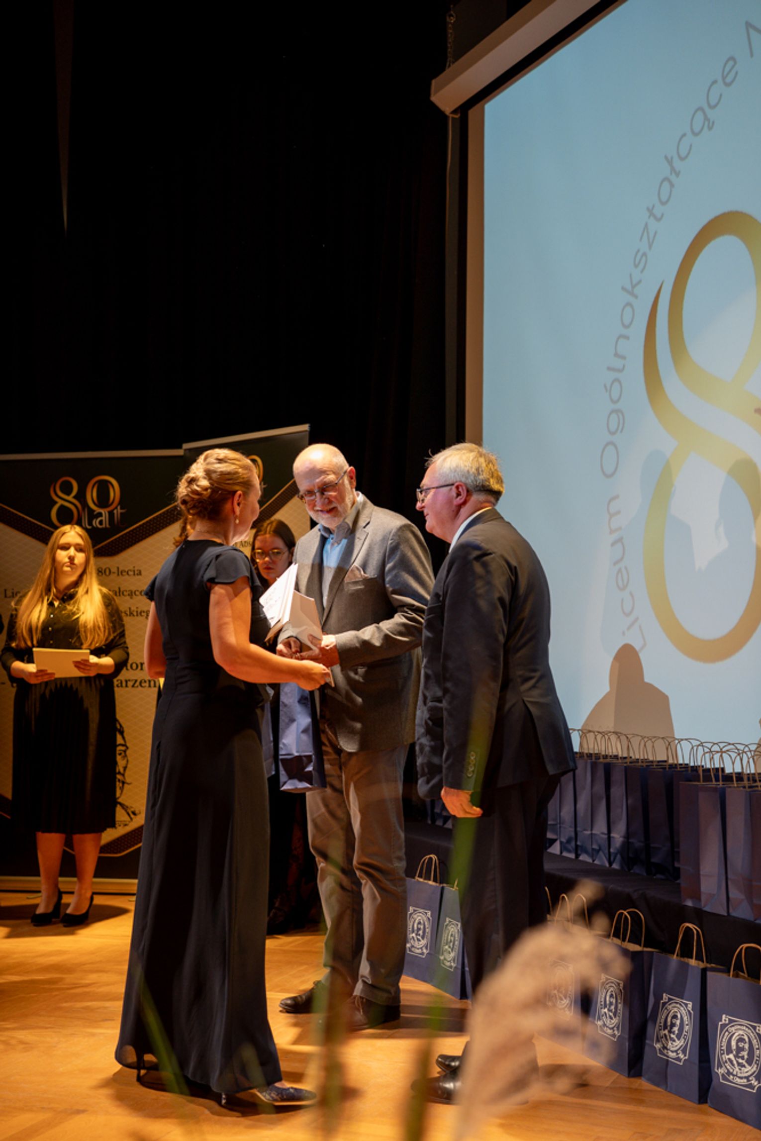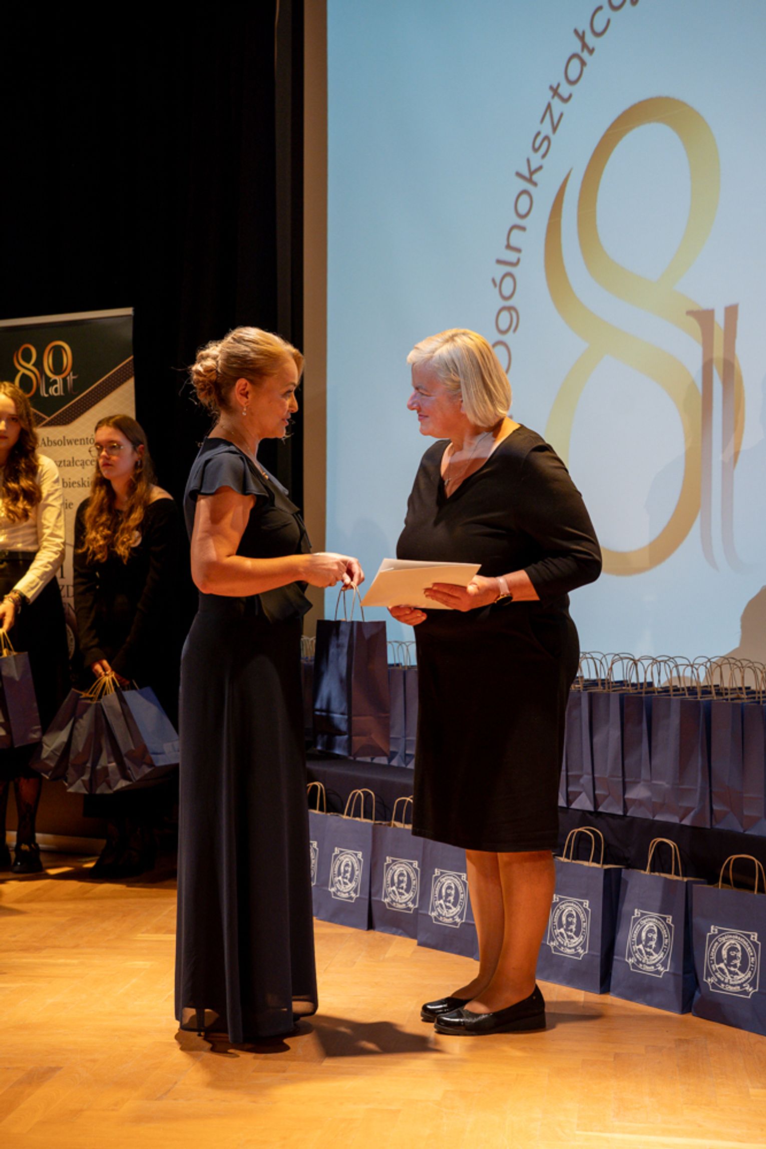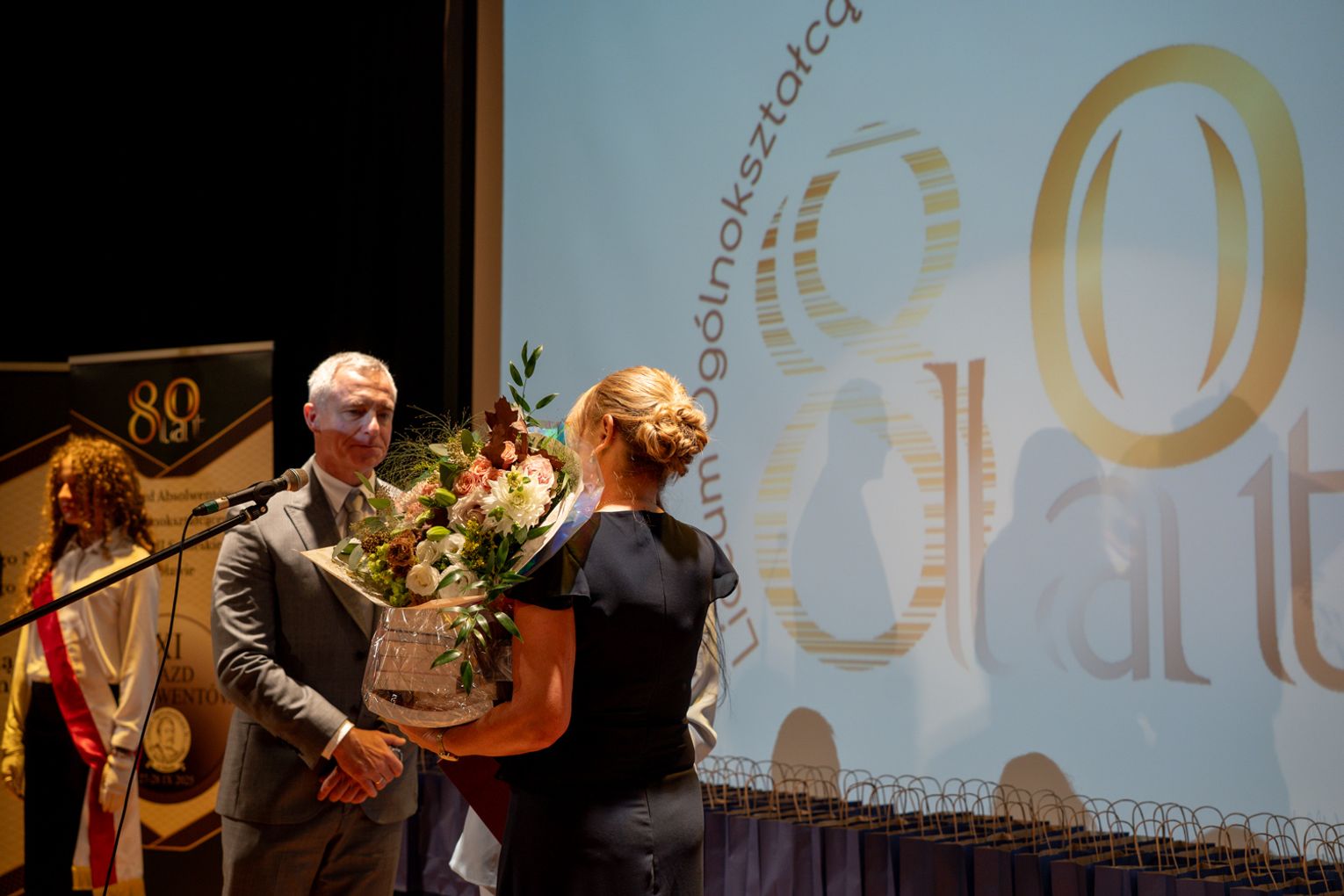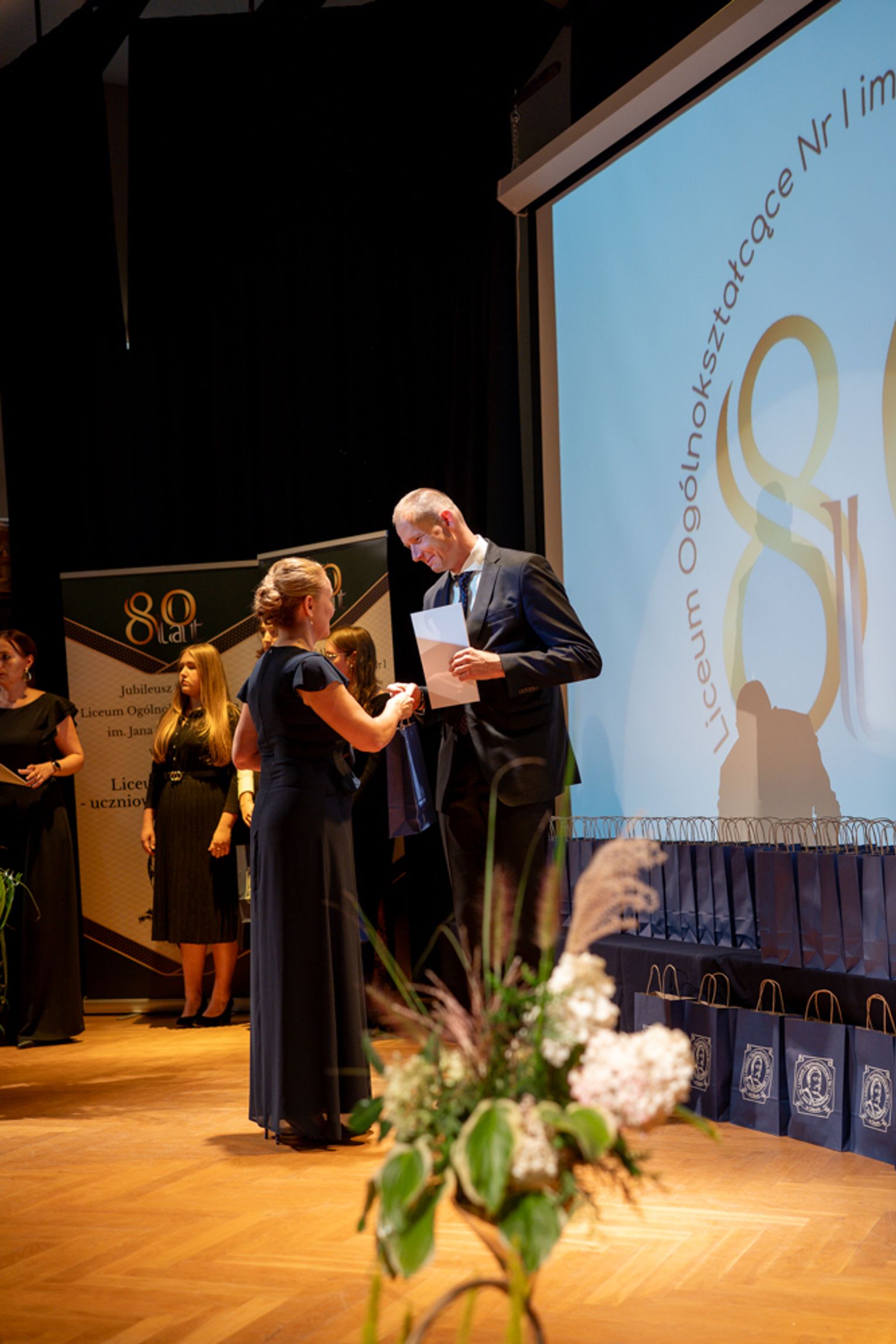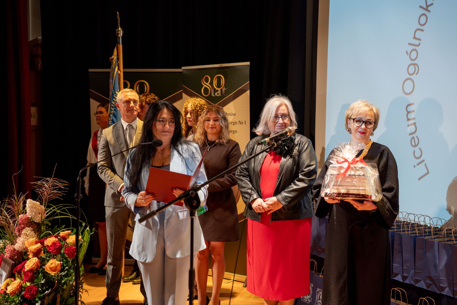 W trakcie uroczystości na ręce dyrektor Jolanty Szewczyk składano gratulacje i życzenia - zarówno od przedstawicieli władz samorządowych, jak i od dyrektorów innych placówek oświatowych. Społeczność szkolna otrzymała także okolicznościowy grawerton z życzeniami dalszych sukcesów.