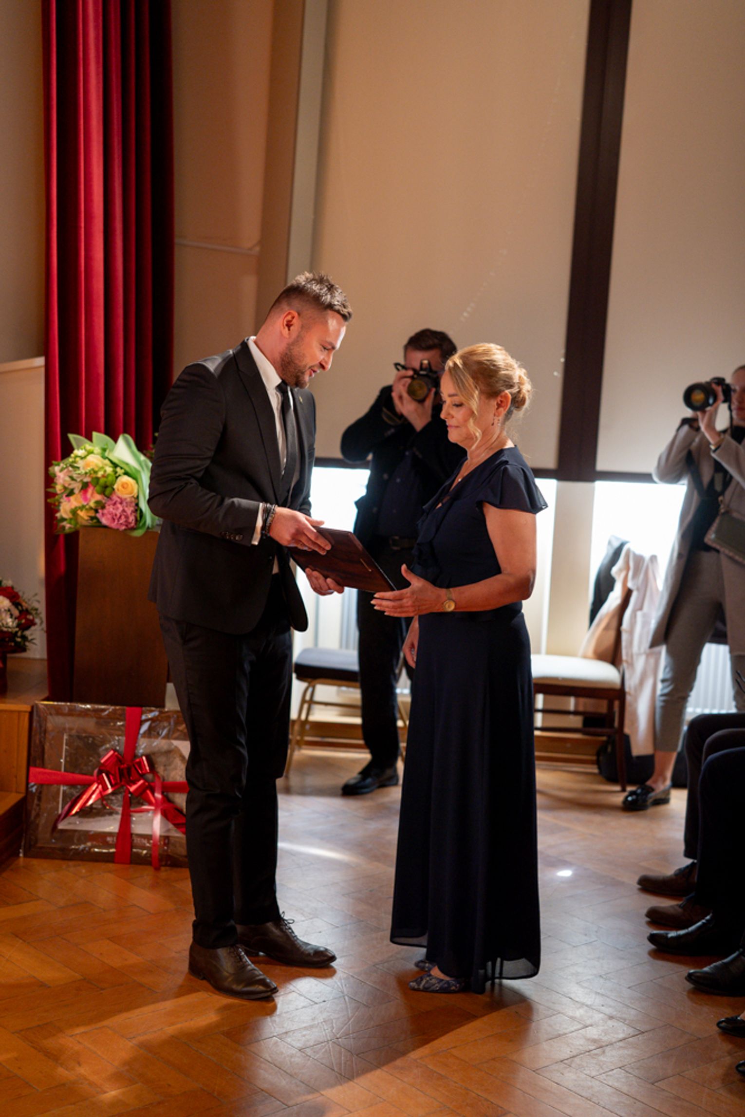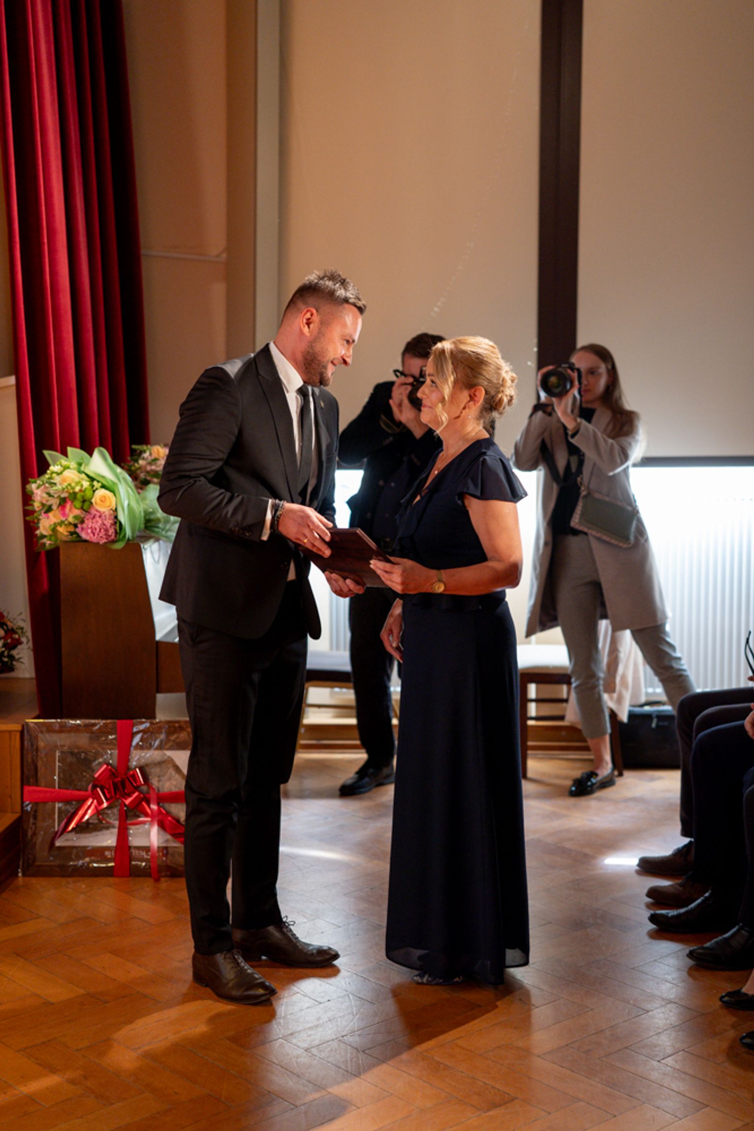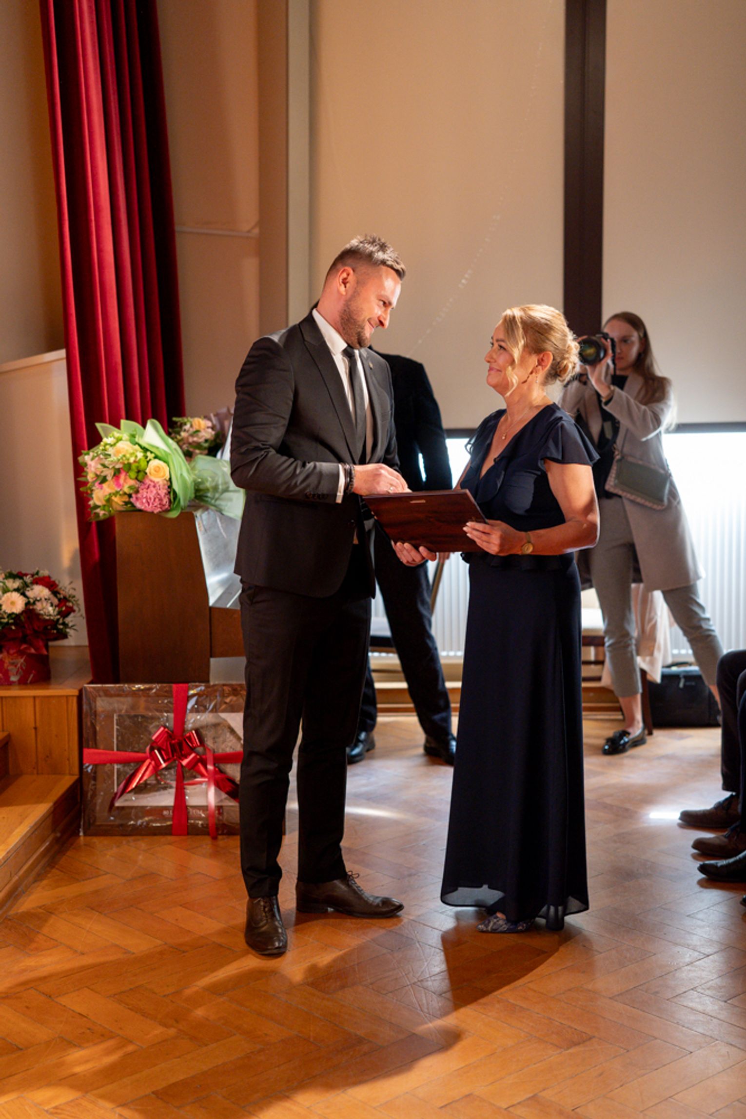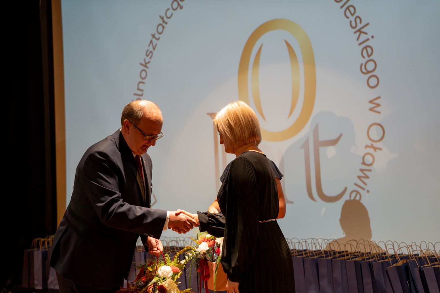 W trakcie uroczystości na ręce dyrektor Jolanty Szewczyk składano gratulacje i życzenia - zarówno od przedstawicieli władz samorządowych, jak i od dyrektorów innych placówek oświatowych. Społeczność szkolna otrzymała także okolicznościowy grawerton z życzeniami dalszych sukcesów.