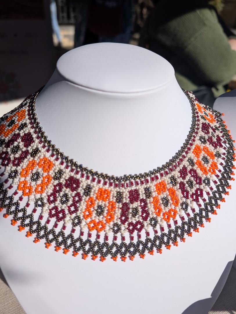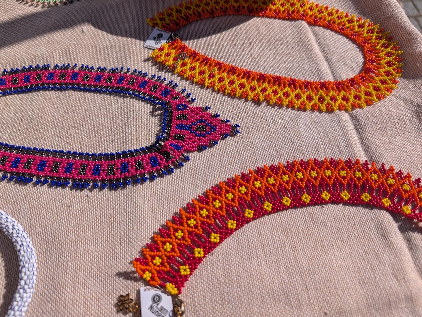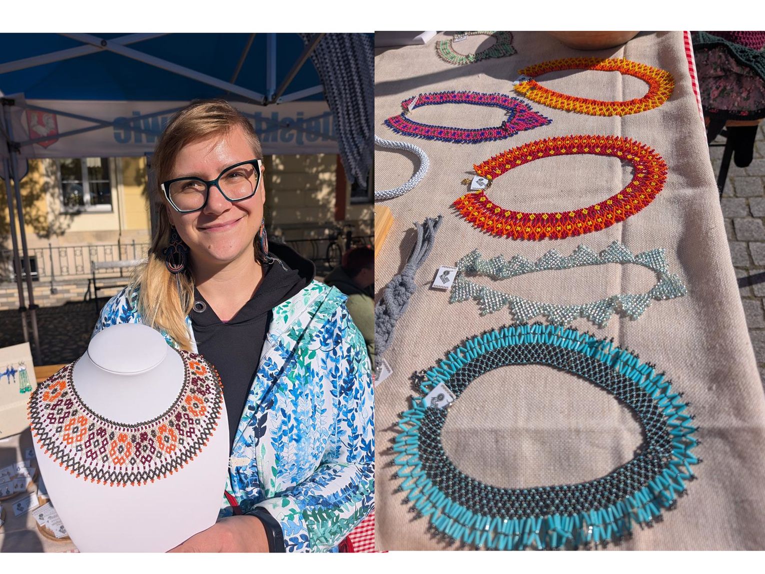 - Łemkowska krywulka to jest naszyjnik z bardzo drobnych koralików - tłumaczy Natalia. - Jest to bardzo stara technika. Łemkinie tradycyjnie tworzyły je już przed wojna, wtedy była fabryka szklanych koralików "Precjoza" w Czechach. Łemkowie, którzy często podróżowali po Europie i sprzedawali swoje towary, wracając kupowali materiały na ubrania i również właśnie te koraliki, z których zimą Łemkinie tworzyły krywulki. Ja również tworzę z tych samych czeskich tradycyjnych koralików.