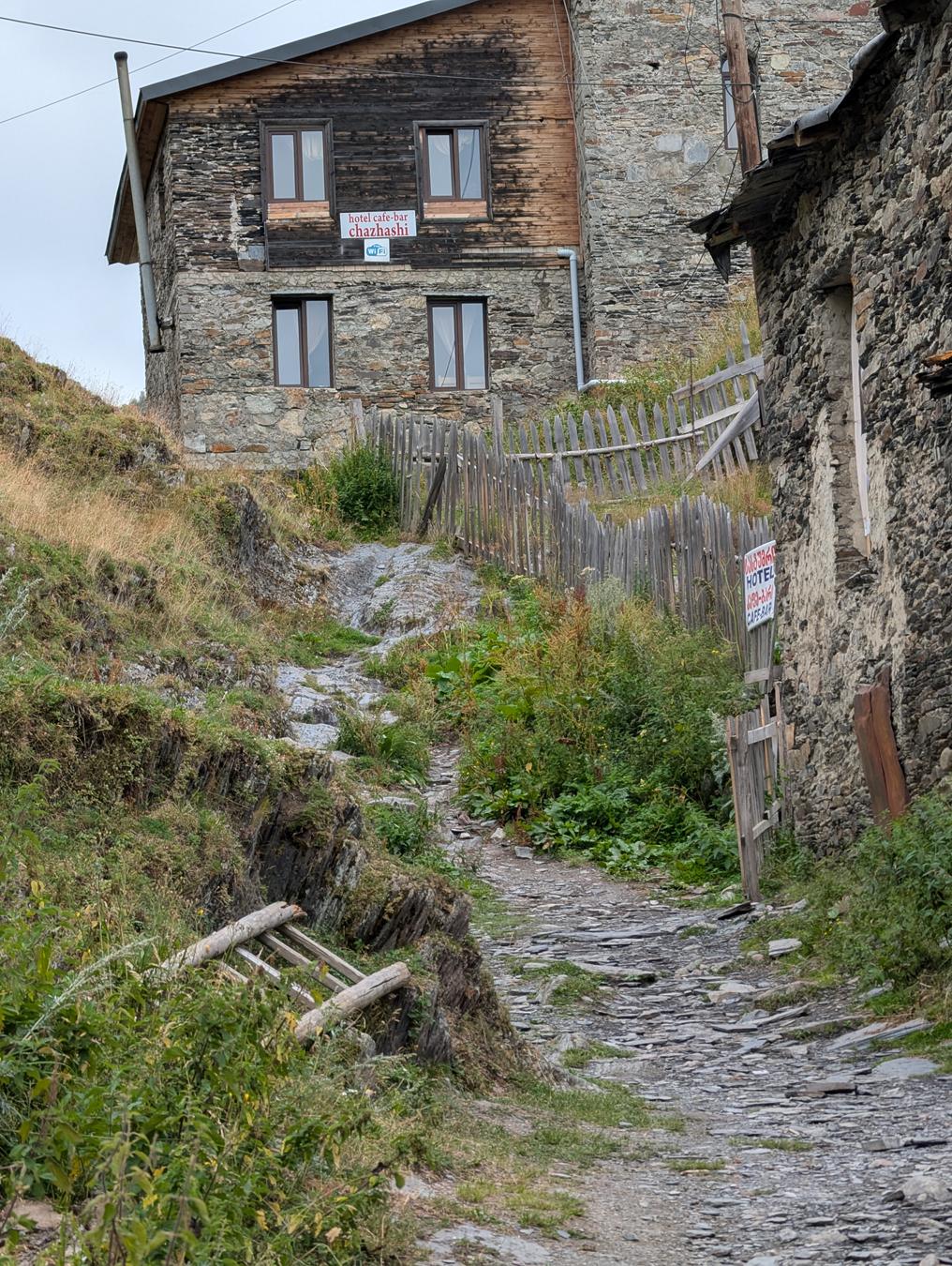 Mimo dziś w miarę łatwego tu dotarcia, rejon jest wciąż w wielu miejscach dziewiczy, turystyka dopiero się rozwija, a możliwość zamieszkania w średniowiecznym domku z kamienną wieżą jest wyjątkowo oryginalną atrakcją. Kiedyś takich wież były w Swanetii tysiące, obecnie zachowało się około 200. Decydując się na zamieszkanie w takim domku (a można je znaleźć nawet przez Booking), nie spodziewaj się wygodnych pokoi czy hotelowych warunków. Może być kłopot z dostępem do toalety czy gniazdka elektrycznego, nie wspominając o przydomowych parkingu. To skromne locum, ale oryginalne - doświadczenie pozostaną na lata. Bywa tak, że mieszkańcy na czas lata udostępniają turystom po prostu swoje pokoje, w których zwinięty w rulon dywan czeka oparty o szafę, w której wciąż są wszystkie ubrania lokalsów. Skorzystajcie też z lokalnej kuchni, którą z pewnością zaoferują wam mieszkańcy - dużo, smacznie i... oryginalnie.