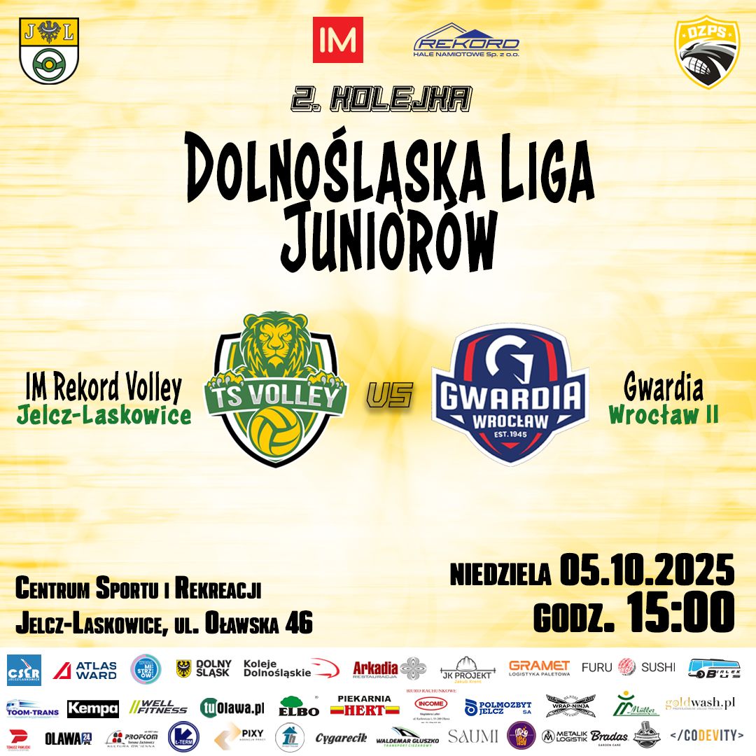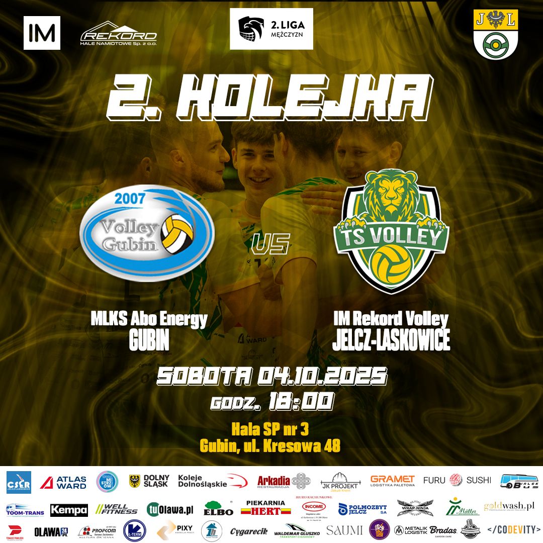 Równolegle w sobotę o ligowe punkty powalczy seniorskie zespoł IM Rekord Volley Jelcz-Laskowice. Po wyjazdowym zwycięstwie w Wałbrzychu nad KPS Chełmiec (3:2), siatkarze staną przed kolejnym wyzwaniem – dalekim wyjazdem do Gubina. W meczu 2. kolejki II ligi zmierzą się z MLKS ABO Energy Gubin, który w pierwszym spotkaniu uległ WKS Wieluń. Początek rywalizacji w hali SP nr 3 w Gubinie w sobotę o godzinie 18.