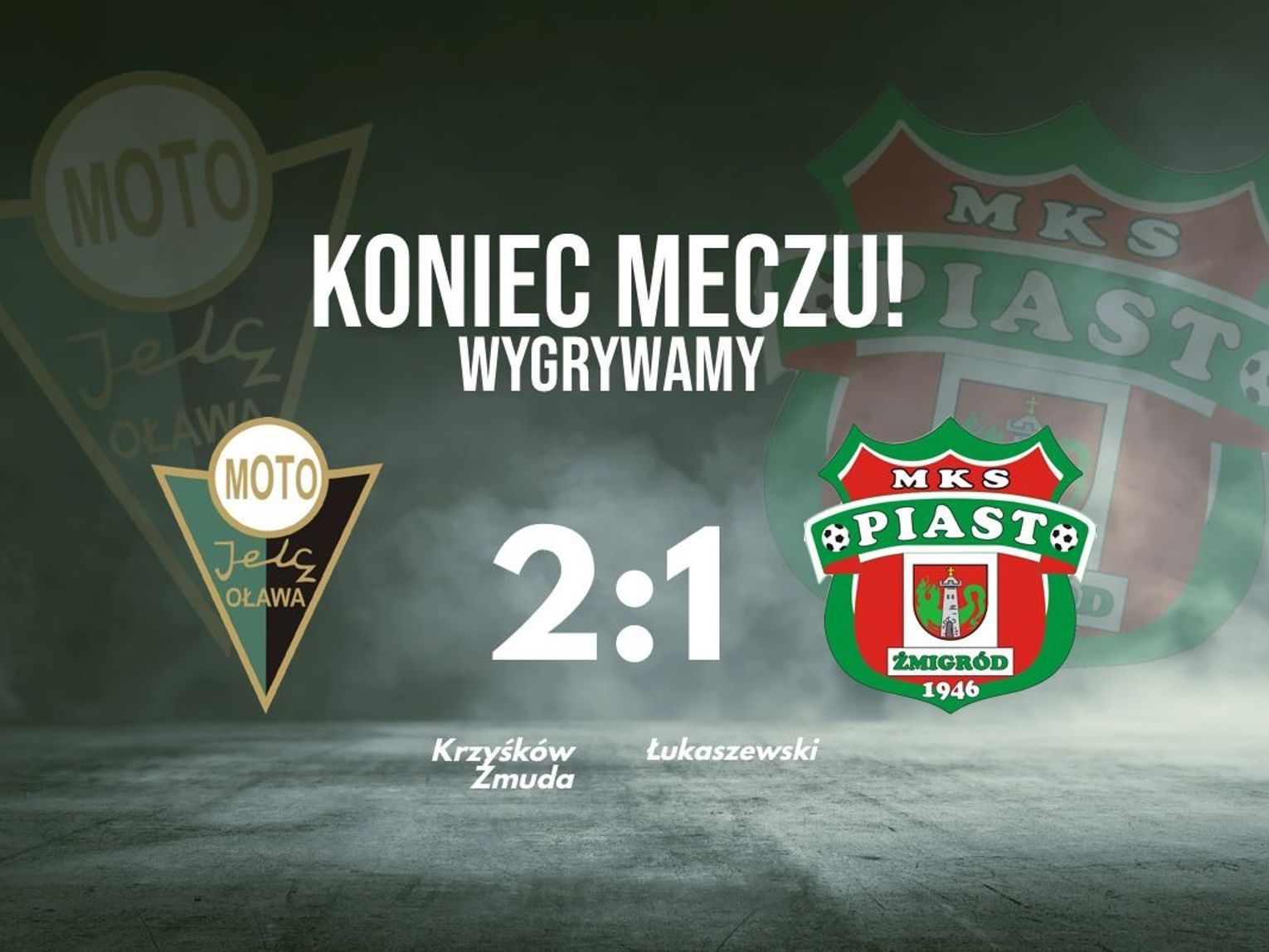Seniorzy "Moto-Jelcza" gościli w Oławie "Piasta" Żmigród, z którym rywalizują w IV lidze. Po zaciętej walce oławianie wygrali 2:1 po bramkach Macieja Żmudy i Radosława Krzyśkowa i awansowali do ćwierćfinału Pucharu Polski w okręgu wrocławskim.