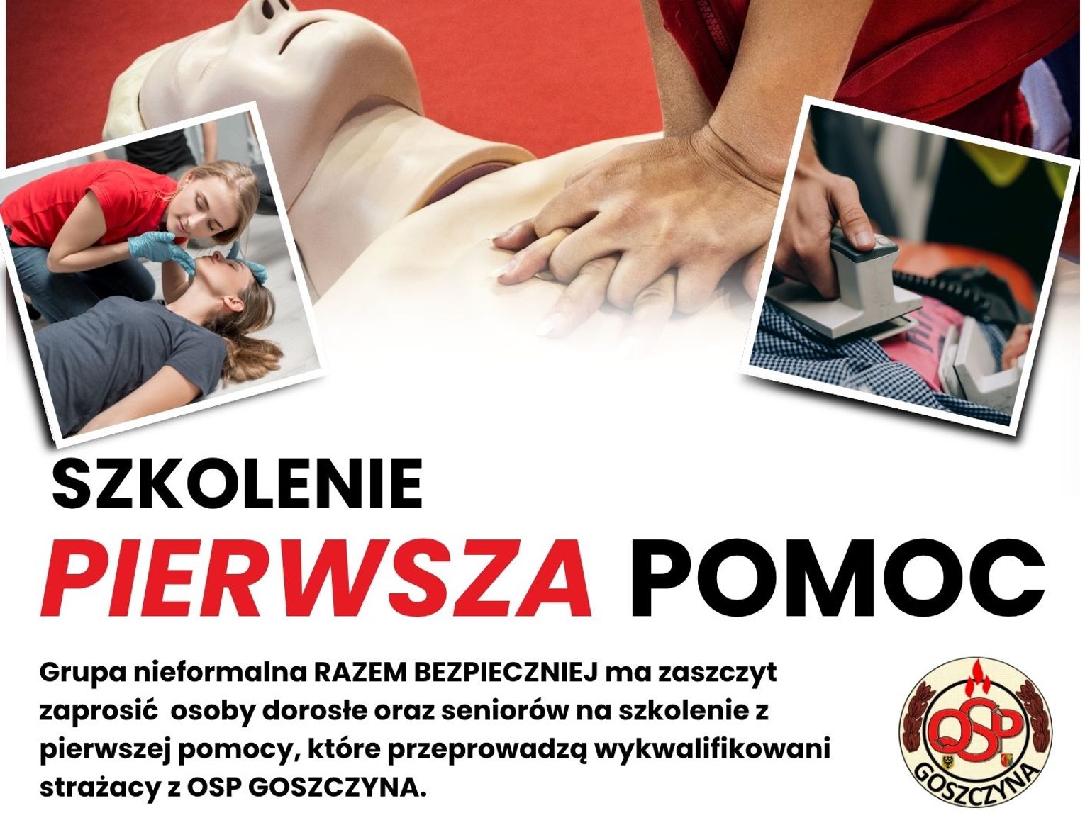 Grupa nieformalna RAZEM BEZPIECZNIEJ serdecznie zaprasza osoby dorosłe i seniorów na szkolenie z pierwszej pomocy, które przeprowadzą wykwalifikowani strażacy z OSP Goszczyna.