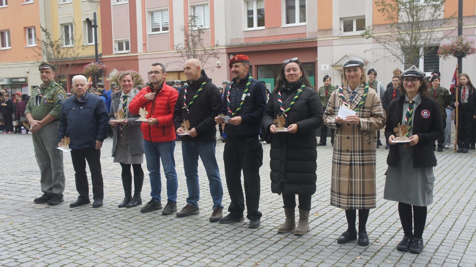 W uroczystości uczestniczyli komendant Chorągwi Dolnośląskiej ZHP hm. Arkadiusz Rudolf oraz zastępca komendanta Chorągwi Dolnośląskiej ZHP ds. programu i promocji hm. Krzysztof Stachów. Podczas apelu wręczono odznaczenia honorowe dla instruktorów naszego hufca oraz osób zasłużonych dla harcerstwa w Oławie: