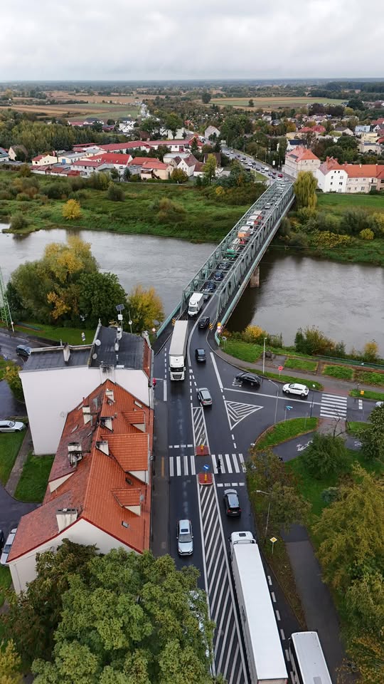 Dziś doświadczyli tego wszyscy, którzy próbowali przejechać przez Oławę w godzinach 11.00-16.00. Tir w rowie przy ul. Oleśnickiej i długie stawianie go na koła spowodowało paraliż niemal całego miasta, bo coraz dłuższe korki sprawiły, że niemal każdy kierowca odczuł problemy z poruszaniem się po Oławie. Jak na razie ani obwodnicy, ani drugiego mostu nie mamy. Jedyna przeprawa przez Odrę powoduje, że to tu staje się wąskie gardło w trudnych sytuacjach. Jak ty wyglądało z góry, pokazał nam Kuba Raczyński, który zdążył wykonać parę fotek z lotu ptaka. Świetnie widać, jak od głównych dróg zapychają się wszystkie tętnice komunikacyjne Oławy.