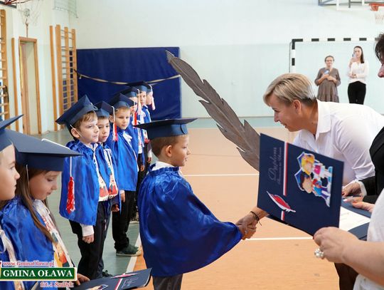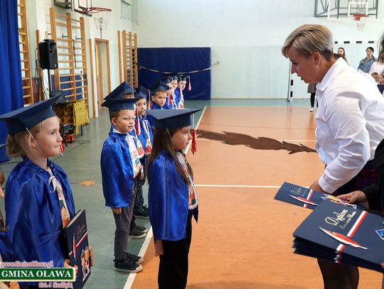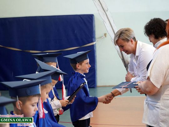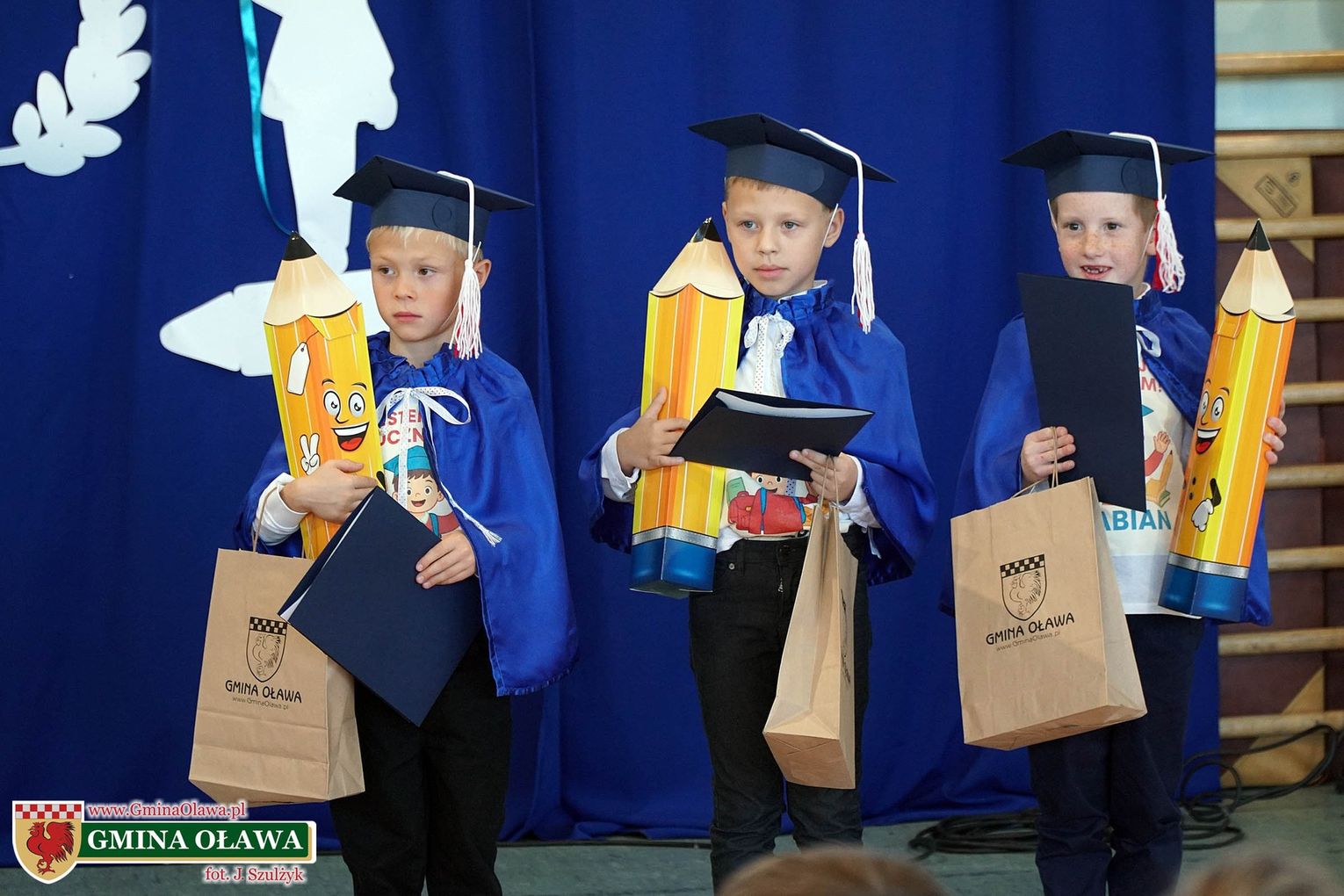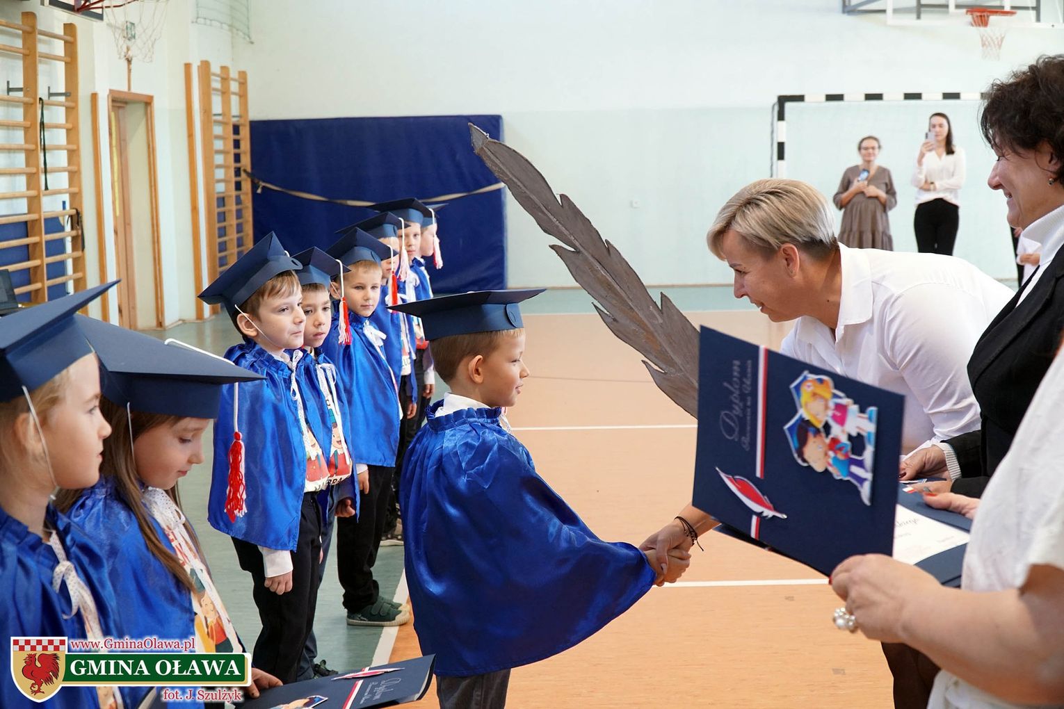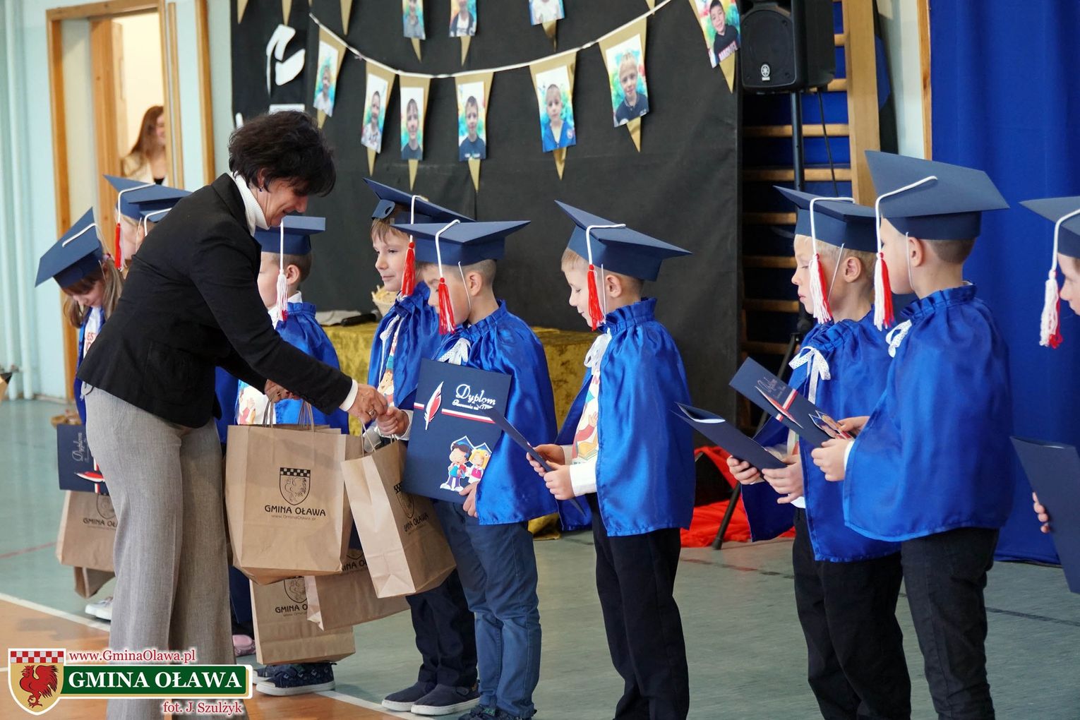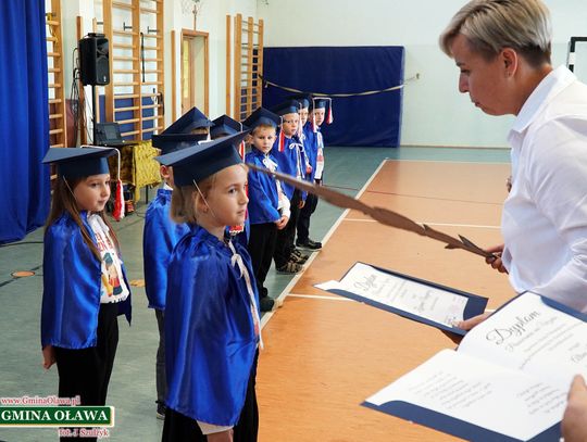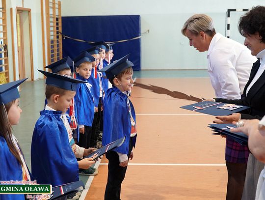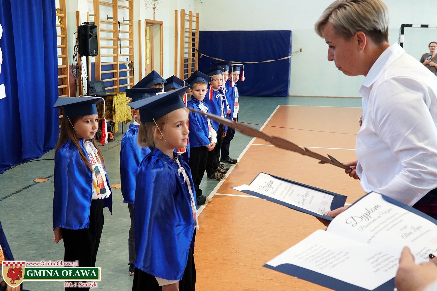 Mimo stresu związanego z pierwszym publicznym występem, uczniowie doskonale sobie poradzili i zaprezentowali swoje talenty wokalne, recytatorskie, muzyczne. Następnie złożyli ślubowanie, a dyrektor szkoły Justyna Kościelna oraz zastępca wójta Helena Masło dokonały uroczystego pasowania na ucznia oraz wręczyły dyplomy i upominki. Na koniec wprowadzono piękny tort, upieczony specjalne na tą okazję i zrobiono pamiątkowe zdjęcia.
