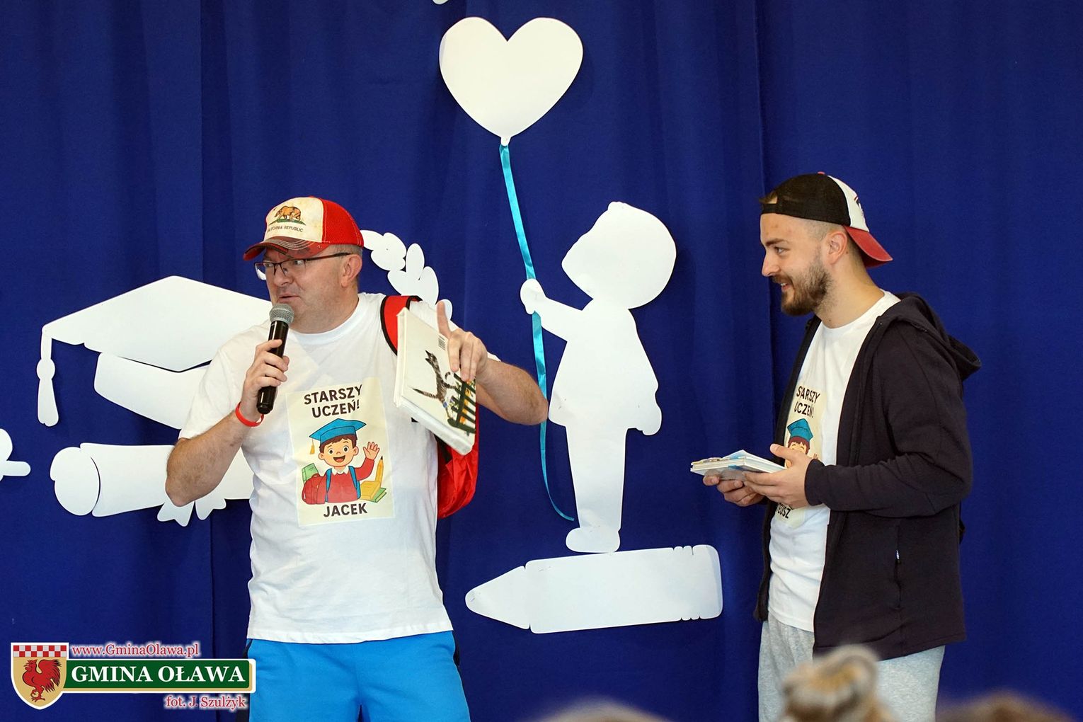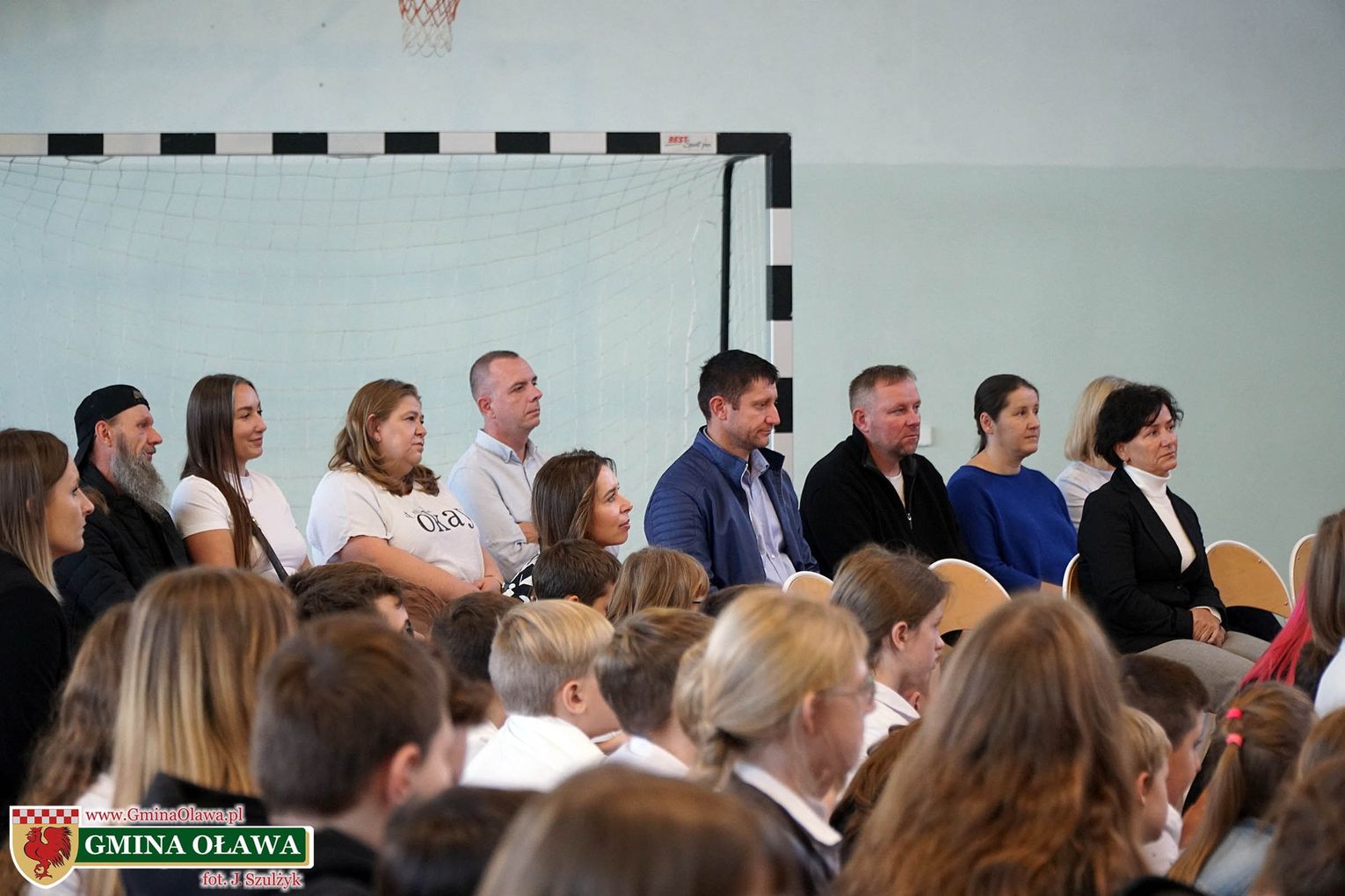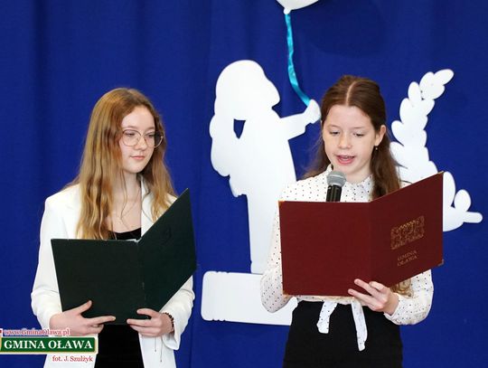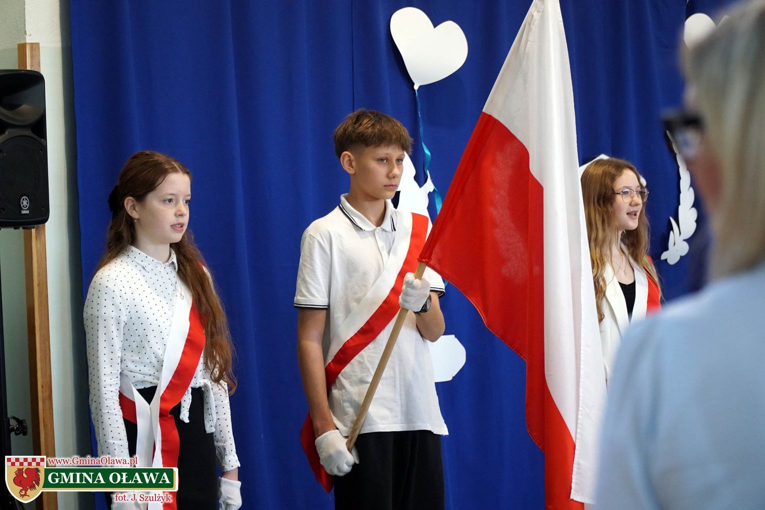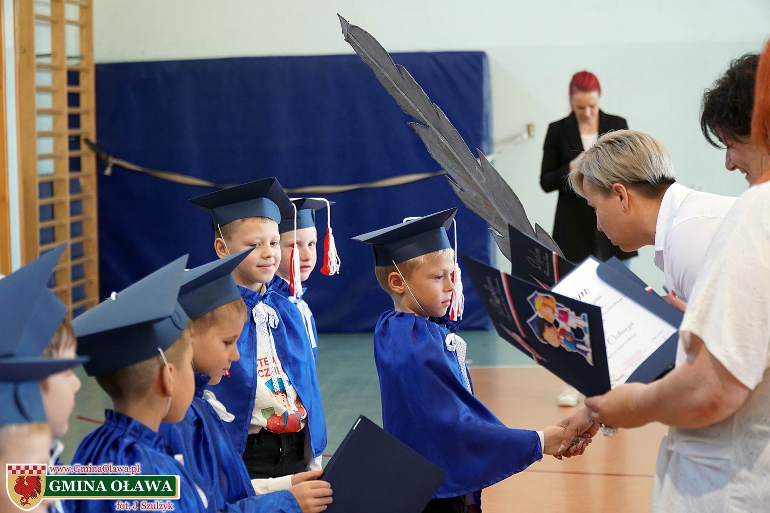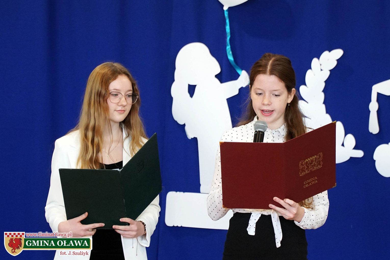 Mimo stresu związanego z pierwszym publicznym występem, uczniowie doskonale sobie poradzili i zaprezentowali swoje talenty wokalne, recytatorskie, muzyczne. Następnie złożyli ślubowanie, a dyrektor szkoły Justyna Kościelna oraz zastępca wójta Helena Masło dokonały uroczystego pasowania na ucznia oraz wręczyły dyplomy i upominki. Na koniec wprowadzono piękny tort, upieczony specjalne na tą okazję i zrobiono pamiątkowe zdjęcia.