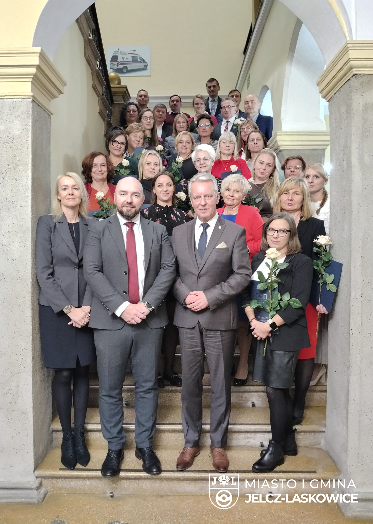 Z okazji obchodzonego dziś Dnia Edukacji Narodowej Piotr Stajszczyk - Burmistrz Miasta i Gminy Jelcz-Laskowice oraz zastępca burmistrza Mariusz Hass spotkali się ze społecznością pedagogów z miasta i gminy Jelcz-Laskowice. Była to okazja do złożenia najlepszych życzeń, zapewnienia o uznaniu dla pracy nauczycieli i troski samorządu o właściwe warunki dla rozwoju oświaty Zgromadzeni przyjęli z rąk Piotra Stajszczyk i Mariusza Hassa nagrody oświatowe i kwiaty.