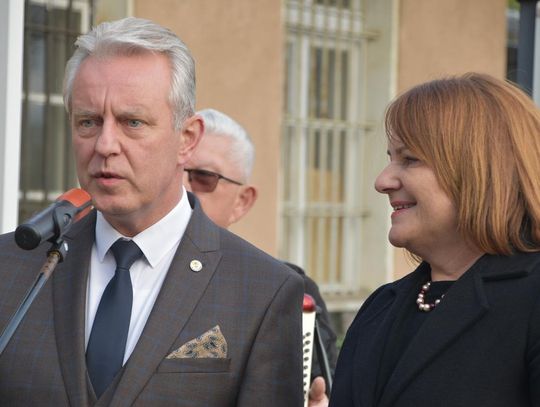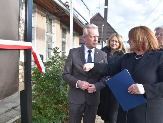 Tablicę odsłaniali burmistrz Jelcza-Laskowic Piotr Stajszczyk oraz dyrektor MGCK Dorota Miś-Hanys.