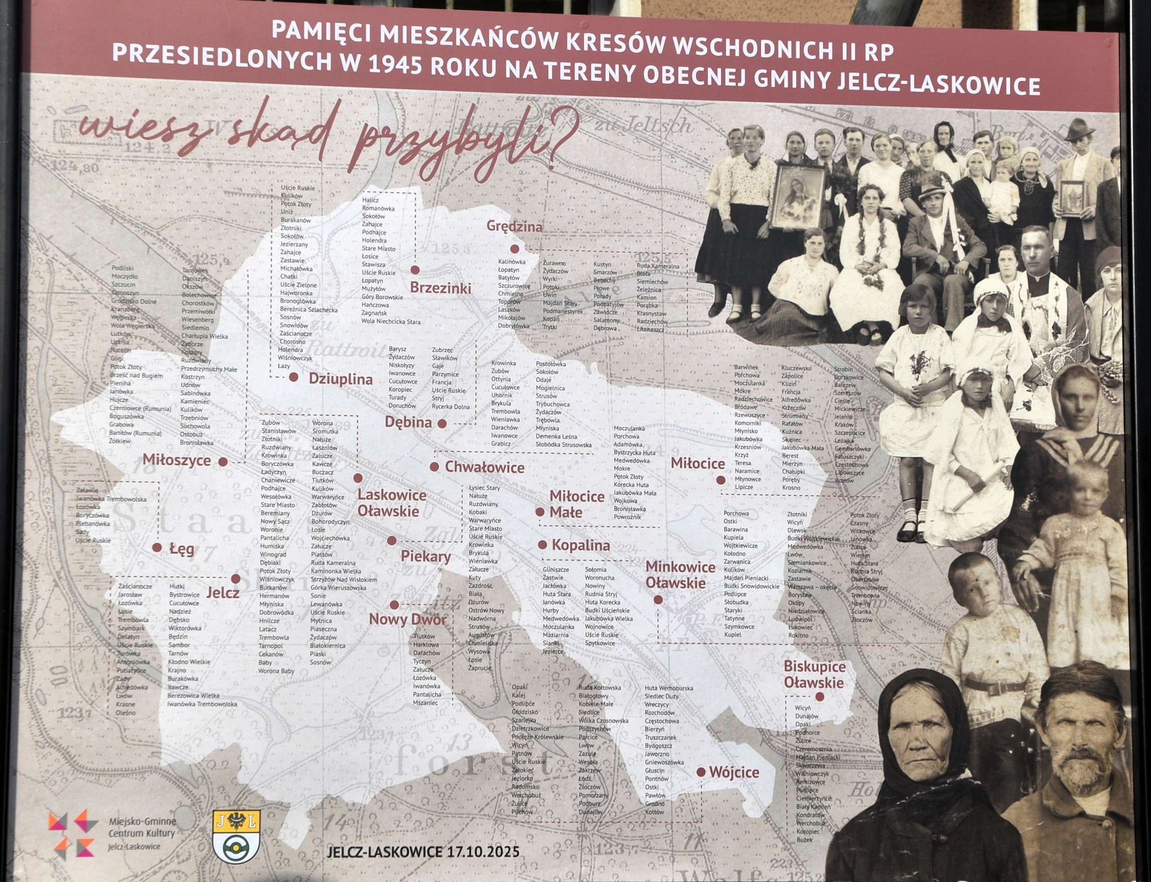 Tablica to efekt wielomiesięcznej pracy zespołu Miejsko-Gminnego Centrum Kultury w Jelcz-Laskowicach. Jak mówiła dyrektor MGCK, trudno było dotrzeć do informacji, które przeleżały 80 lat w Archiwum Państwowym: - Odbijałyśmy się od instytucji do instytucji i wielokrotnie słyszałyśmy, że takie dane nie istnieją lub zaginęły. Ale nie poddawałyśmy się i w końcu zrealizowałyśmy nasze plany Zdobyte dane naniosłyśmy na mapę gminy. Jest to pierwszy taki projekt - unikatowy. Teraz każdy mieszkaniec naszej gminy może zobaczyć, skąd przyjechali mieszkańcy danej miejscowości w 1945 roku i jestem pewna, że wiele osób będzie zaskoczonych, jak dużo miejscowości znalazło się na tej mapie.