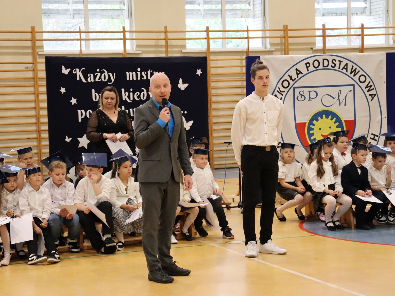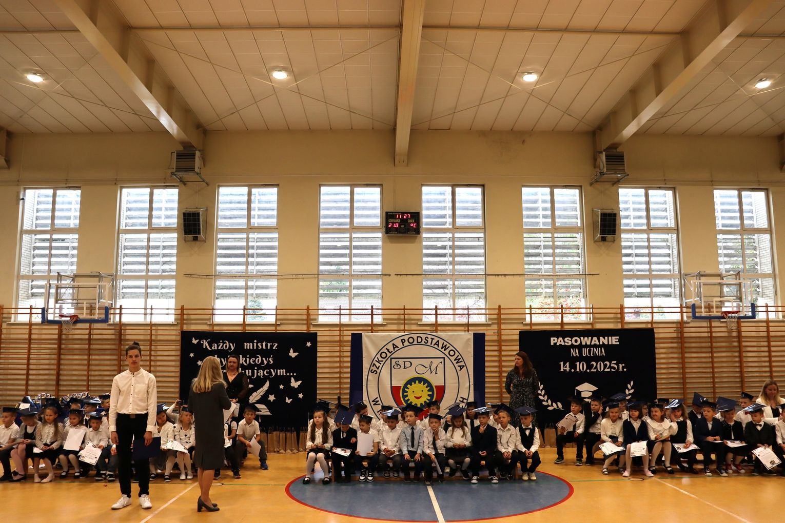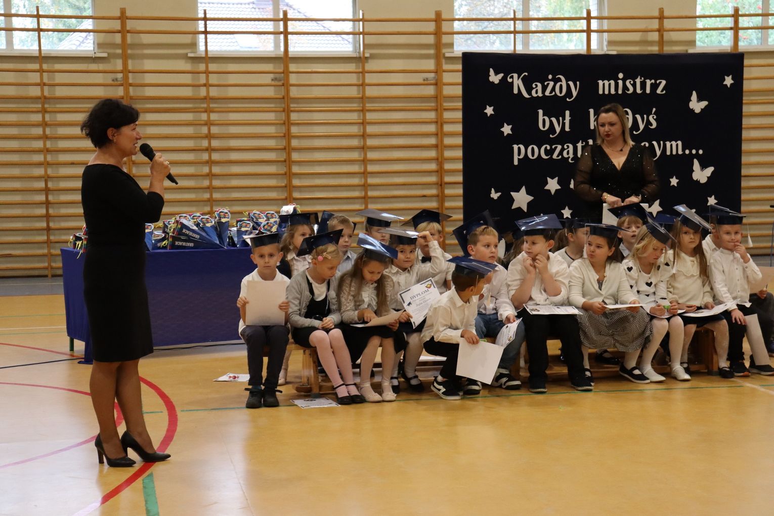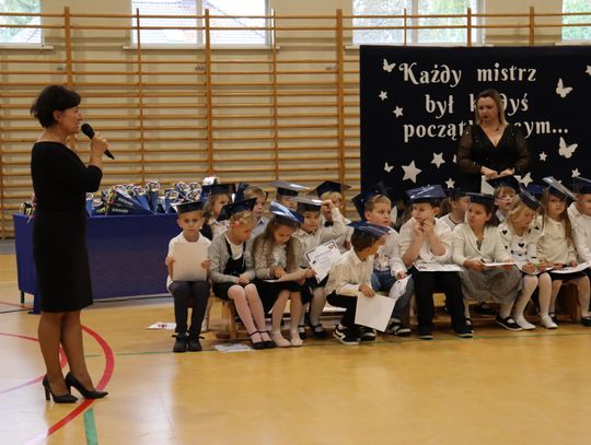 Kulminacyjnym momentem było ślubowanie oraz pasowanie symbolicznym ołówkiem, którego dokonała dyrektor Małgorzata Sojka-Choptiany. Pierwszaki z dumą i przekonaniem przyrzekały być pilnymi, odpowiedzialnymi uczniami, a pamiątkowe dyplomy będą im o tym przypominać przez cały rok.