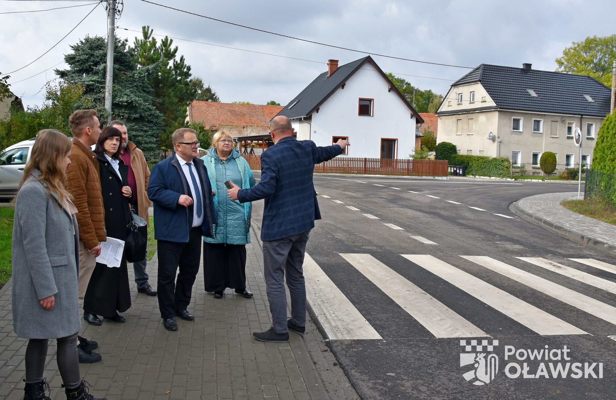 W spotkaniu odbiorowym uczestniczyli: Marek Szponar - Starosta Oławski, wójt gminy Domaniów Dorota Sala, dyrektor Powiatowego Zarządu Drogowego w Oławie Wojciech Drożdzal, przewodniczący Rady Gminy Piotr Kożak, inspektor nadzoru Lucjan Kucharski oraz dyrektor Przedsiębiorstwa Robót Drogowo-Mostowych w Brzegu Anna Kaniowska.