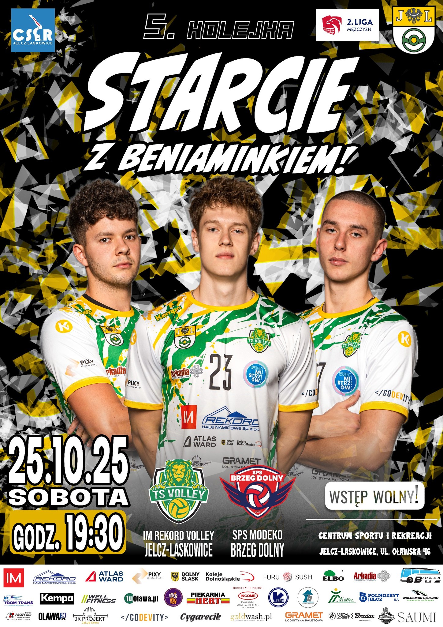 - W tym tygodniu zagramy u siebie. Już teraz odliczamy dni do chwili, kiedy znów zobaczymy się w Centrum Sportu i Rekreacji Jelcz-Laskowice. A to już w sobotę - czytamy w klubowej zapowiedzi w mediach społecznościowych. - O godzinie 19:30 zmierzymy się z SPS Modeko Brzeg Dolny. Nasi siatkarze są jak na razie niepokonani i zajmują 1. miejsce w tabeli. W sobotę rozegrają kolejne spotkanie i liczymy, że sięgną po 5. ligowe zwycięstwo w sezonie. Z plakatu na spotkanie z beniaminkiem rozgrywek II Ligi zapraszają Was Bartek Nackowski, Maciej Stawarz i Antoni Stankiewicz. Bardzo liczymy na Wasz głośny doping z trybun hali CSiR. Dołączajcie do meczowego wydarzenia i do zobaczenia w sobotę.