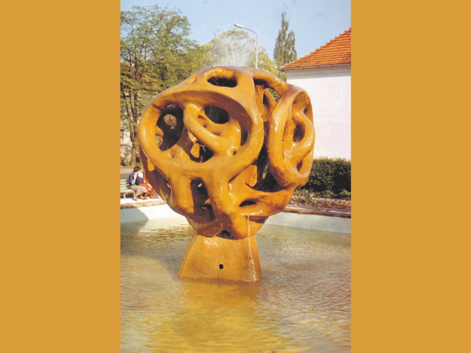 Od strony ulicy 3 Maja w maju 1980 roku, na wzór dużych miast, w których zaczęto stawiać rzeźby znanych twórców - a te rzeźby były kontrowersyjne, budziły różne odczucia mieszkańców, jednym się podobały inni mocno krytykowali - w Oławie postawiono rzeźbę, która miała być fontanną (nigdzie nie znalazłem oficjalnej nazwy tej rzeźby). Początkowo nie było zachwytu i ze względu na nietypowe kształty mieszkańcy szybko wymyślili nazwę "Mózg Naczelnika" - wtedy naczelnik miasta był odpowiednikiem dzisiejszego burmistrza. W latach 1973-1990 funkcję naczelnika pełnił Michał Wąsiewicz. Autorem rzeźby zaś był Tadeusz Teller, który faktycznie tworzył w duchu epoki. Pozostawił po sobie kilka rzeźb we wrocławskich parkach, takich jak "Jagusia" - postać kobieca przetworzona w stylu kubistycznym. W czasach PRL-u był to synonim nowoczesności, również u szerszego kręgu odbiorców.