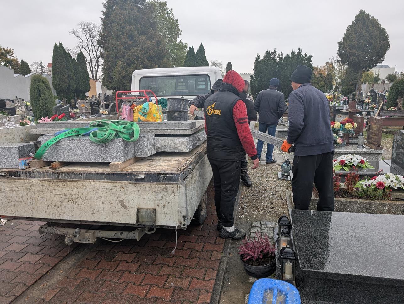 Dziś, czyli parę dni przed tegorocznymi Wszystkimi Świętymi nagrobek postawiony przez społeczny komitet został usunięty, a w jego miejsce rozpoczęto stawianie nowego - fot. niżej.