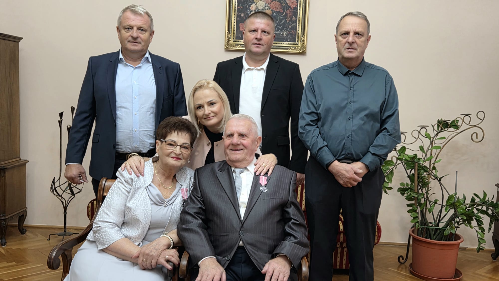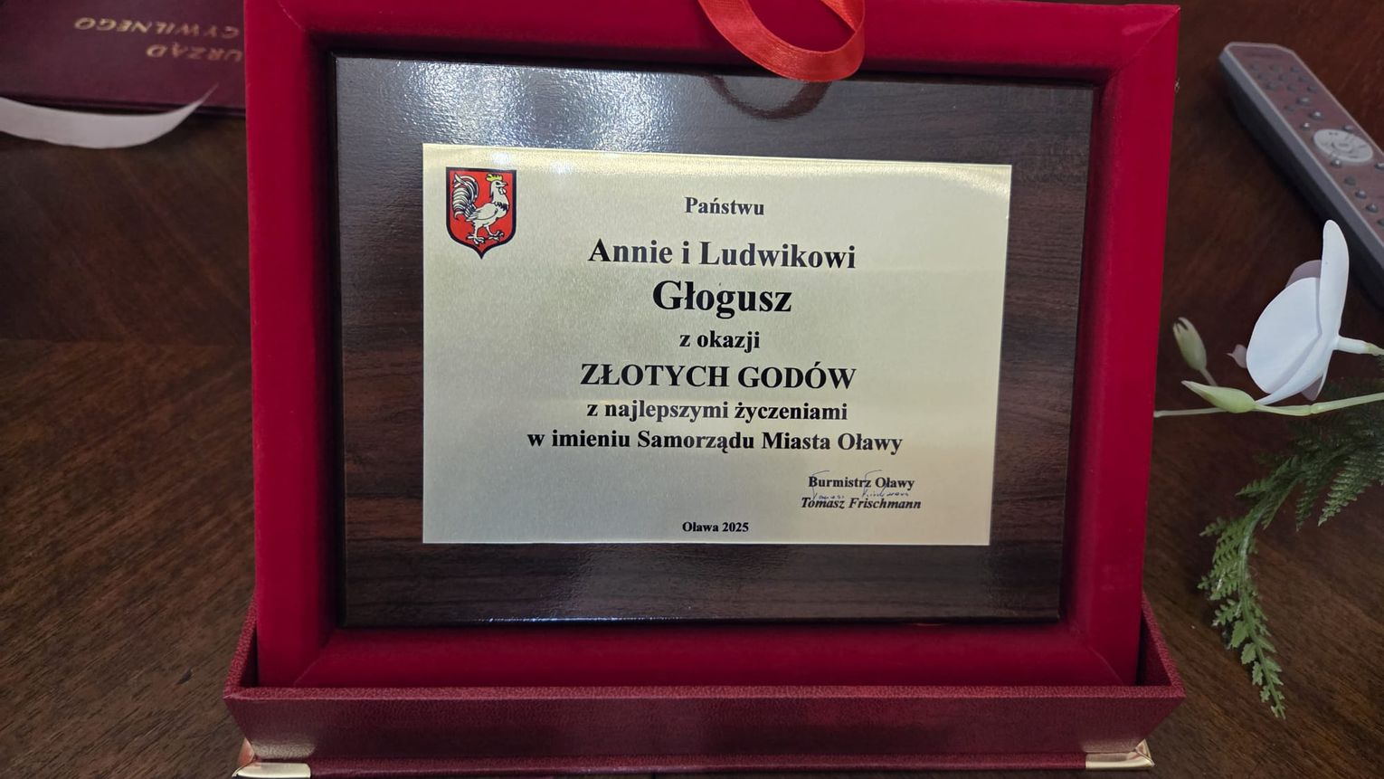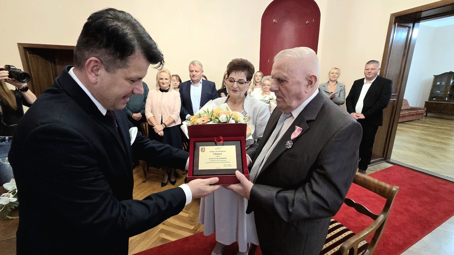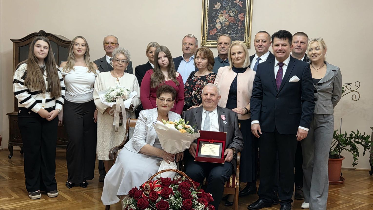 W imieniu Prezydenta RP medale jubilatom wręczył burmistrz Oławy Tomasz Frischmann, który jako pierwszy pogratulował też małżonkom i przekazał życzenia dalszych lat szczęścia. W imieniu swoim oraz lokalnej społeczności przekazał też bukiet kwiatów i okolicznościowy grawerton.