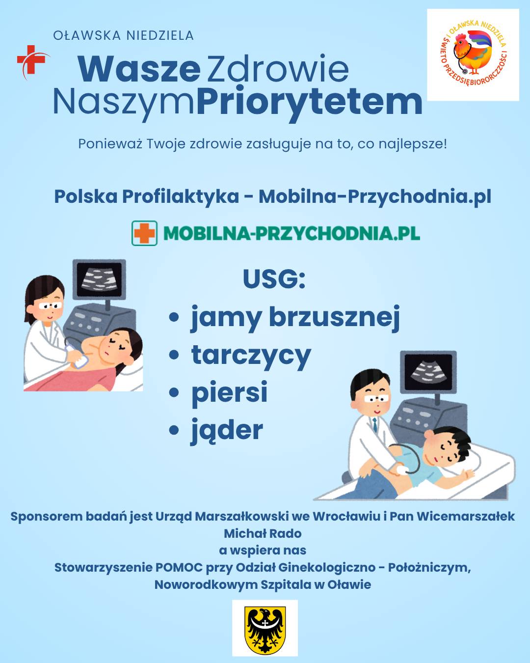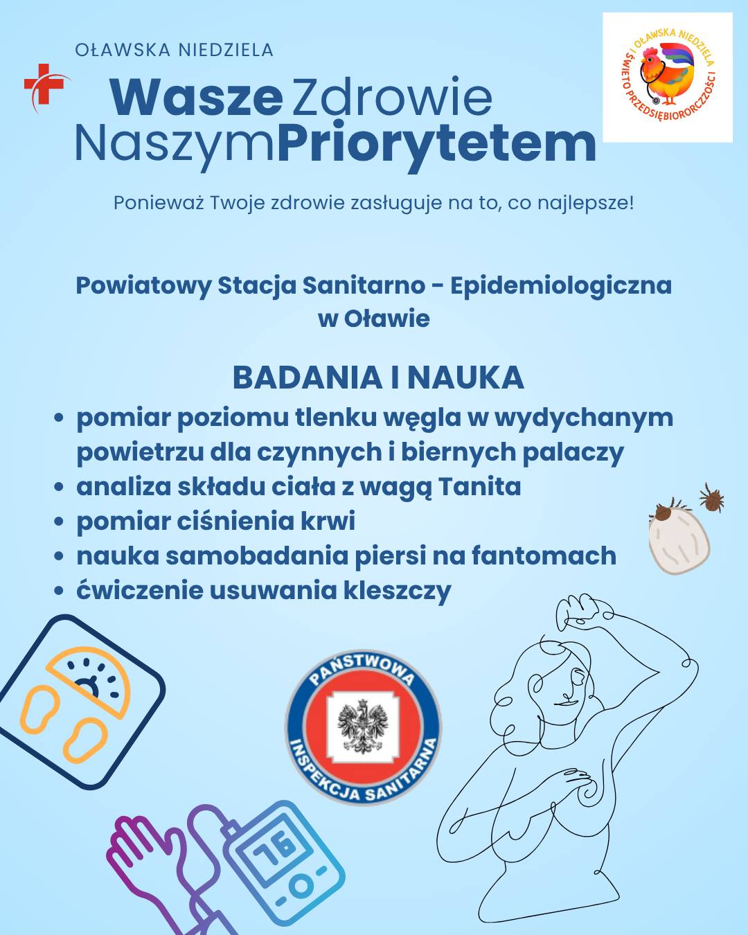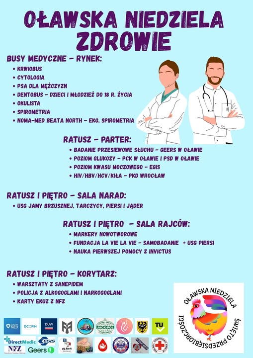 Nadchodząca Niedziela będzie głównie pod hasłem zdrowia, co zwykle cieszy się wielką popularnością mieszkańców Oławy (to już setki,a nawet tysiące przebadanych osób). Co ważne - wszystkie badania tego dnia są bezpłatne! Wystarczy przyjść, stanąć w kolejce i korzystać.