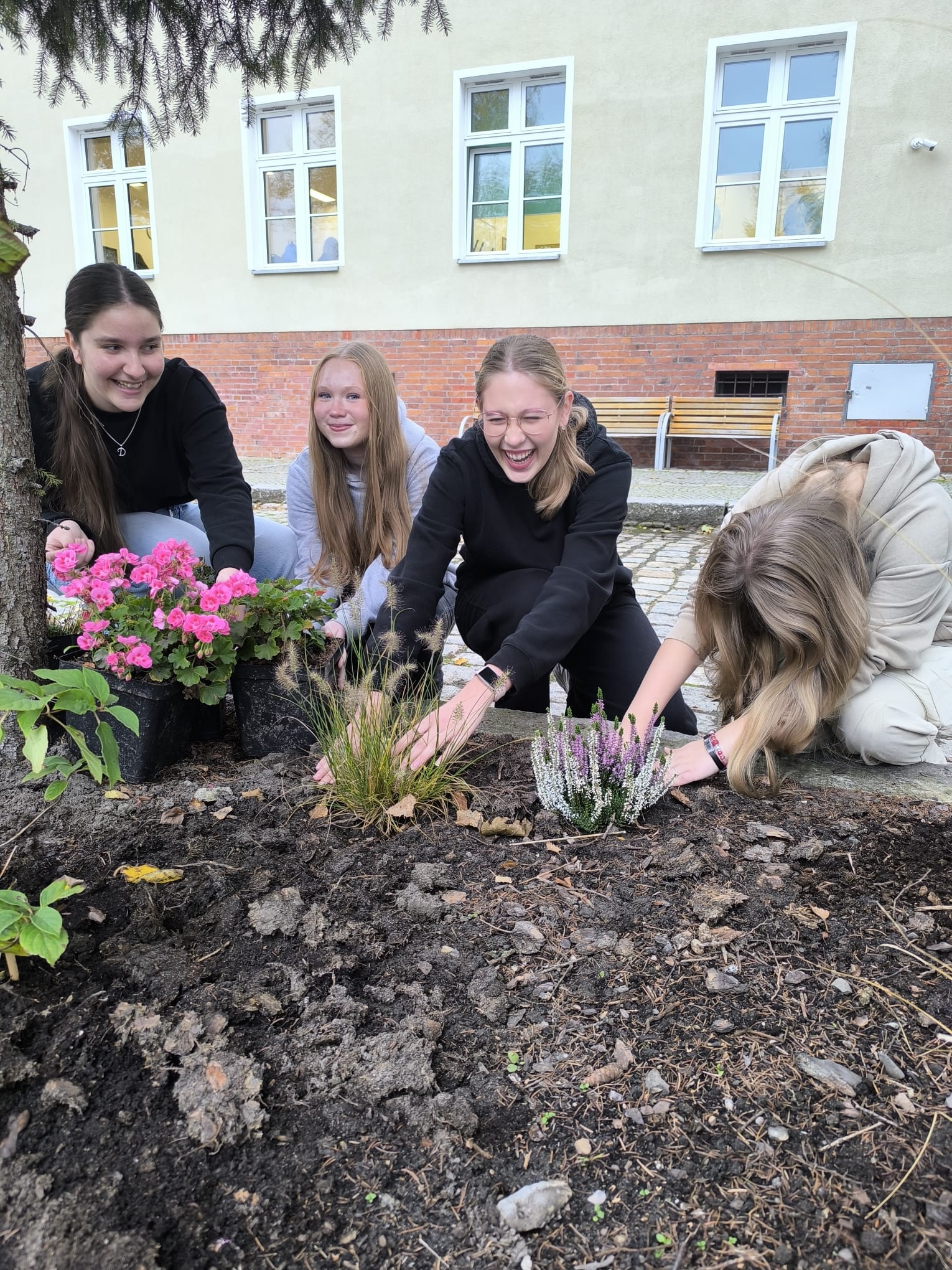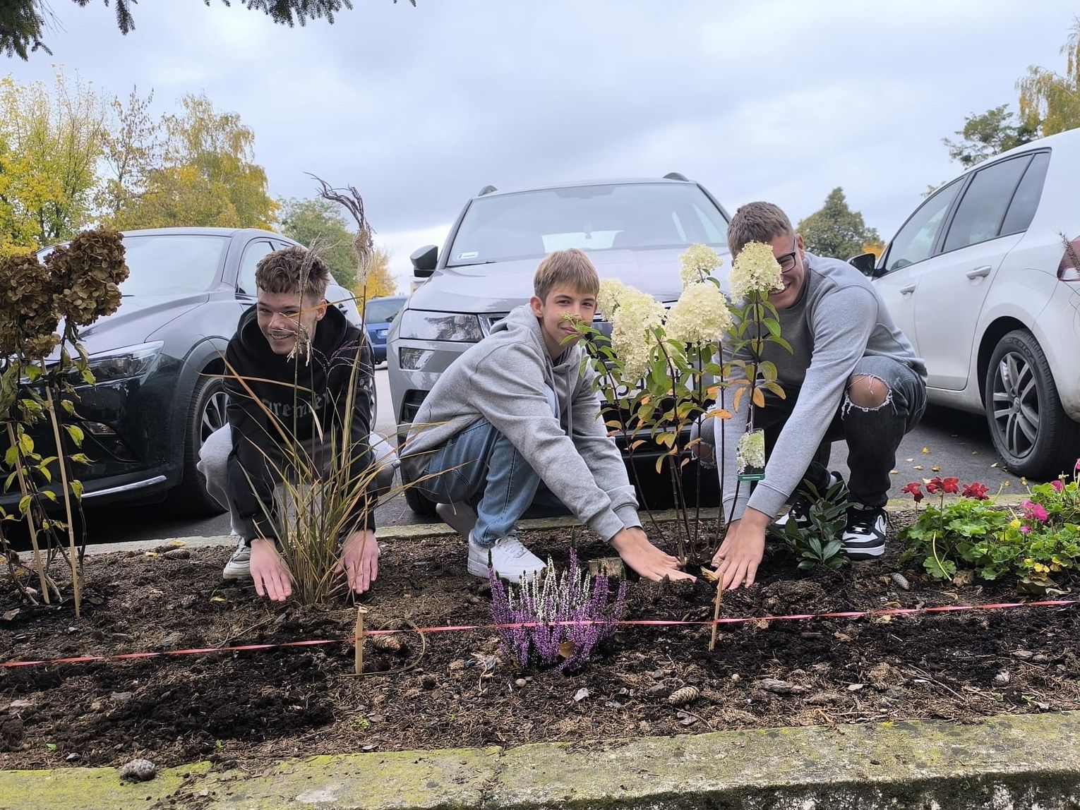 - Drugą część nagrody zainwestowaliśmy w otoczenie naszej szkoły. Zakupiliśmy nowe rośliny i wspólnymi siłami urządziliśmy piękne rabatki, które będą cieszyć nasze oczy przez długi czas. Posadziliśmy między innymi: przepiękne hortensje bukietowe, trawy ozdobne, takie jak miskanty i rozplenice, kolorowe wrzosy, idealne na jesień!