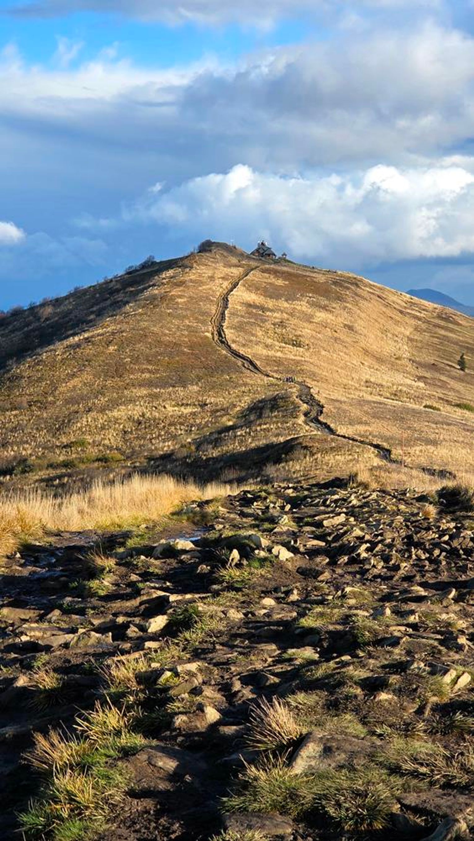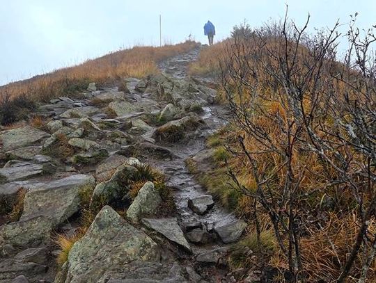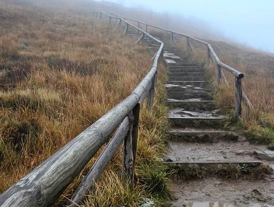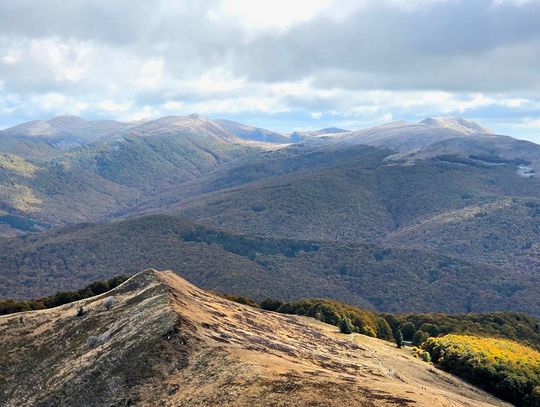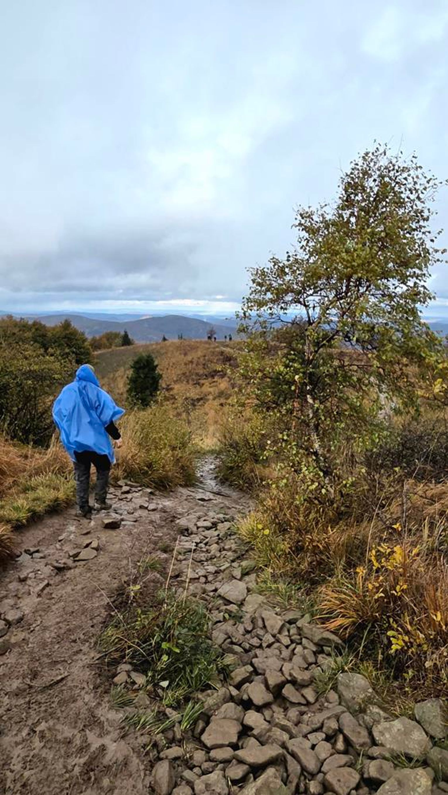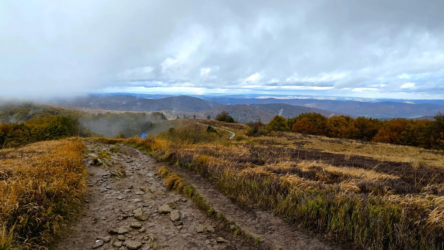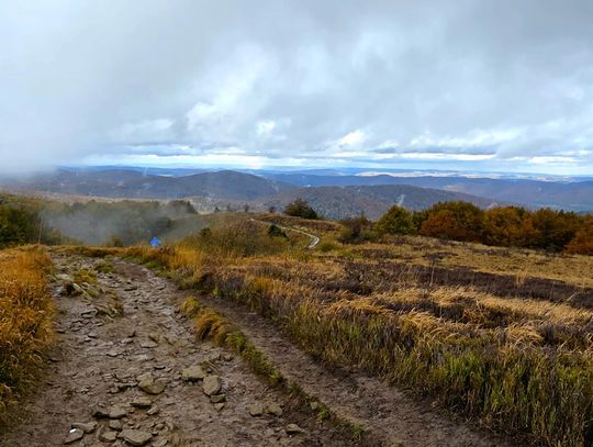 Na rozgrzewkę Połonina Wetlińska i Chatka Puchatka. Wyruszyłam rano i już po kilkunastu metrach dopadał mnie deszcz, który dalej przekształcił się w krupy śniegu. Z każdym kolejnym krokiem nasilał się też wiatr. Chmury zasłaniały wszystko. Kilka razy zastanawiałam się, czy zawrócić, zwłaszcza że błoto na trasie nie ułatwiało wędrówki. Z prognozy pogody wynikało jednak, że pogoda się zmieni. Będzie kilkugodzinne okienko pogodowe, więc... skoro już wyszłam na szlak, a wraz ze mną gro innych ludzi, którzy twardo parli do góry, uznałam, że może jednak ja też się nie poddam. I - kolejny raz powtórzę - było warto. Chmury i śnieg towarzyszyły mi do schroniska Chatka Puchatka. Po około godzinie spędzonej tam wraz z tłumem innych oczekujących na poprawę pogody, naszym oczom ukazała się Połonina Wetlińska. W pełnej okazałości, z odległym horyzontem, tylko miejscami poprzecinana cienkimi chmurami łączącymi kolorowe górskie zbocza z błękitnym niebem. Niezapomniany widok i to dziwne uczucie wszechogarniającego spokoju. Każdy kolejny krok po połoninie był więc już tylko przyjemnością.