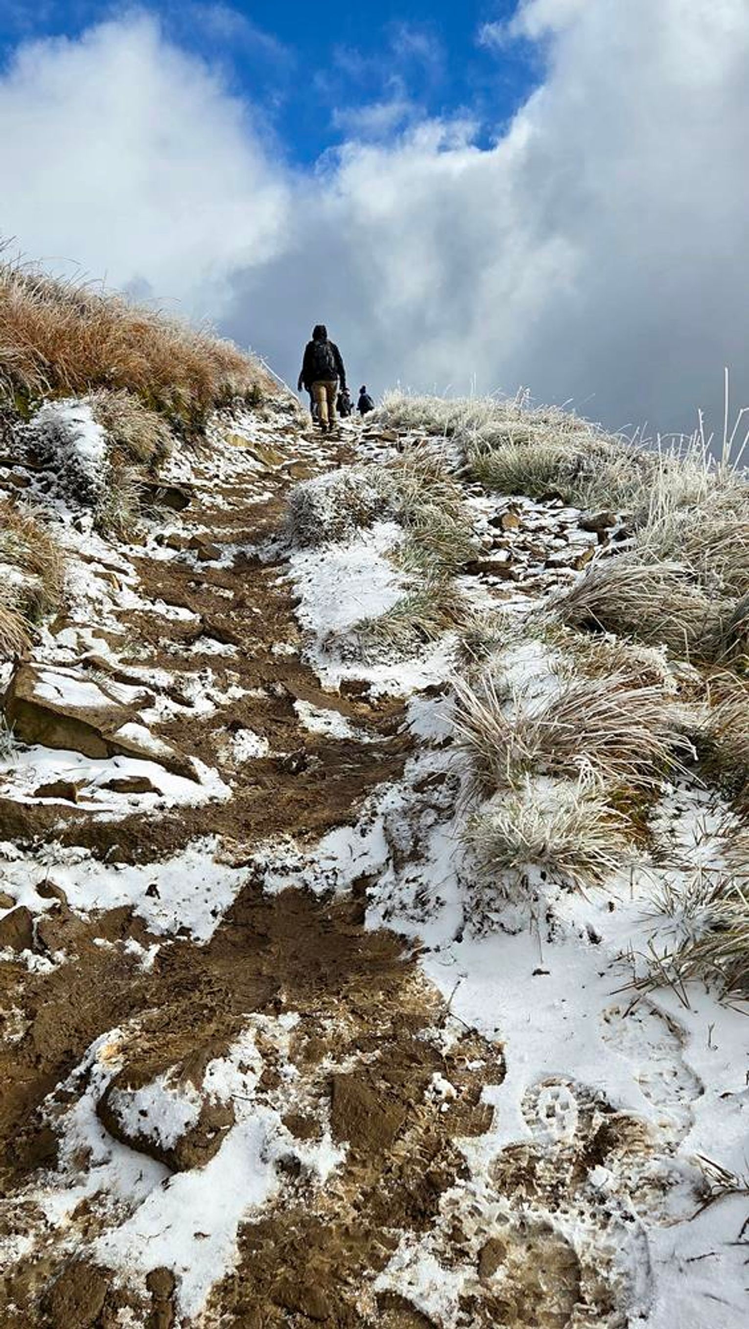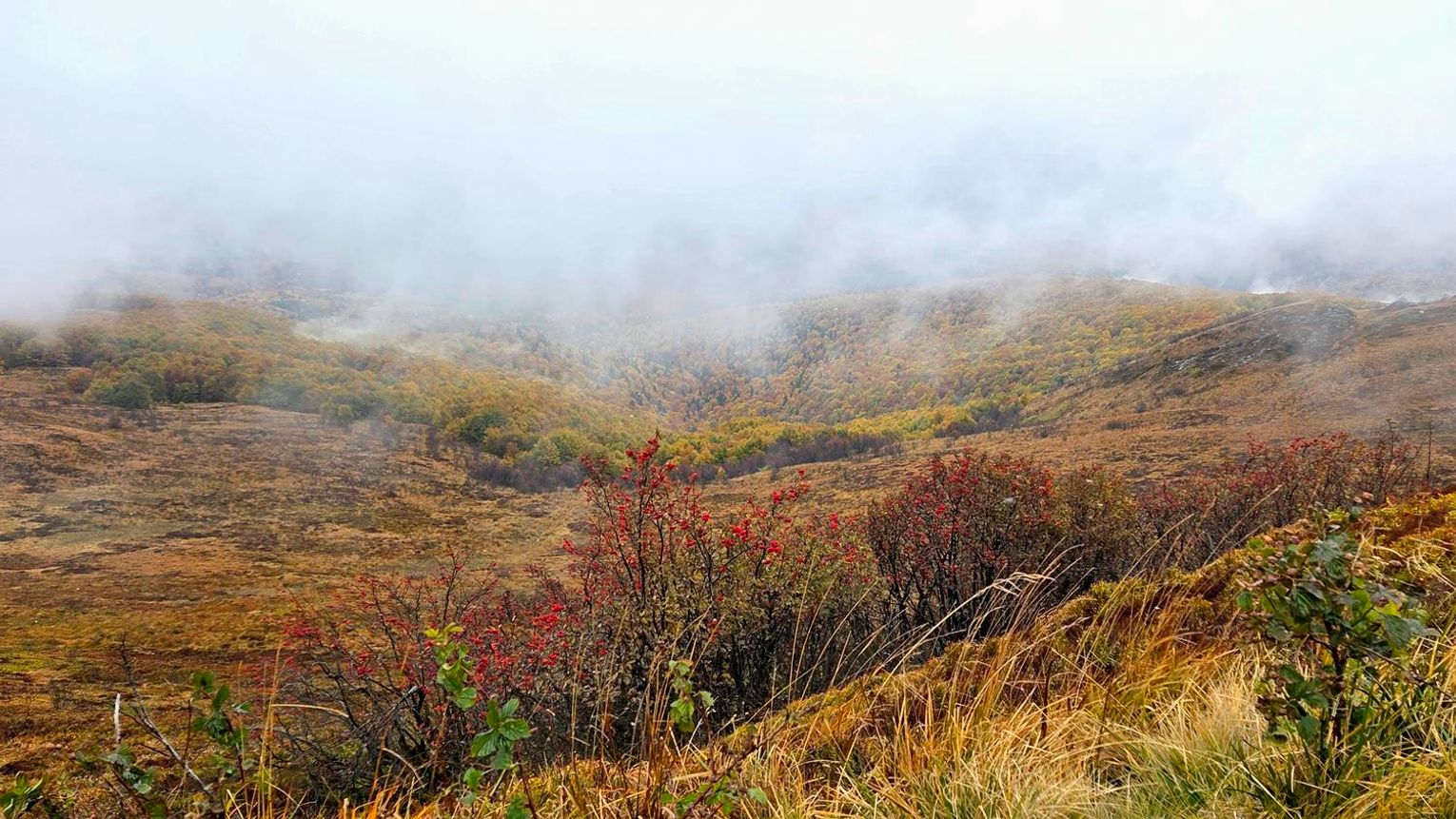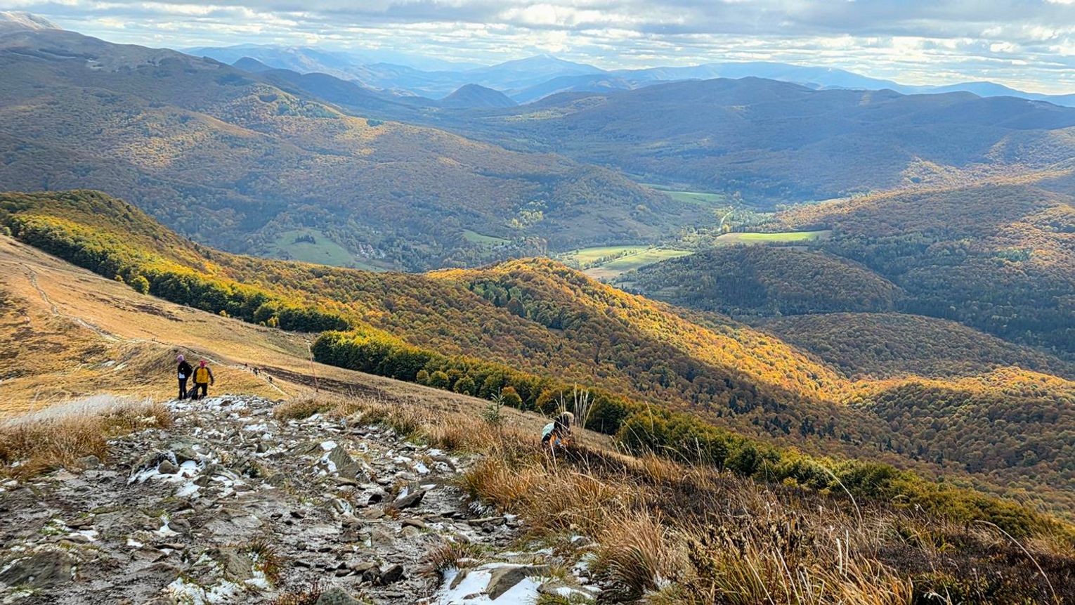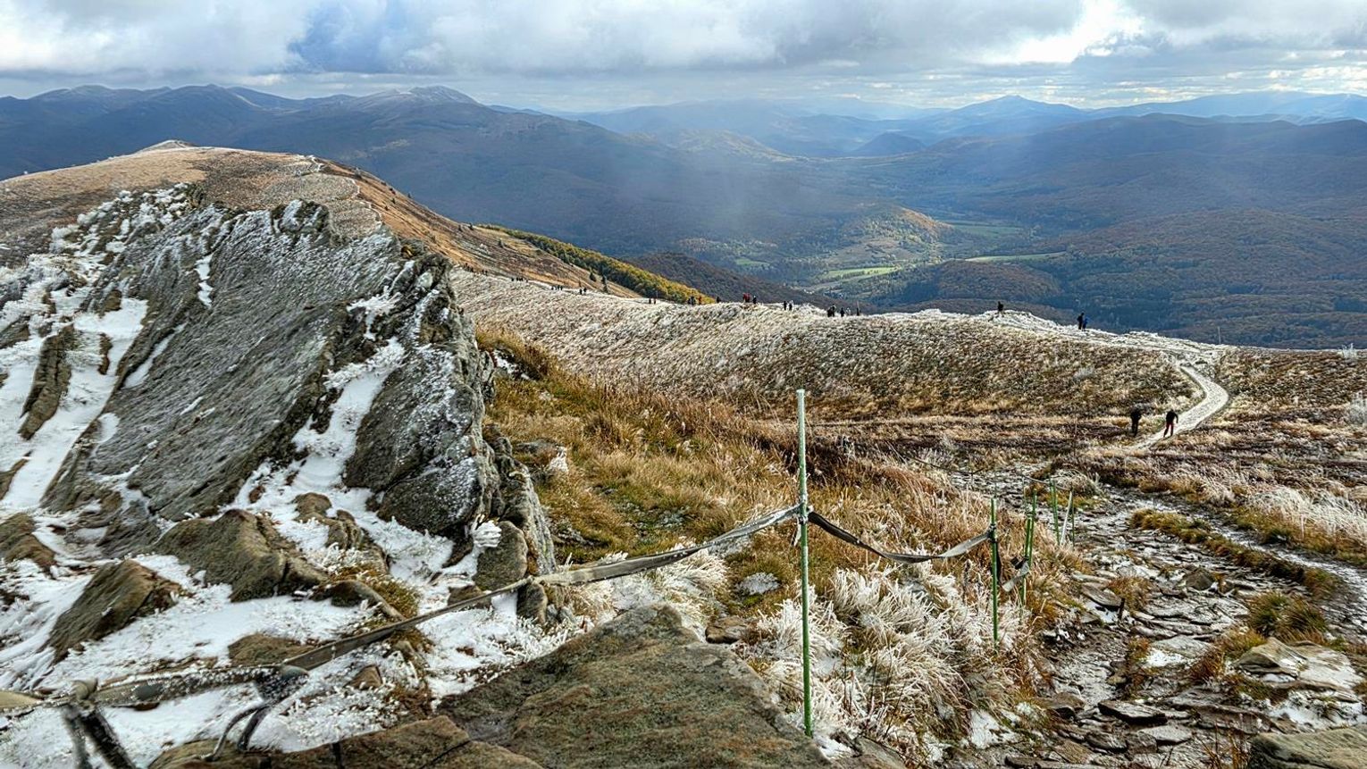 Na rozgrzewkę Połonina Wetlińska i Chatka Puchatka. Wyruszyłam rano i już po kilkunastu metrach dopadał mnie deszcz, który dalej przekształcił się w krupy śniegu. Z każdym kolejnym krokiem nasilał się też wiatr. Chmury zasłaniały wszystko. Kilka razy zastanawiałam się, czy zawrócić, zwłaszcza że błoto na trasie nie ułatwiało wędrówki. Z prognozy pogody wynikało jednak, że pogoda się zmieni. Będzie kilkugodzinne okienko pogodowe, więc... skoro już wyszłam na szlak, a wraz ze mną gro innych ludzi, którzy twardo parli do góry, uznałam, że może jednak ja też się nie poddam. I - kolejny raz powtórzę - było warto. Chmury i śnieg towarzyszyły mi do schroniska Chatka Puchatka. Po około godzinie spędzonej tam wraz z tłumem innych oczekujących na poprawę pogody, naszym oczom ukazała się Połonina Wetlińska. W pełnej okazałości, z odległym horyzontem, tylko miejscami poprzecinana cienkimi chmurami łączącymi kolorowe górskie zbocza z błękitnym niebem. Niezapomniany widok i to dziwne uczucie wszechogarniającego spokoju. Każdy kolejny krok po połoninie był więc już tylko przyjemnością.