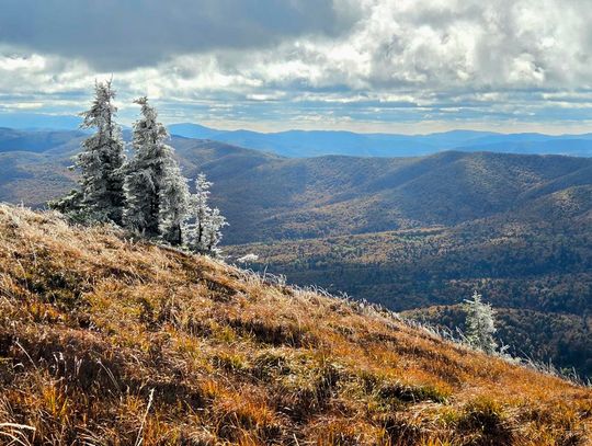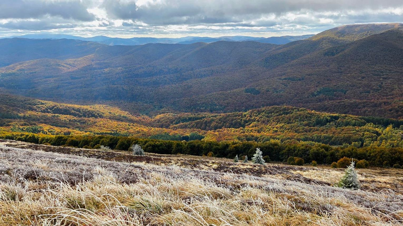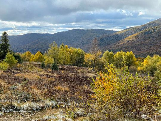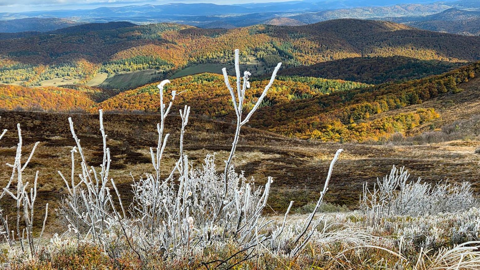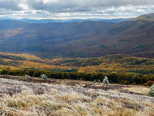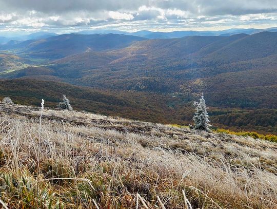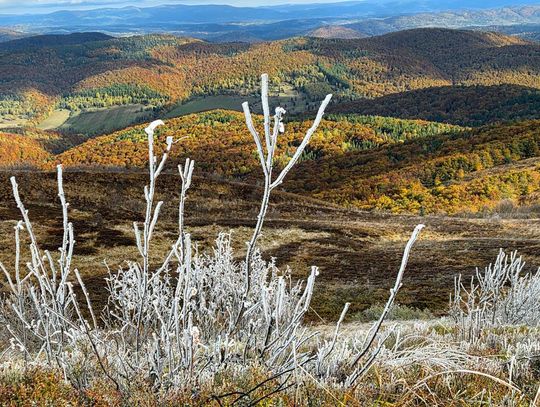 W nocy w Bieszczady zakradła się zima. Ranek przywitał mnie oszronionymi drzewami i delikatną warstwą śniegu w wyższych partiach gór, a jednocześnie błękitnym niebem i promieniami słońca, więc krajobraz stał się jeszcze bardziej wyjątkowy. Wędrówka po Połoninie Caryńskiej - bo to był cel drugiego dnia mojej wędrówki - przyniosła więc zupełnie nowe inne krajobrazy i wrażenia, ale - co będę opowiadać - musicie to zobaczyć sami. Bieszczadzkie połoniny to moim zdaniem obowiązkowa jesienna trasa dla każdego. Ja na pewno tam wrócę...