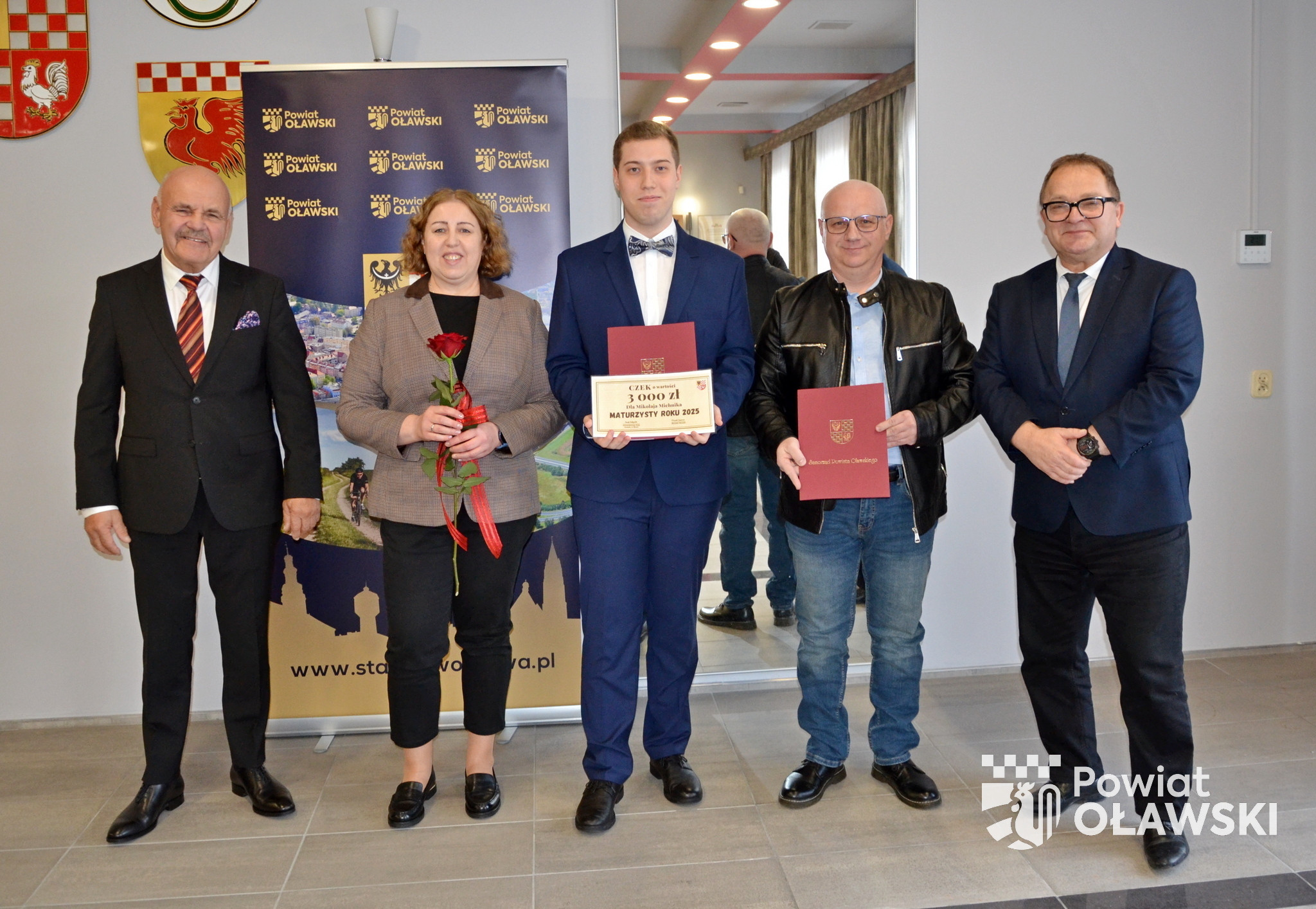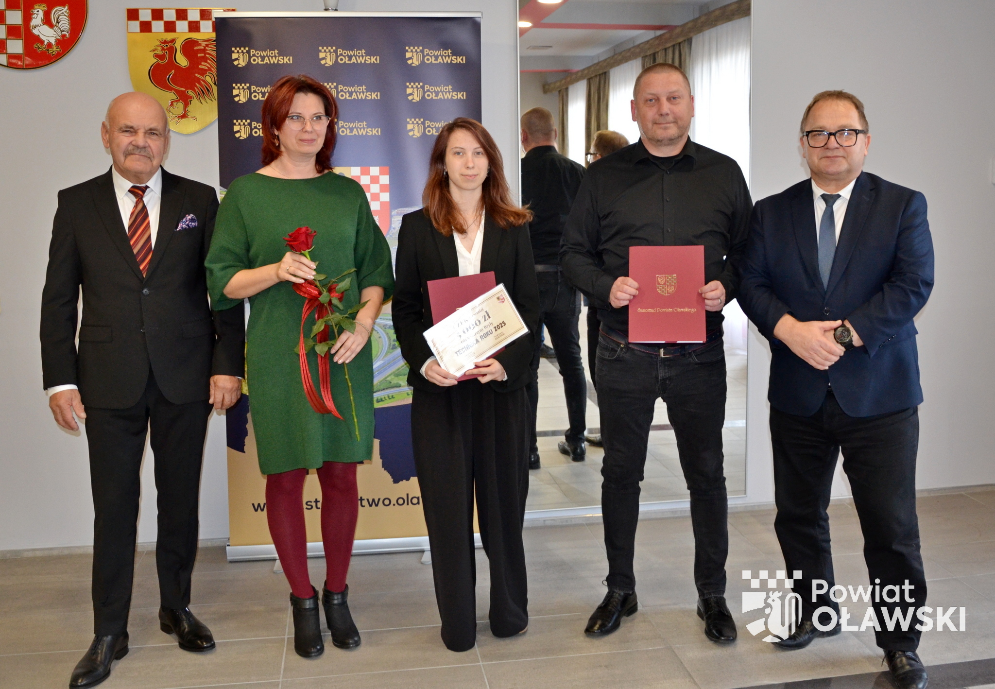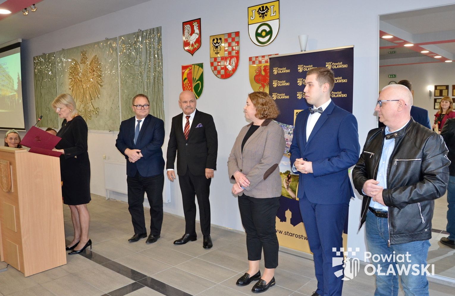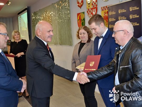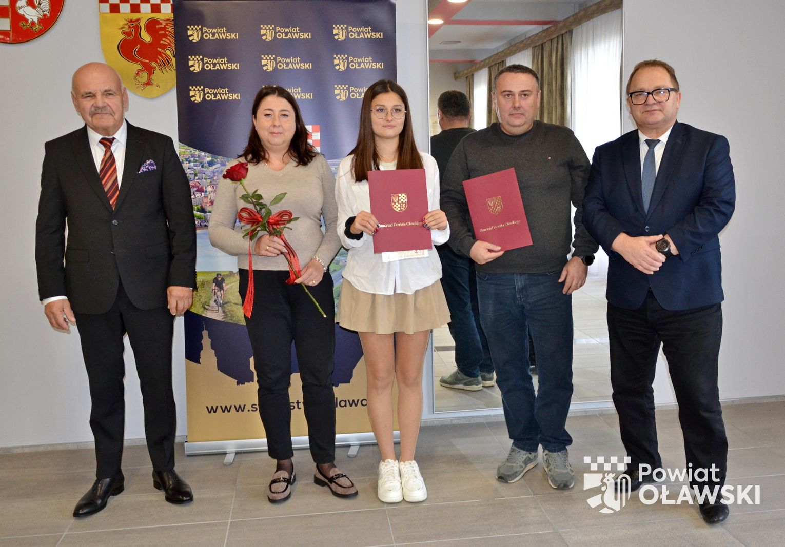 Listy gratulacyjne i nagrody, wręczyli uczniom w obecności radnych, Marek Szponar - Starosta Oławski oraz przewodniczący Rady Powiatu Józef Hołyński. Przedstawiciele samorządu powiatowego pogratulowali zaproszonym na sesję rodzicom wyróżnionych uczniów i podziękowali za trud wychowawczy, który zaprocentował takimi wspaniałymi rezultatami.