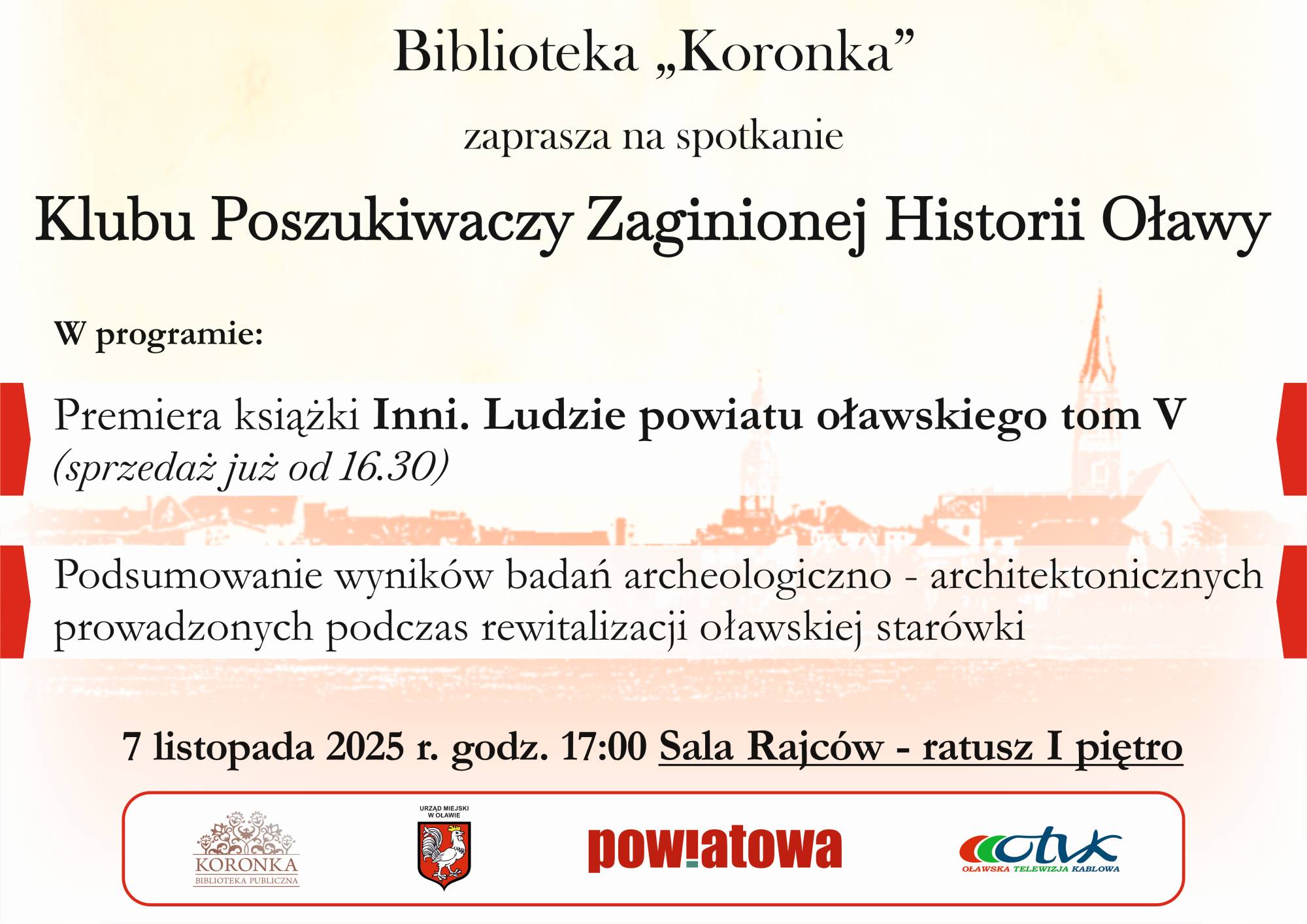 Premiera wydawnictwa 7 listopada (piątek) w Sali Rajców oławskiego ratusza o godz.17.00. Sprzedaż książek już od 16.30 - będzie też okazja do spotkania z autorami książki.