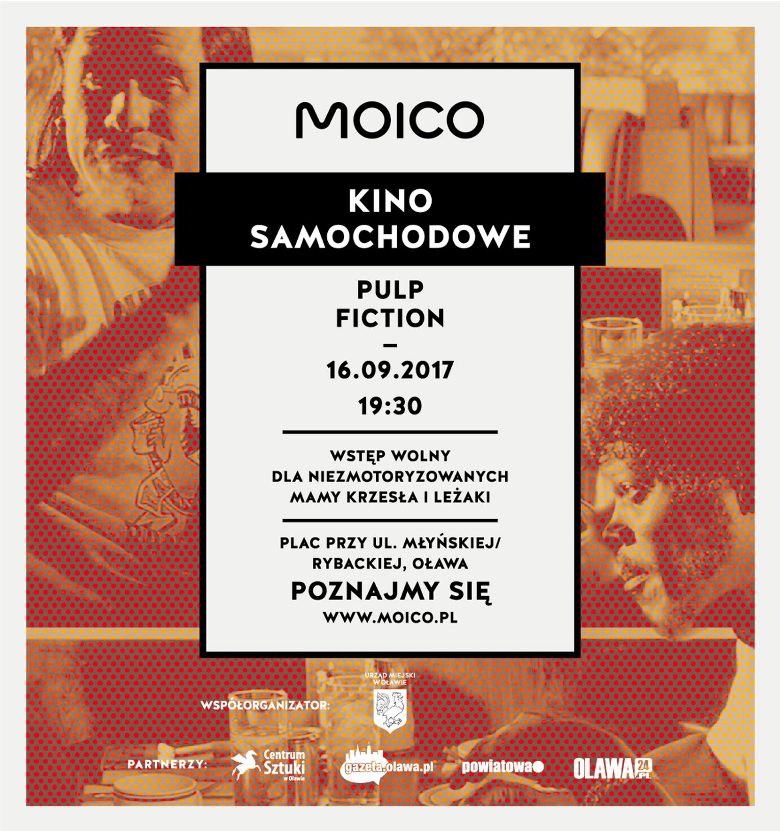 Jak informuje Sylwia Wojtkowska, 16 września startuje w Oławie "KINO SAMOCHODOWE powered by MOICO". Na pierwszy ogień idzie film "Pulp Fiction" - początek projekcji o godz.19.30. Gdzie? Na placu przy ulicach Rybackiej/Młyńskiej, przylegającym do boiska przy Szkole Podstawowej nr 2 (za czasów radzieckich koszarów był tu park maszynowy).