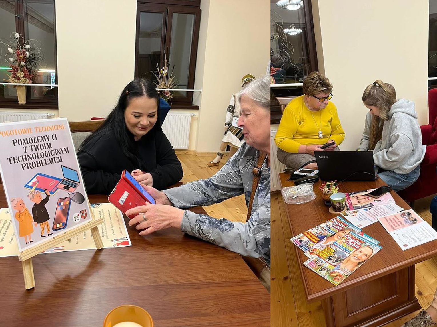 Spotkanie upłynęło w serdecznej i pełnej zrozumienia atmosferze. Seniorzy z ciekawością zadawali pytania, a wolontariuszki z ogromnym zaangażowaniem pomagały, dzieląc się swoją wiedzą i doświadczeniem. Nie zabrakło też rozmów, uśmiechu i wzajemnej życzliwości, a czas spędzony razem był wartościowy dla obu stron.