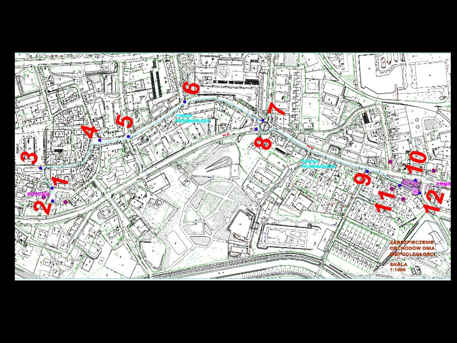 Oto trasa przemarszu - uczestnicy wychodzą z Sanktuarium pw. Najświętszej Maryi Panny Matki Pocieszenia (Plac świętego Maksymiliana Marii Kolbe) i idą pod Pomnik Niepodległej, a przemarsz odbędzie się następującymi ulicami: