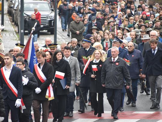 Po mszy św. w intencji ojczyzny w Sanktuarium pw. Najświętszej Maryi Panny Matki Pocieszenia w Oławie, uczestnicy przemaszerowali pod Pomnik Niepodległej, gdzie odbywały się główne uroczystości.