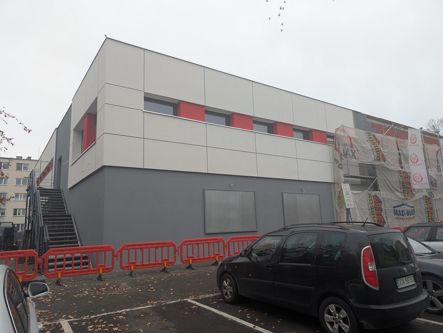 Budynek dostaje zdecydowanie bardziej stonowanych kolorów. Ale to nie wszystko - "Kwadraciak" ma już nowy świetlik, wymieniono dach, są nowe schody z boku, a po ociepleniu przyjedzie czas na wymianę chodnika wzdłuż frontowej części budynku... Klienci czekają z niecierpliwością.