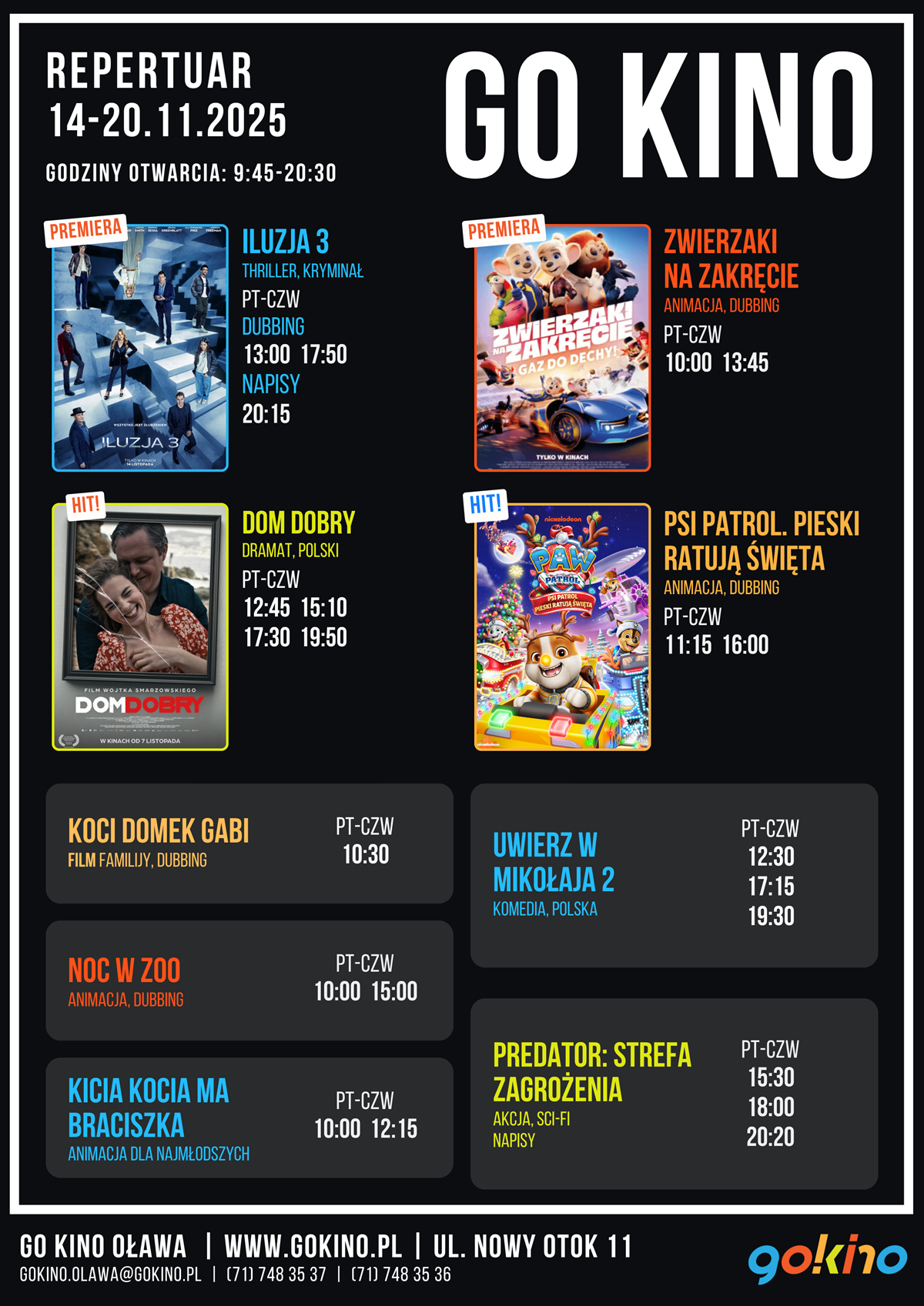 Repertuar od 14 do 20 listopada 2025 r. W tym tygodniu premiera kolejnej części thrillera kryminalnego pt. "Iluzja 3", reżyseria Ruben Fleischer