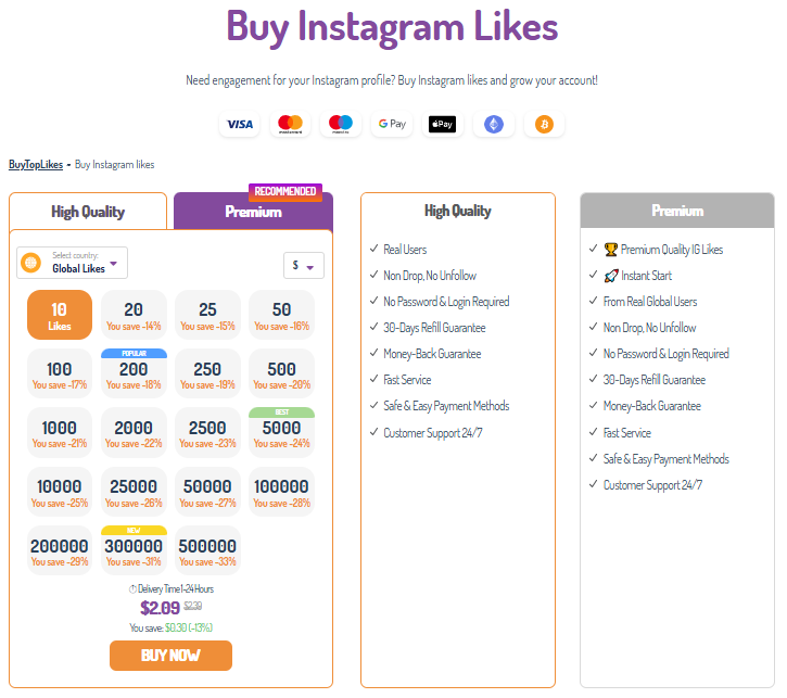 Trzecim serwisem był BuyTopLikes. Zamówiłem pakiet ok. 500 lajków (rozłożyłem je na kilka postów). Pierwsze polubienia pojawiły się po paru minutach, a wszystkie zamówione serduszka dostarczono w ciągu kilku godzin tego samego dnia. Lajki były dodawane stopniowo, co wyglądało naturalnie. Jakość oceniam pozytywnie - większość kont lajkujących wyglądała wiarygodnie, choć parę profili miało minimalną aktywność.