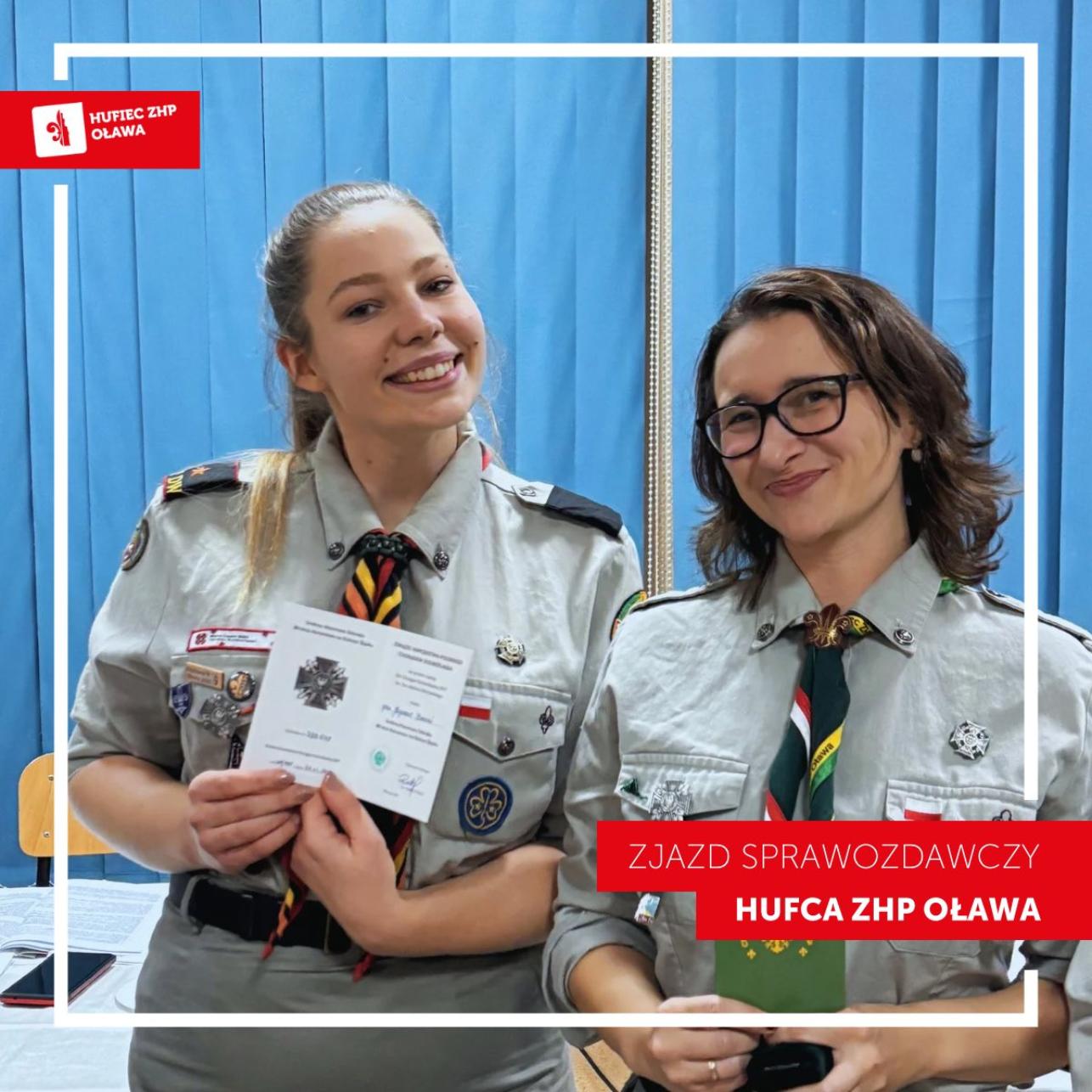 Cała aktualna Komenda Hufca ZHP Oława otrzymała absolutorium, a ich praca została oceniona pozytywnie. Podczas zjazdu przyznano również honorowe odznaczenia dla instruktorów naszego hufca: