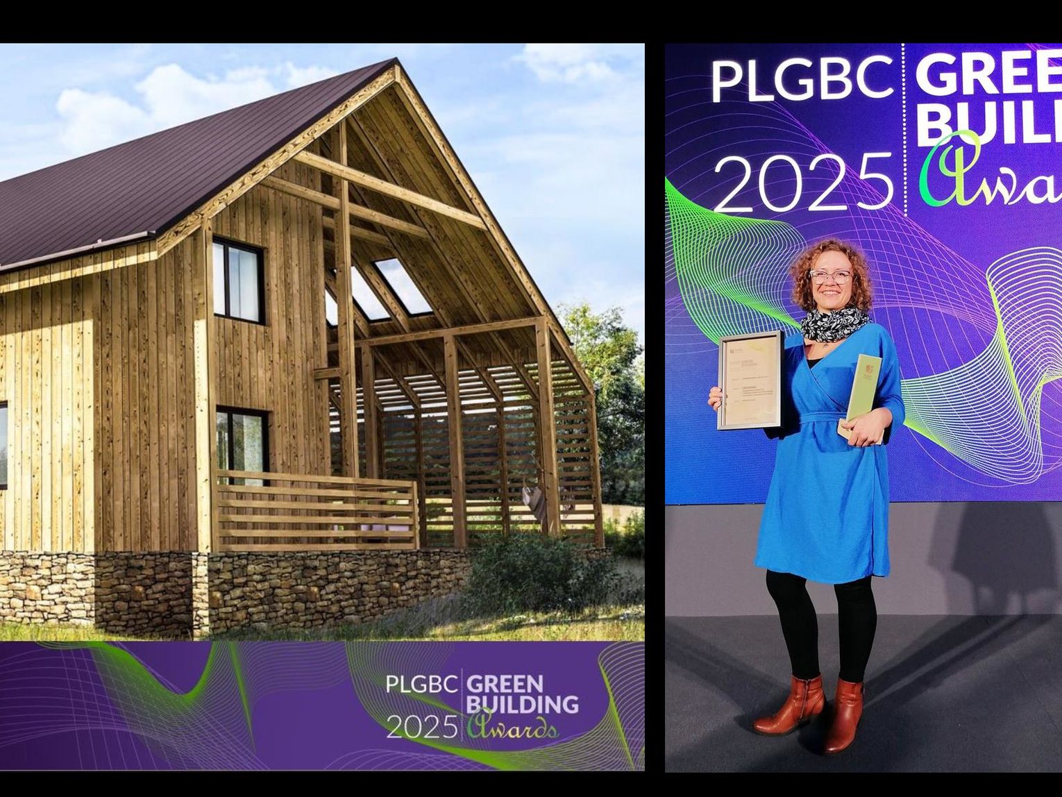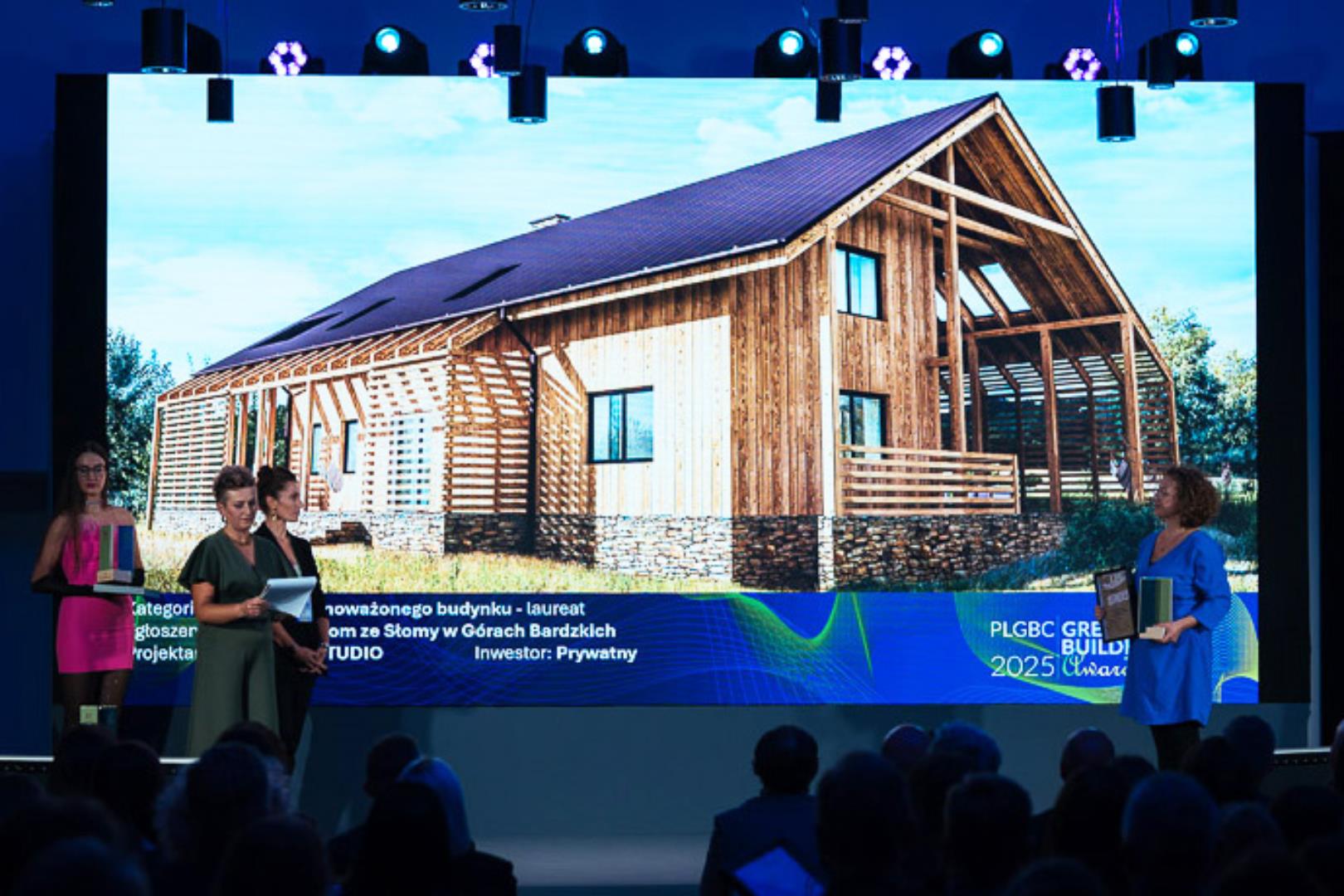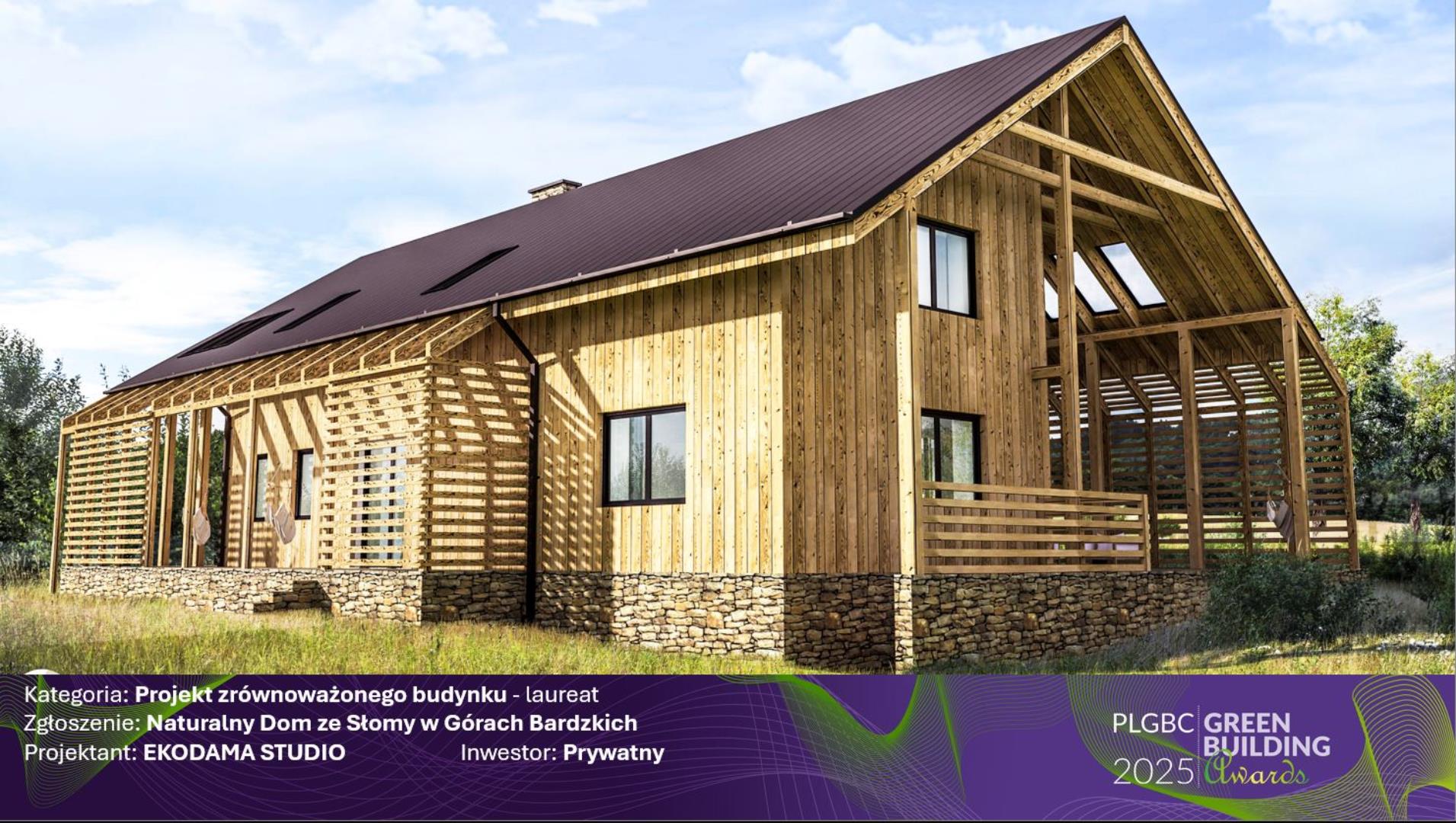 Naturalny Dom ze Słomy w Górach Bardzkich – nagroda główna w kategorii Projekt Zrównoważonego Budynku za dom dom wykonany z prefabrykowanych paneli słomiano-drewnianych, łączy tradycję z nowoczesnością. Projekt oparty został na szerokich analizach, w tym solarnych, które pozwoliły ukształtować bryłę tak, by maksymalnie wykorzystać słońce zimą i chronić wnętrze przed przegrzewaniem latem. To budynek naturalny, zdrowy, niskoemisyjny i pięknie wpisany w krajobraz.