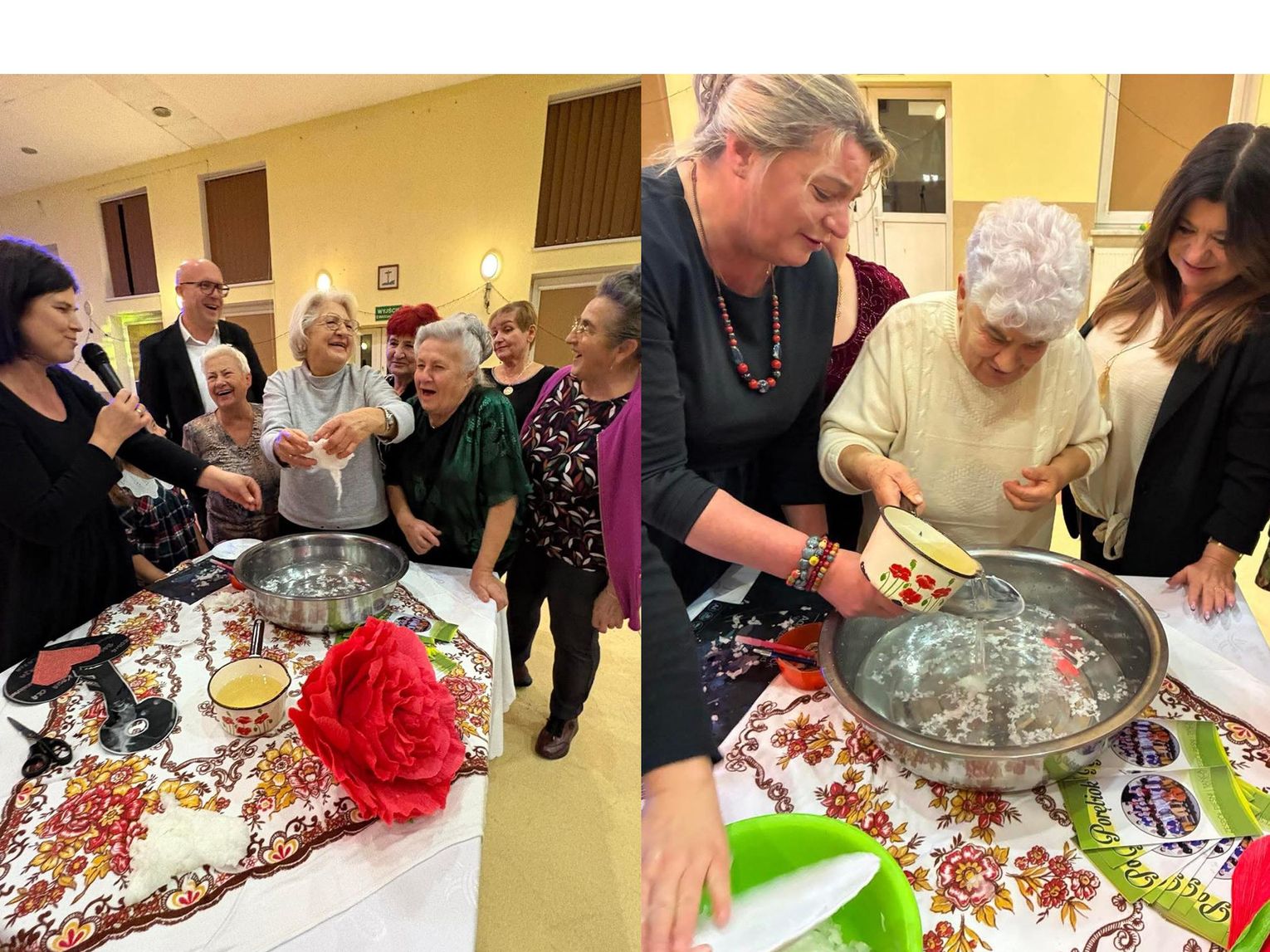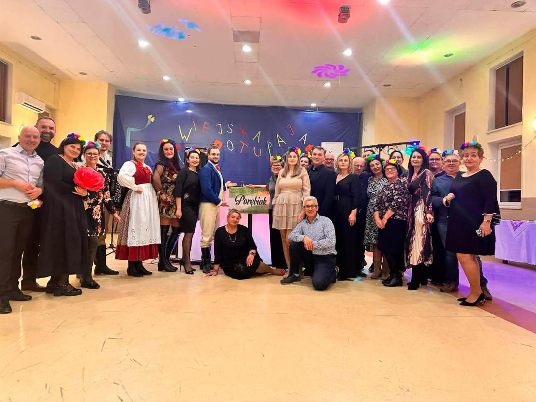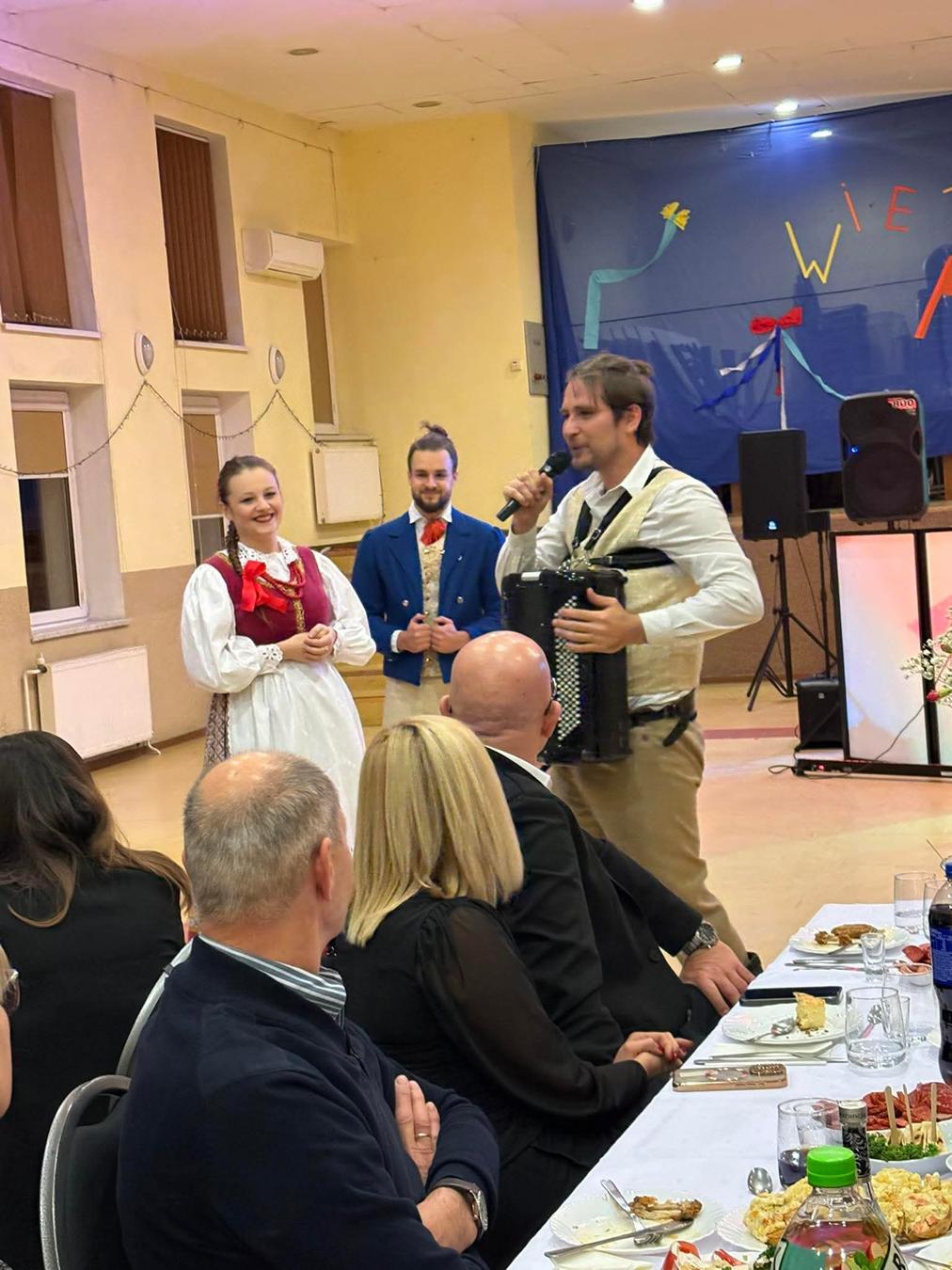 Co to był za wieczór… Cel był prosty, ale piękny – spotkanie międzypokoleniowe przy muzyce i tańcach ludowych. Oprawę muzyczną zapewnili artyści z zespołu Porębiok, którzy już pierwszymi dźwiękami akordeonu porwali całą salę do śpiewu. A gdy pojawili się tancerze w strojach ludowych – goście przecierali oczy ze zdumienia! Było śpiewanie, było tańcowanie, a nawet… tańce z miotłą w rytmie „Mietlarza”.