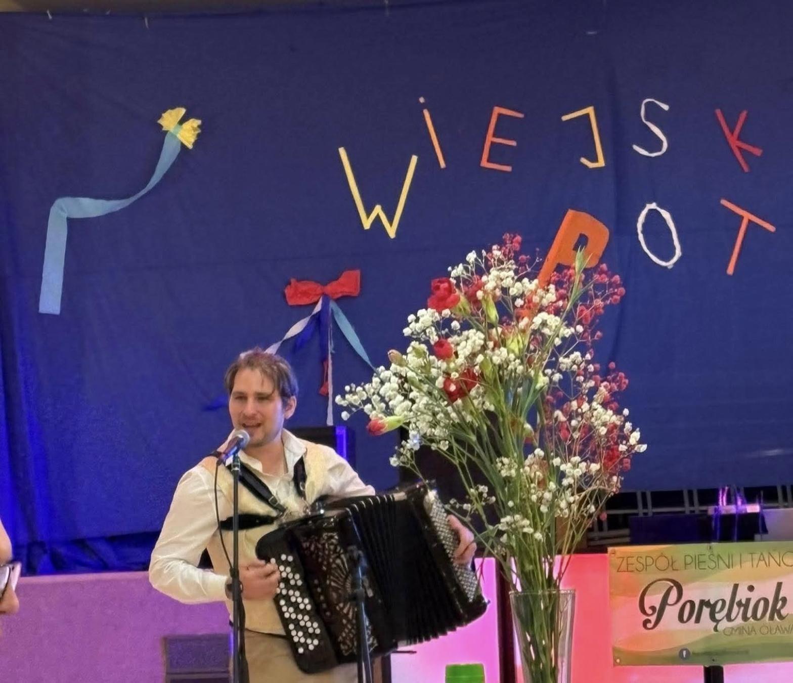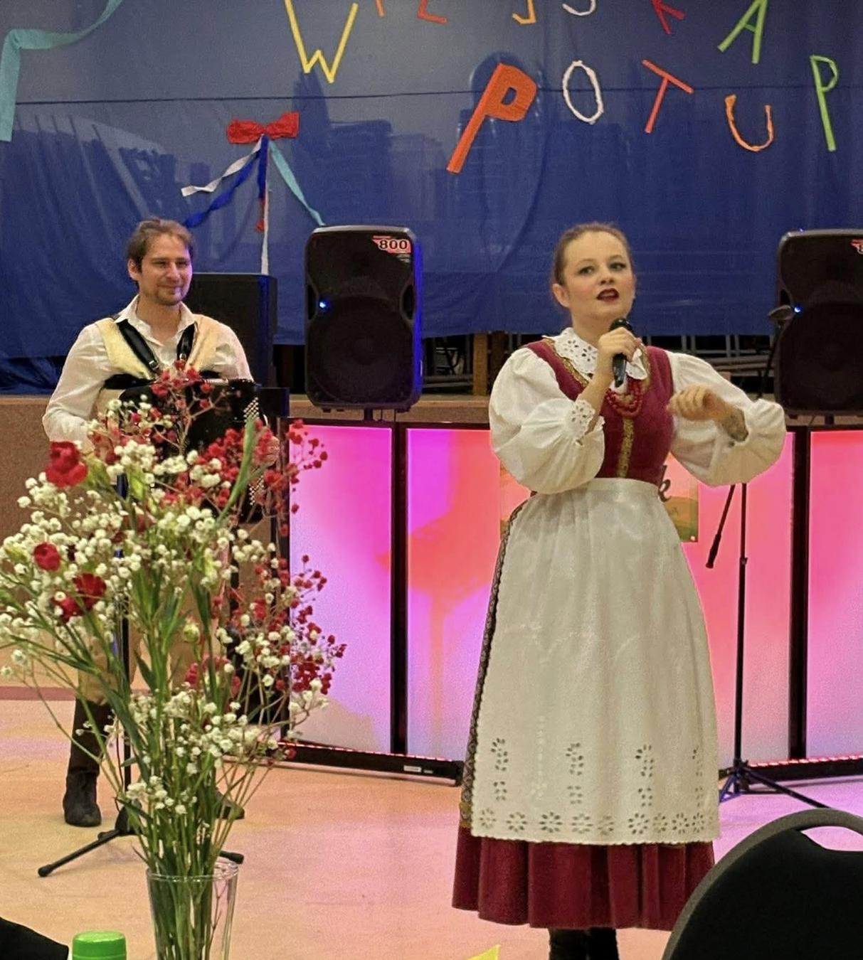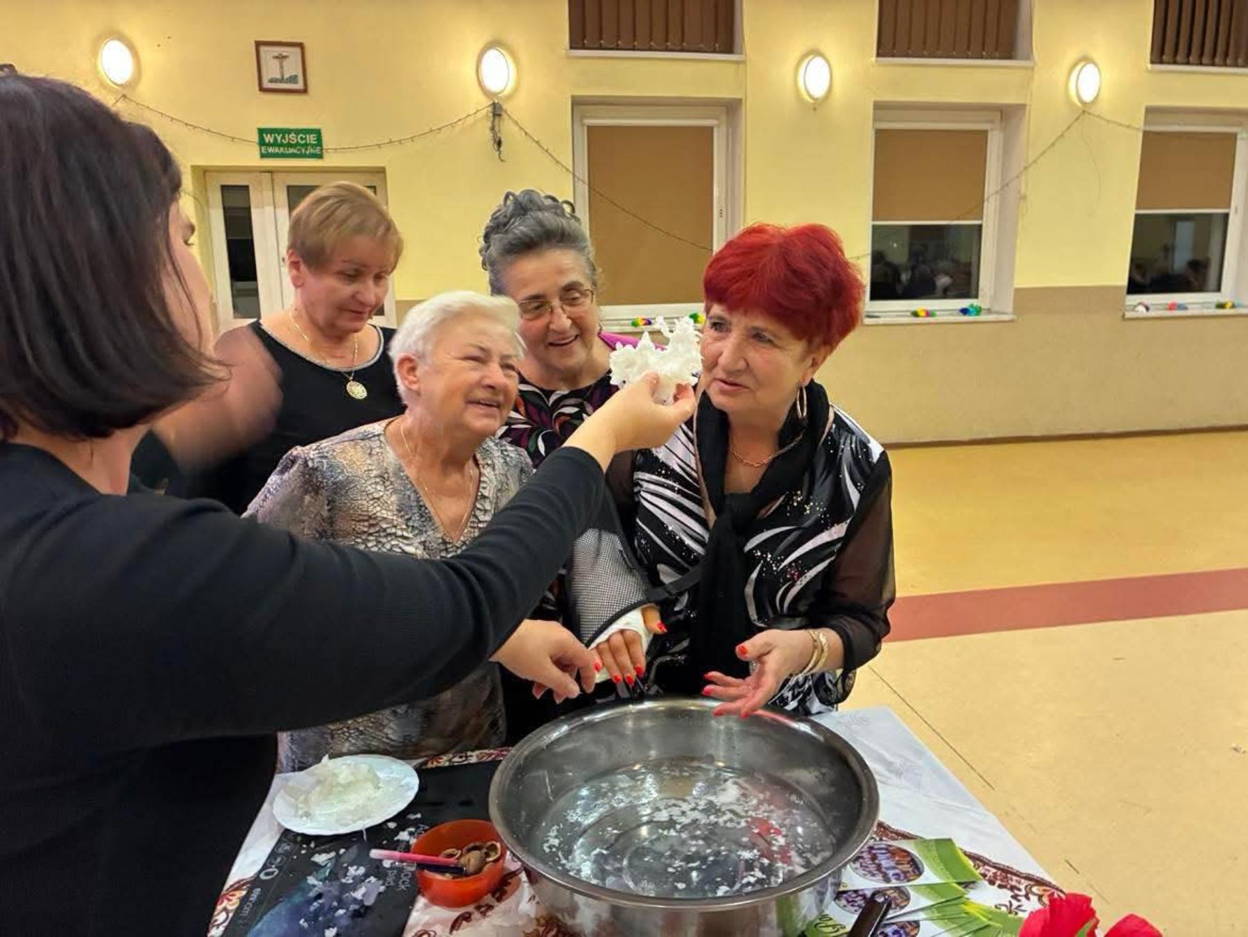 Co to był za wieczór… Cel był prosty, ale piękny – spotkanie międzypokoleniowe przy muzyce i tańcach ludowych. Oprawę muzyczną zapewnili artyści z zespołu Porębiok, którzy już pierwszymi dźwiękami akordeonu porwali całą salę do śpiewu. A gdy pojawili się tancerze w strojach ludowych – goście przecierali oczy ze zdumienia! Było śpiewanie, było tańcowanie, a nawet… tańce z miotłą w rytmie „Mietlarza”.