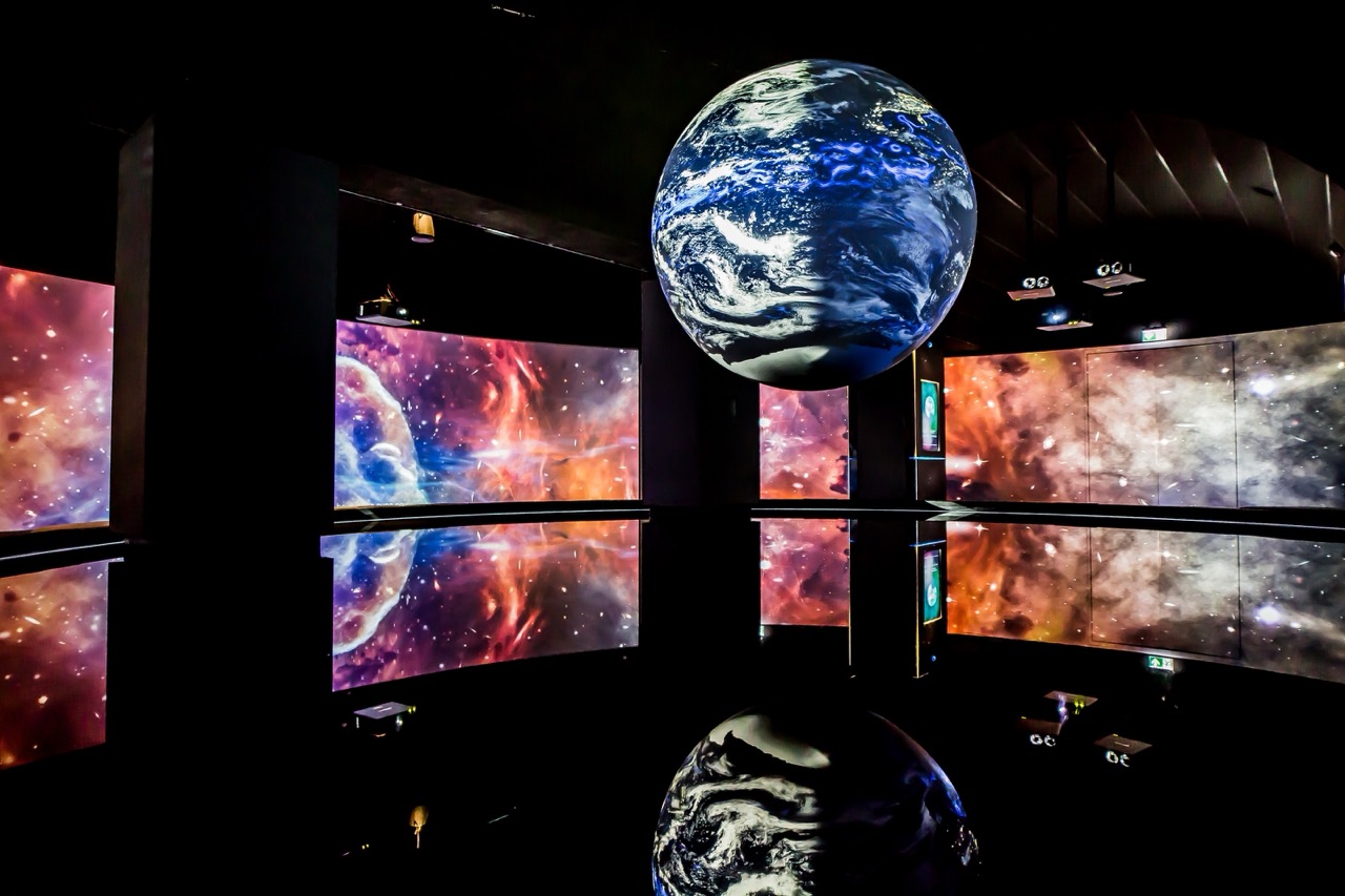 Projekcja 360º na 65-metrowym ekranie, która opowiada o powstaniu wody na Ziemi, stanowi pierwszy etap zwiedzania wystawy. W tę podróż zabiera magiczny głos Krystyny Czubówny, która prowadzi w najodleglejsze zakamarki kosmosu.