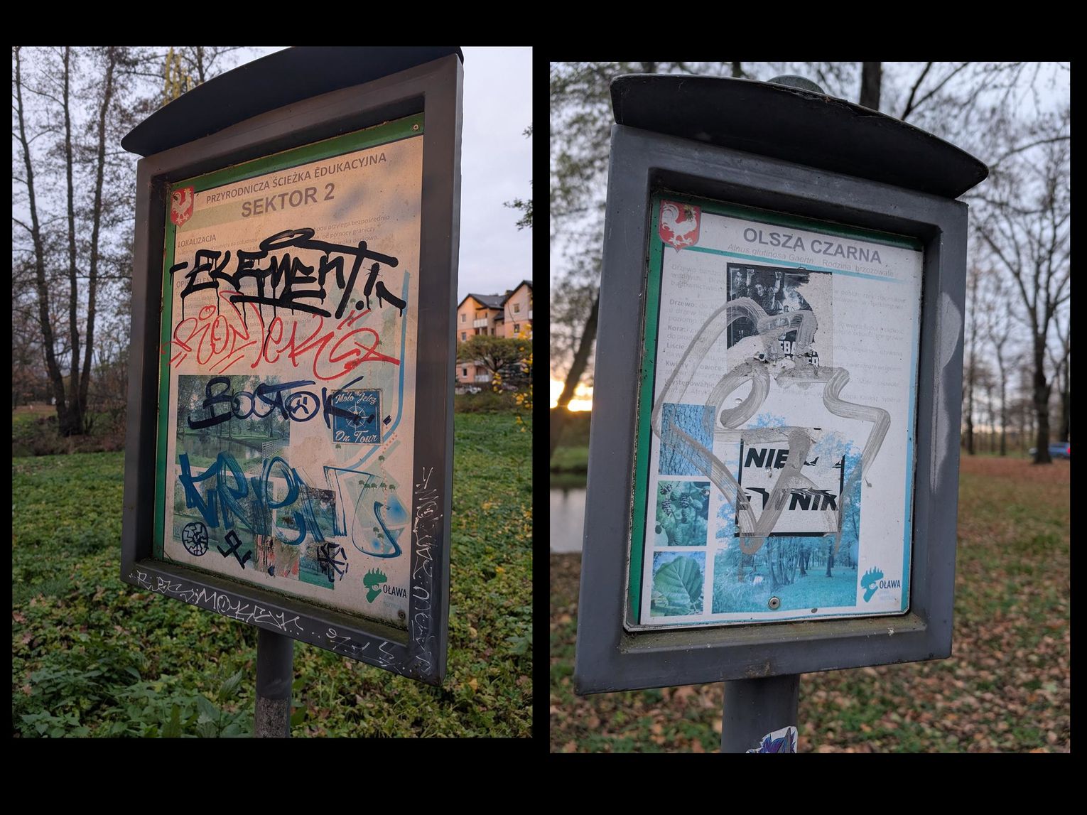 - Co jakiś czas miasto naprawia te tablice informacyjne, a po chwili znów są niszczone - pisze mieszkanka. - Jak to jest, że nie działa żaden system ostrzegania, odstraszania czy po prostu zwykła ludzka wrażliwość na otoczenia? Skoro ktoś "nie wynosi z domu" wychowania, nie wbije mu tego do głowy szkoła, to chyba społeczeństwo powinno mieć jakiś system zabezpieczania się przed takimi wandalami. Słyszę o świetnym miejskim monitoringu, który potrafi wiele, ale jakoś nie słyszałam, aby wskazał tych, którzy są niszczycielami wspólnego mienia w naszym parku. Nie słyszałam, aby wandale musieli publicznie przepraszać, a ich twarze i nazwiska mogły być nam znane. Ławki, słupki, znaki, tablice informacyjne - niczego nie uszanują. Jak się przed nimi bronić? Naprawdę wszystko, co znajdzie się w przestrzeni publicznej musi wcześniej czy później zostać zniszczone? Przecież miasto wydaje na naprawę nasze wspólne pieniądze? Na zmarnowanie?