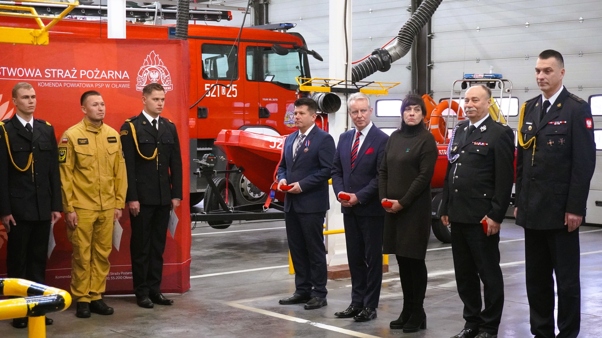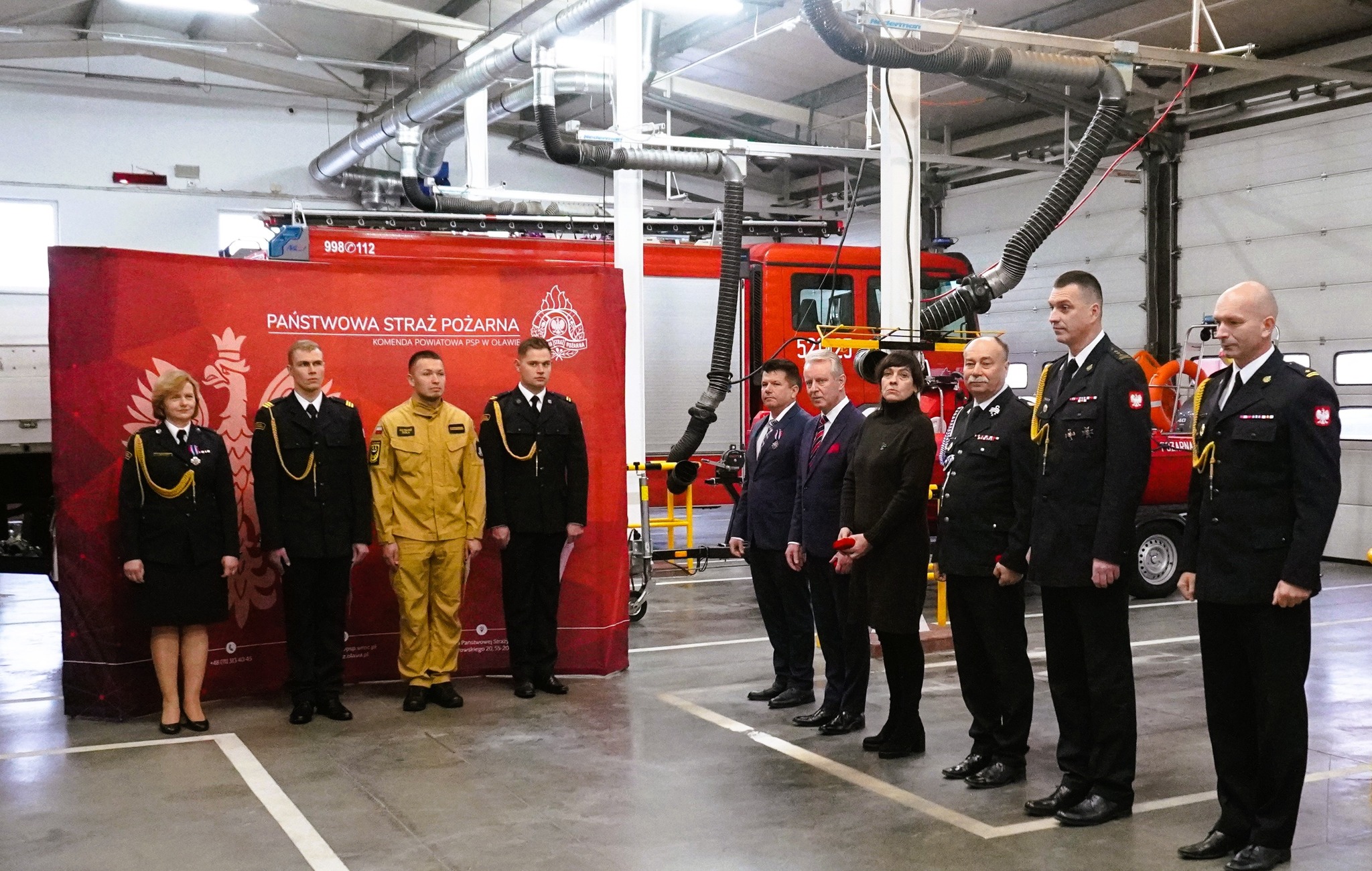 Wręczono również pamiątkowe medale z okazji 30-lecia funkcjonowania Krajowego Systemu Ratowniczo-Gaśniczego, które stanowią wyraz uznania za zasługi w tworzeniu i rozwoju systemu ratowniczego na terenie powiatu oławskiego.