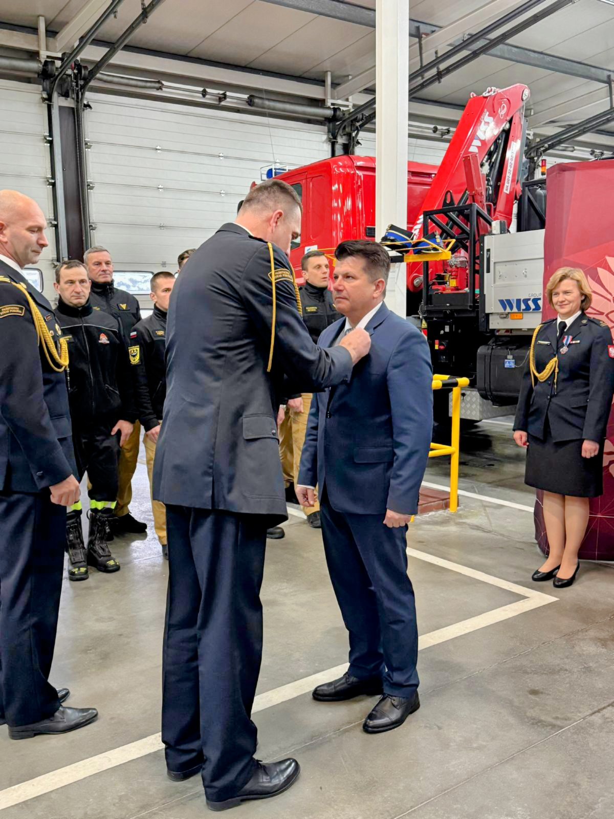 • Brązową Odznakę „Zasłużony dla Ochrony Przeciwpożarowej” – Tomaszowi Frischmannowi burmistrzowi Miasta Oława