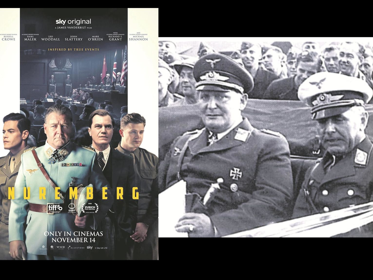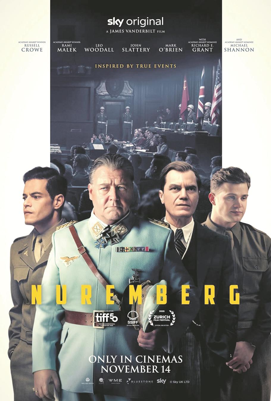 W listopadzie, na ekrany polskich kin wchodzi kolejna historyczna produkcja USA, film "Norymberga". Zapowiada się ciekawy i ważny spektakl kinowy, w rolach głównych znani i popularni aktorzy, Hermana Göringa zagrał Russell Crowe znany m.in. z pamiętnej roli w "Gladiatorze" czy też Rami Malek (jako psychiatra Douglas Kelly), który wcześniej doskonale zagrał Freddiego Mercury'ego z zespołu Queen w filmie Bohemian Rhapsody. Reżyseria i scenariusz: James Vanderbilt, premiera światowa 24 września, polska - 28 listopada 2025 roku.