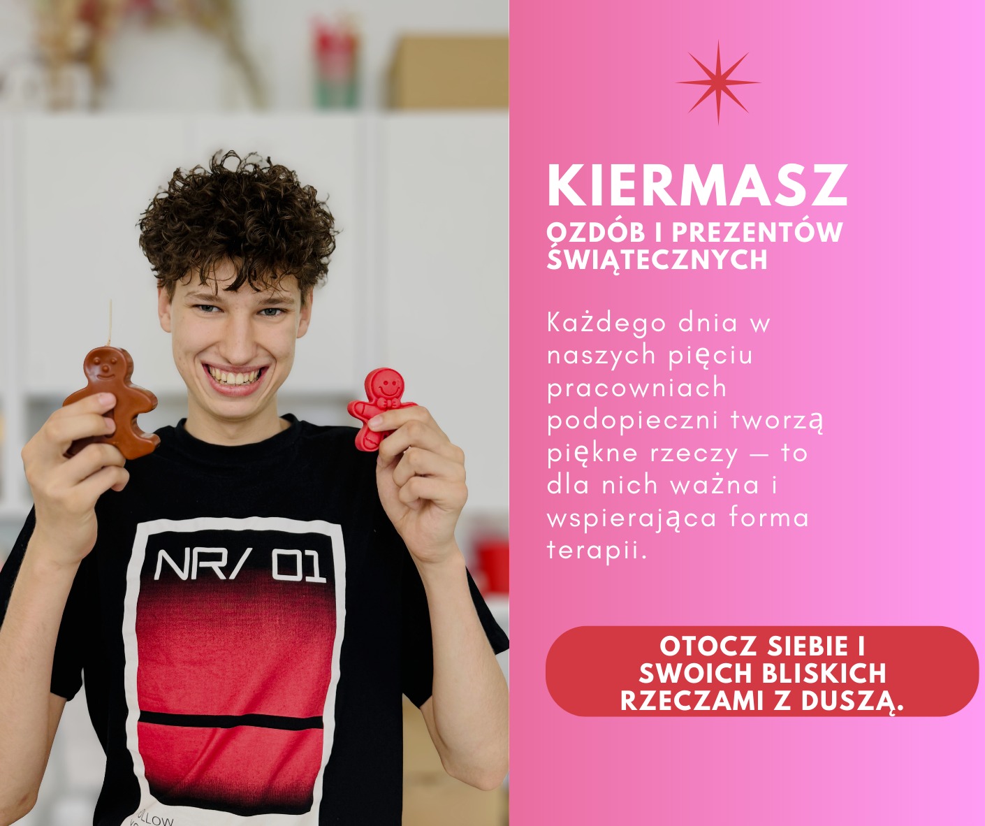 Spektakl poprzedzony będzie świątecznym kiermaszem. To niezwykła okazja, aby zobaczyć, czym na co dzień zajmują się podopieczni Tęczy. Podzielą się z Wami tym, co tworzą w swoich pracowniach – rękodziełem, pracami artystycznymi i pasjami, które odkrywają i rozwijają.
