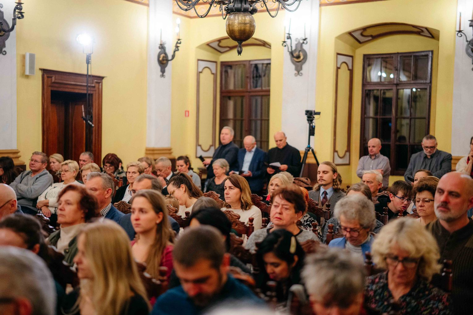 Koncert zgromadził liczną publiczność wypełniającą po brzegi Salę Rycerską Urzędu Miejskiego i entuzjastycznie reagującą na brawurowe wykonanie repertuaru.
