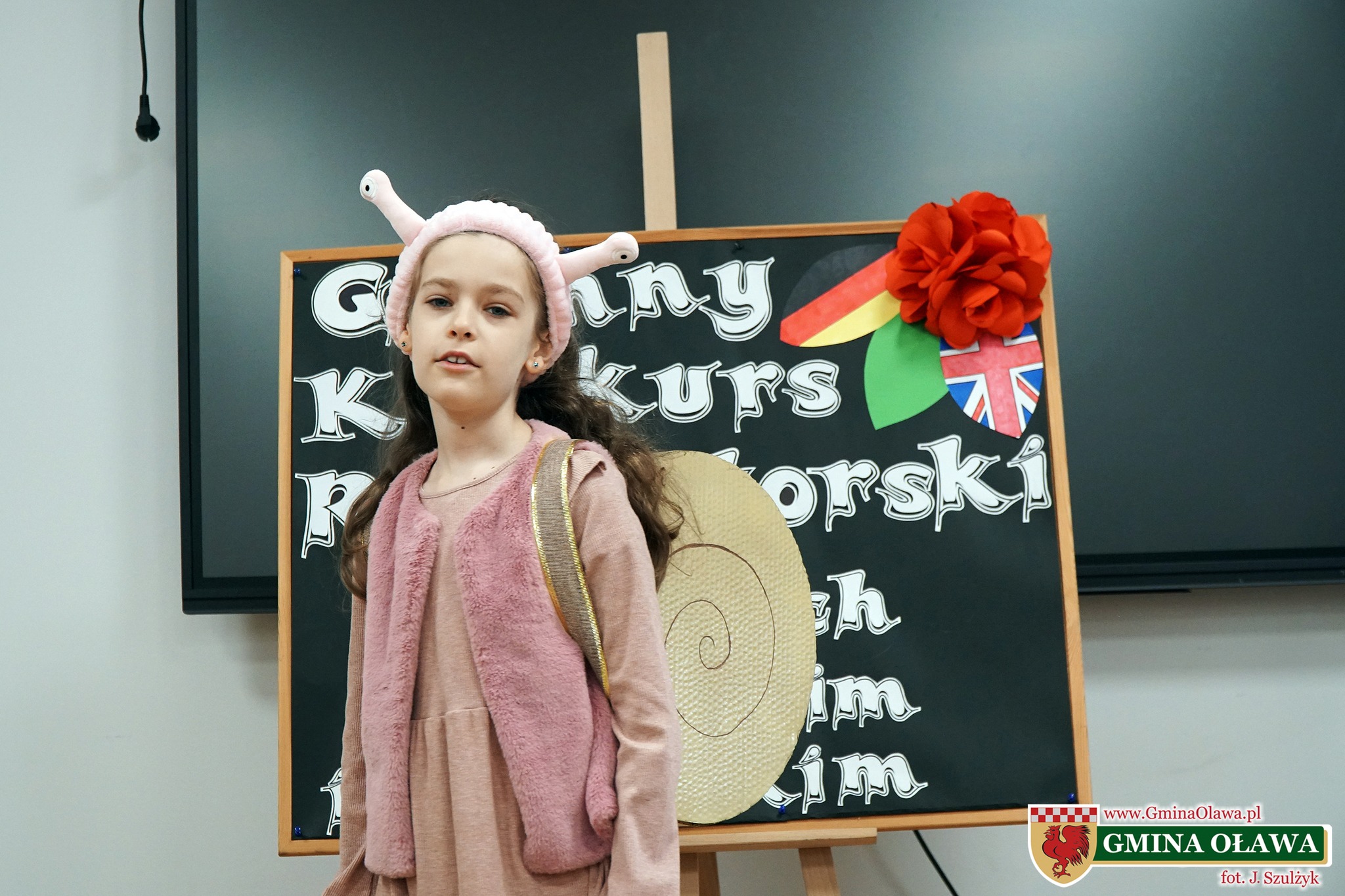 Uczestników i przybyłych gości przywitały zastępca wójta gminy Oława Helena Masło oraz dyrektor Szkoły Podstawowej w Chwalibożycach Monika Piasecka-Galej. Następnie przystąpiono do rywalizacji. Konkurs był podzielony na kategorie językowe oraz wiekowe. Komisja konkursowa w składzie: Małgorzata Kaziuk i Joanna Kaczmarska z Dolnośląskiego Ośrodka Doskonalenia Nauczycieli we Wrocławiu oraz radny gminy Oława Jakub Turański stanęli przed nie lada wyzwaniem. Wszyscy uczestnicy świetnie przygotowali się do występów, nie tylko pod względem samej recytacji i opanowania języka, ale i bogactwa rekwizytów, pomysłowych strojów, profesjonalną grą aktorską. Ale zgodnie z regulaminem, trzeba było wyłonić tych najlepszych.