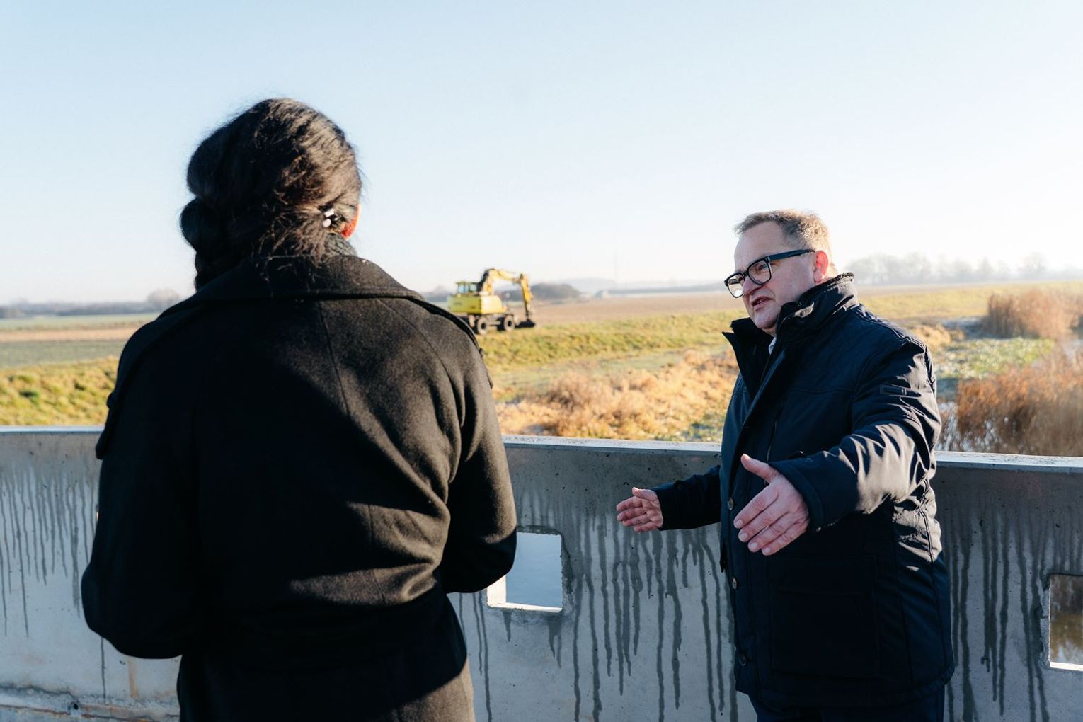 Głos zabrał także starosta Marek Szponar: - W pierwszej kolejności podziękuję pani wojewodzie za tę wspomnianą już bardzo dobrą współpracę. Te środki, które zostały nam bardzo szybko przyznane, pozwoliły nam od razu zareagować na największe zagrożenie, które miało miejsce na naszym terenie w trakcie zeszłorocznej powodzi. Szybka reakcja rządu i pomoc pani wojewody spowodowała to, że stoimy dziś na nowym moście i myślę, że w przyszłości nie będzie już tutaj zagrożenia powodziowego. Od dziś (od piątku 19 grudnia - przyp. red.) z tego mostu faktycznie będzie można już korzystać. To wszystko nie mogłoby się odbyć w tym tempie, gdyby nie współpraca wszystkich instytucji, z którymi trzeba było wiele rzeczy uzgodnić po drodze. Dziękuję Wodom Polskim i wszystkim tym, którzy przyczynili się do tego, że w tak krótkim czasie mogliśmy ten obiekt wykonać.
