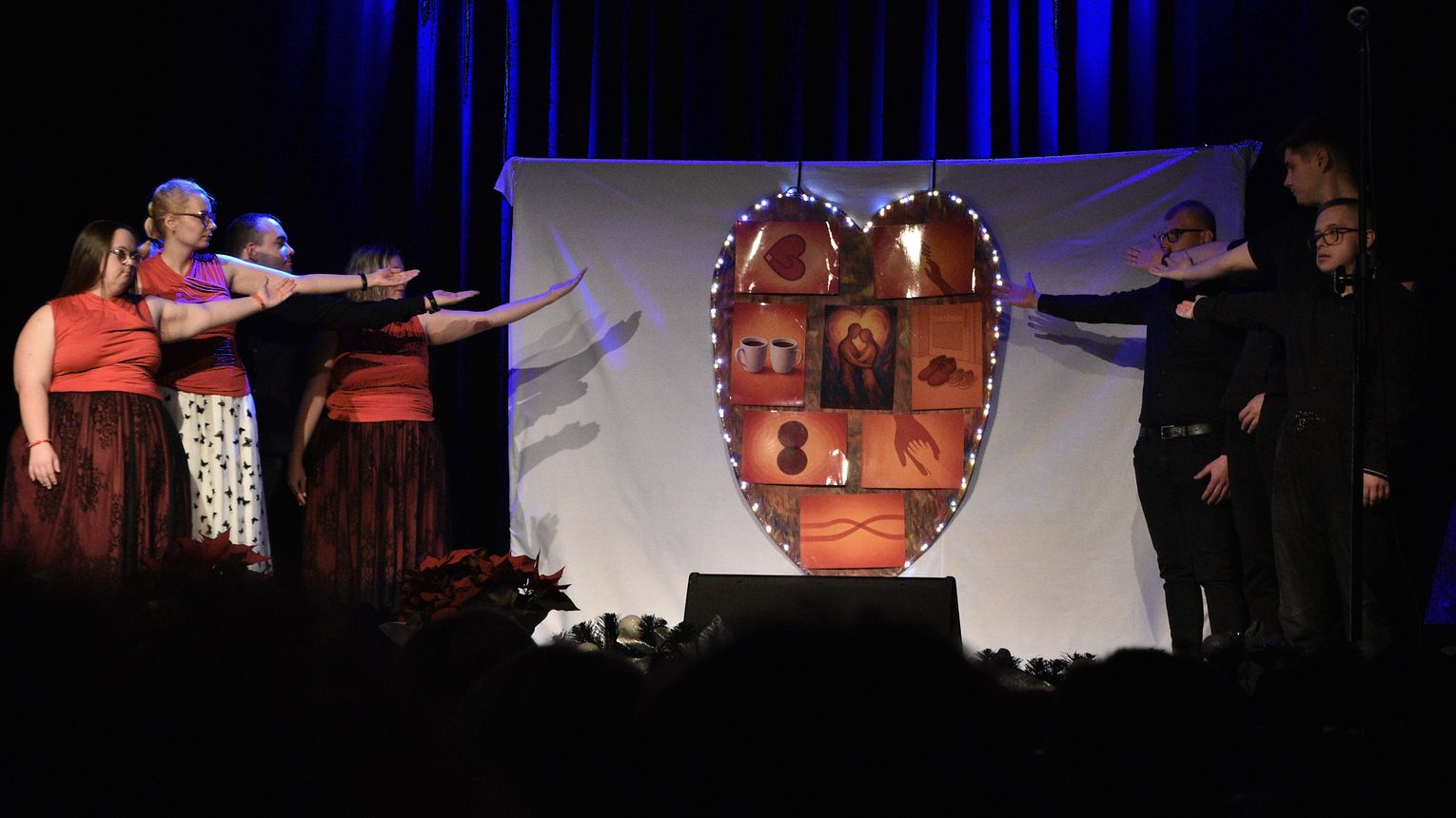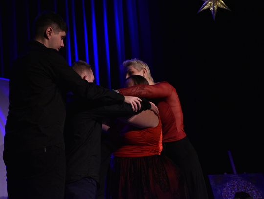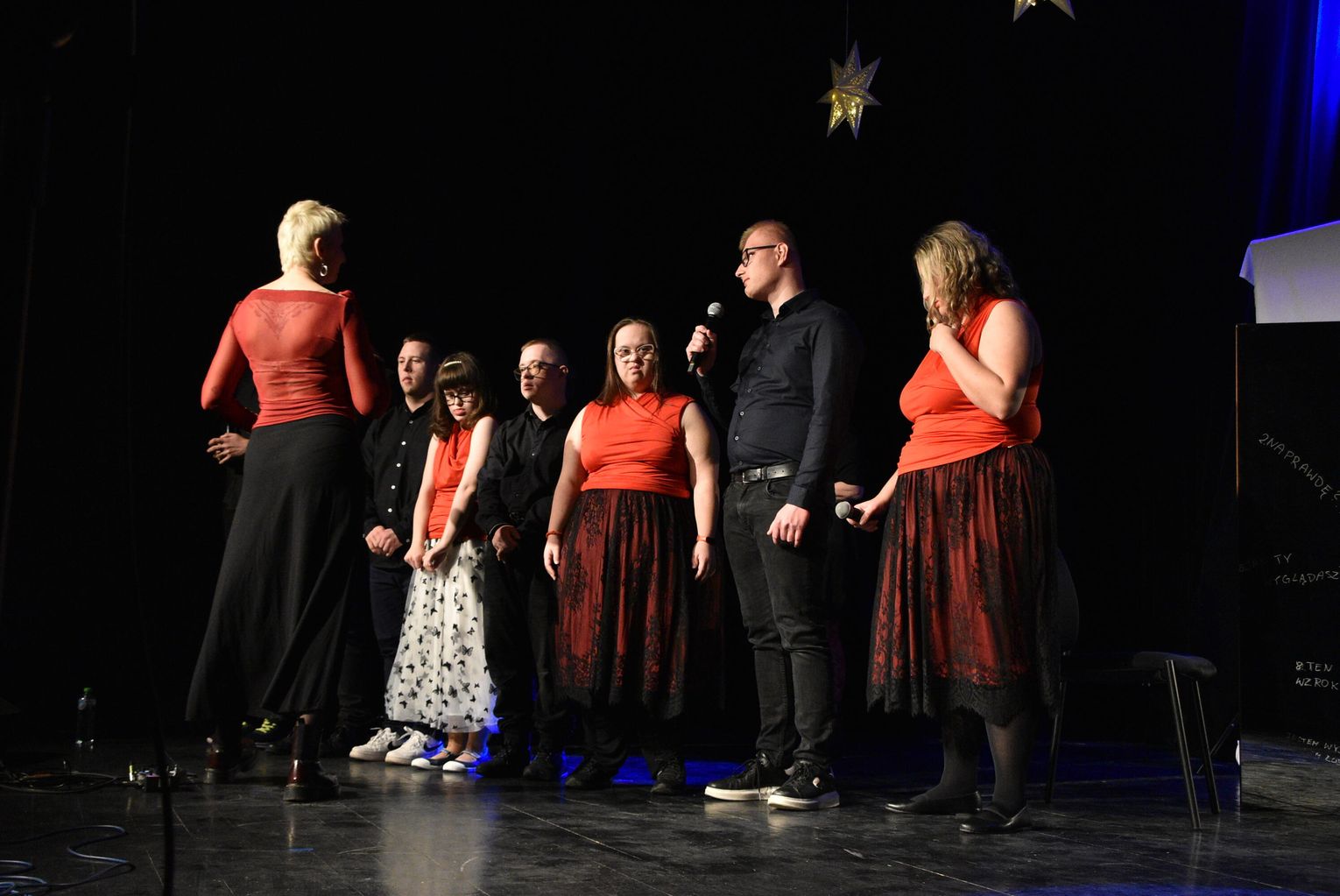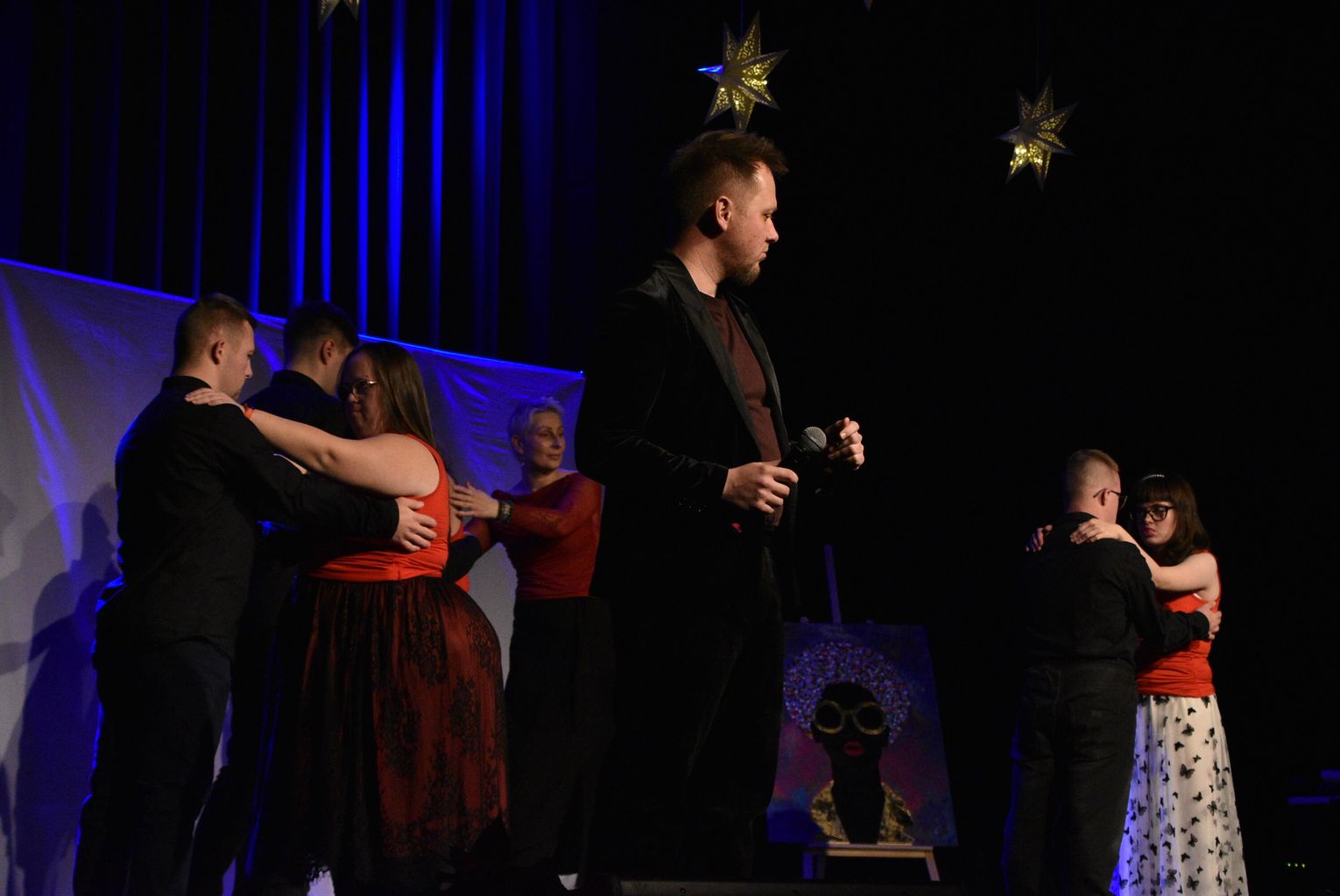 - Za chwilę zobaczą państwo na scenie wyjątkowe spotkanie osób z niepełnosprawnościami oraz osób pełnosprawnych, które integrują się poprzez sztukę, uzupełniając się nawzajem, tworząc wspólną opowieść o odwadze, bliskości i zrozumieniu - mówił zapowiadając występ artystów występujący w roli konferansjera Marcin Twardocha. - To spektakl zrodzony z lat drogi, z ciszy, która powoli zmieniła się w głos, z historii osób, które przez długi czas nie mówiły, a dziś wyjdą na scenę i zaśpiewają. To opowieści, w których ciało zaczęło mówić wcześniej niż słowa, tańcem, ruchem, ekspresją, gdy słowa były jeszcze zbyt ciężkie. To także historie codziennej walki z własną chorobą, w której najpiękniejszym lekarstwem okazała się sztuka. Naszym marzeniem jest, aby dzisiejszego wieczora w państwa sercach i umysłach zagościły dobre emocje, bo kiedy jesteśmy naprawdę blisko, wszystko nabiera innego wymiaru, a wtedy jesteśmy w stanie pokonać wszytko.